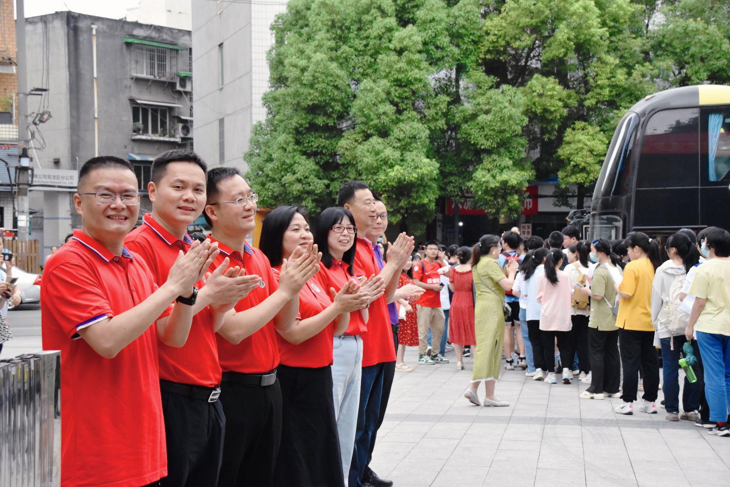 校領(lǐng)導(dǎo)和九年級(jí)全體教師為初2020級(jí)同學(xué)加油送考
