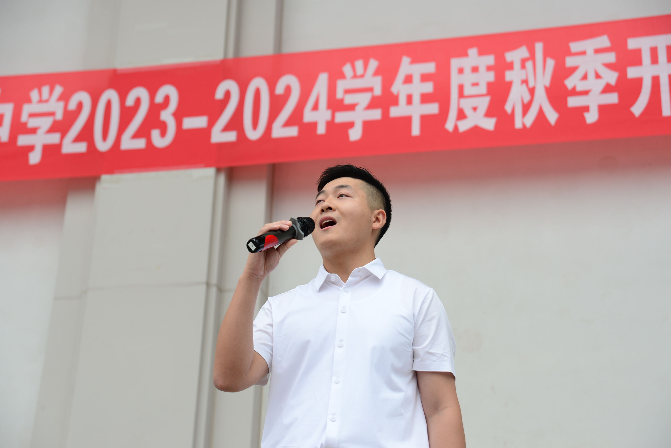 年級(jí)老師杜江作新學(xué)期動(dòng)員