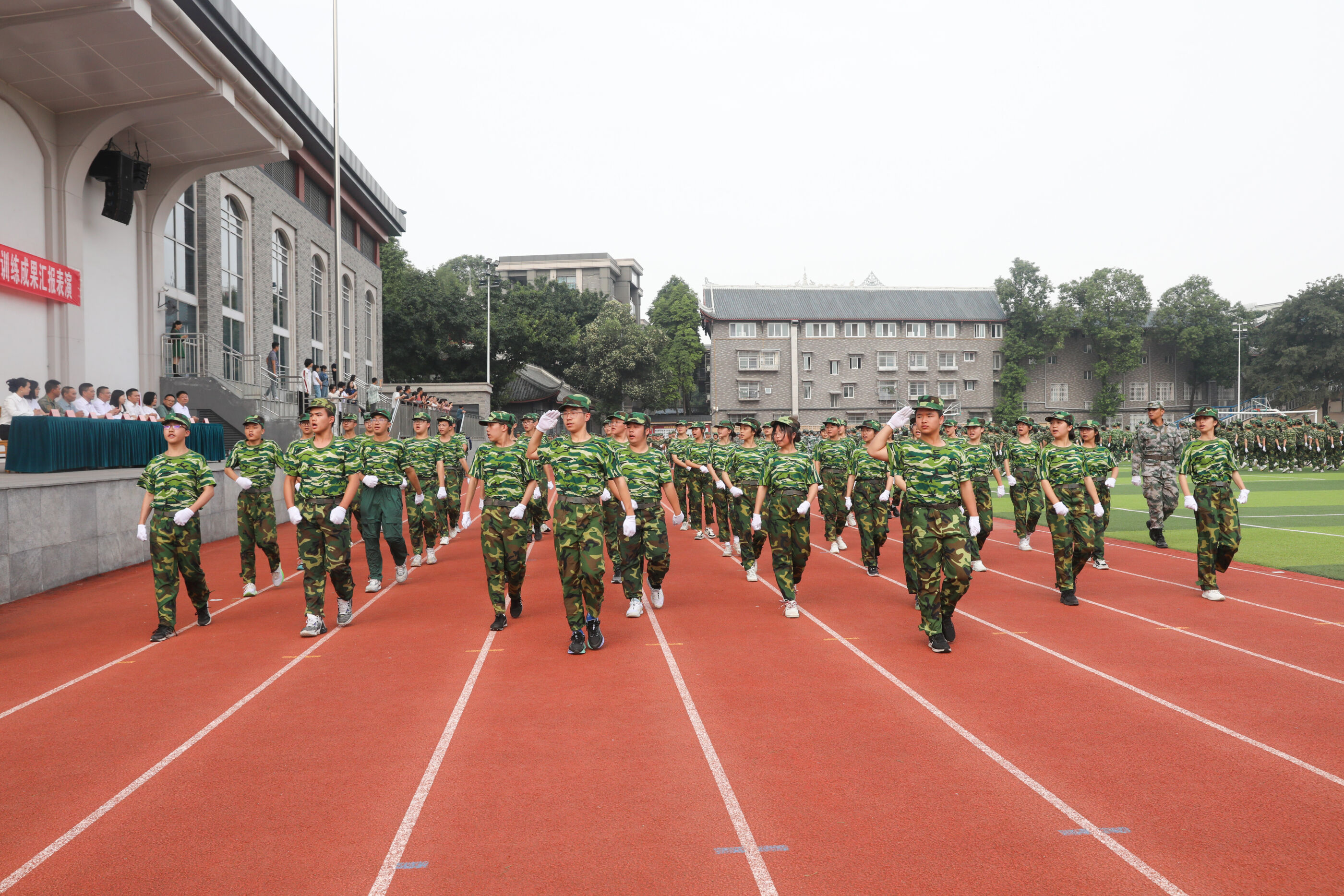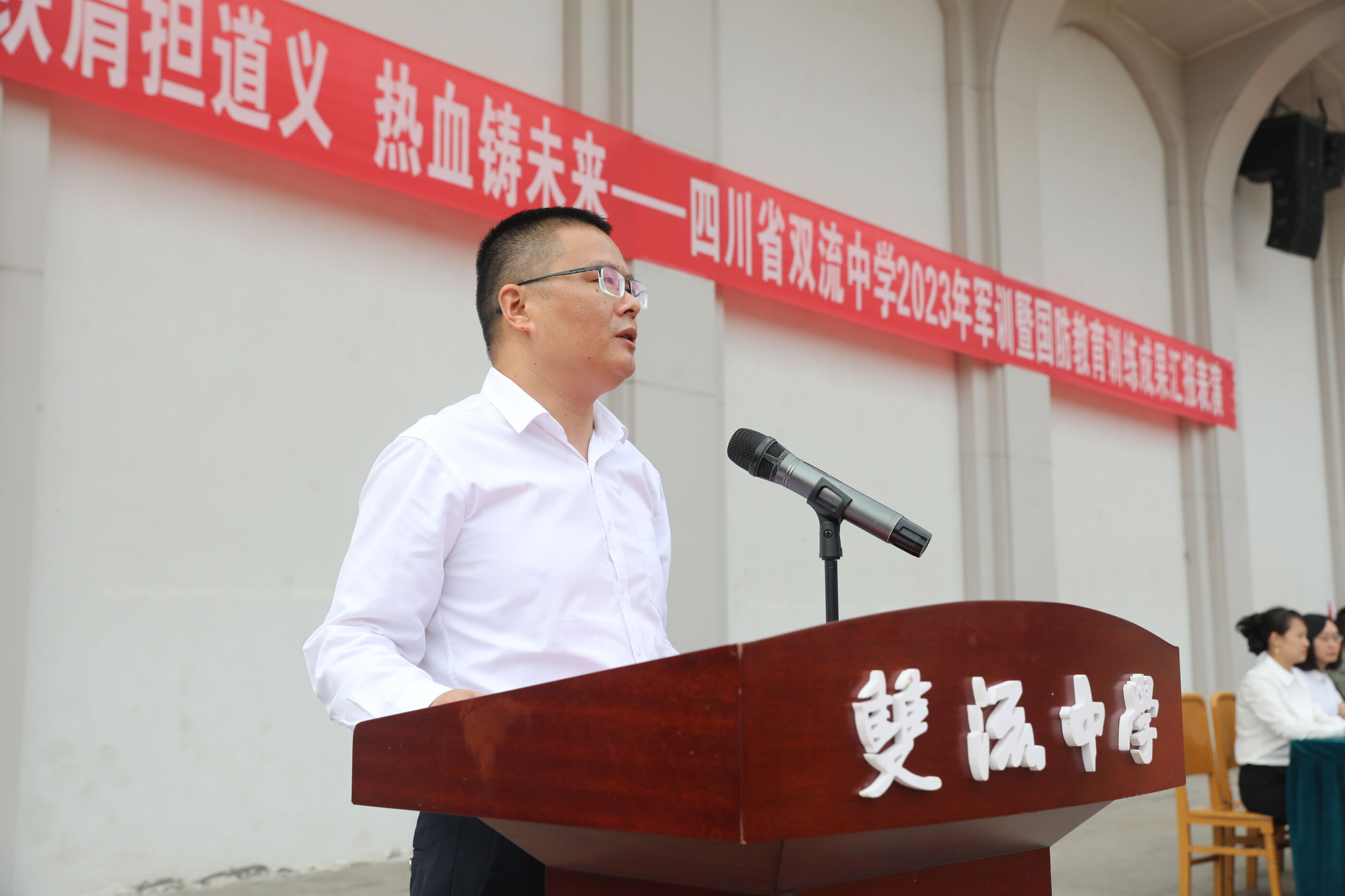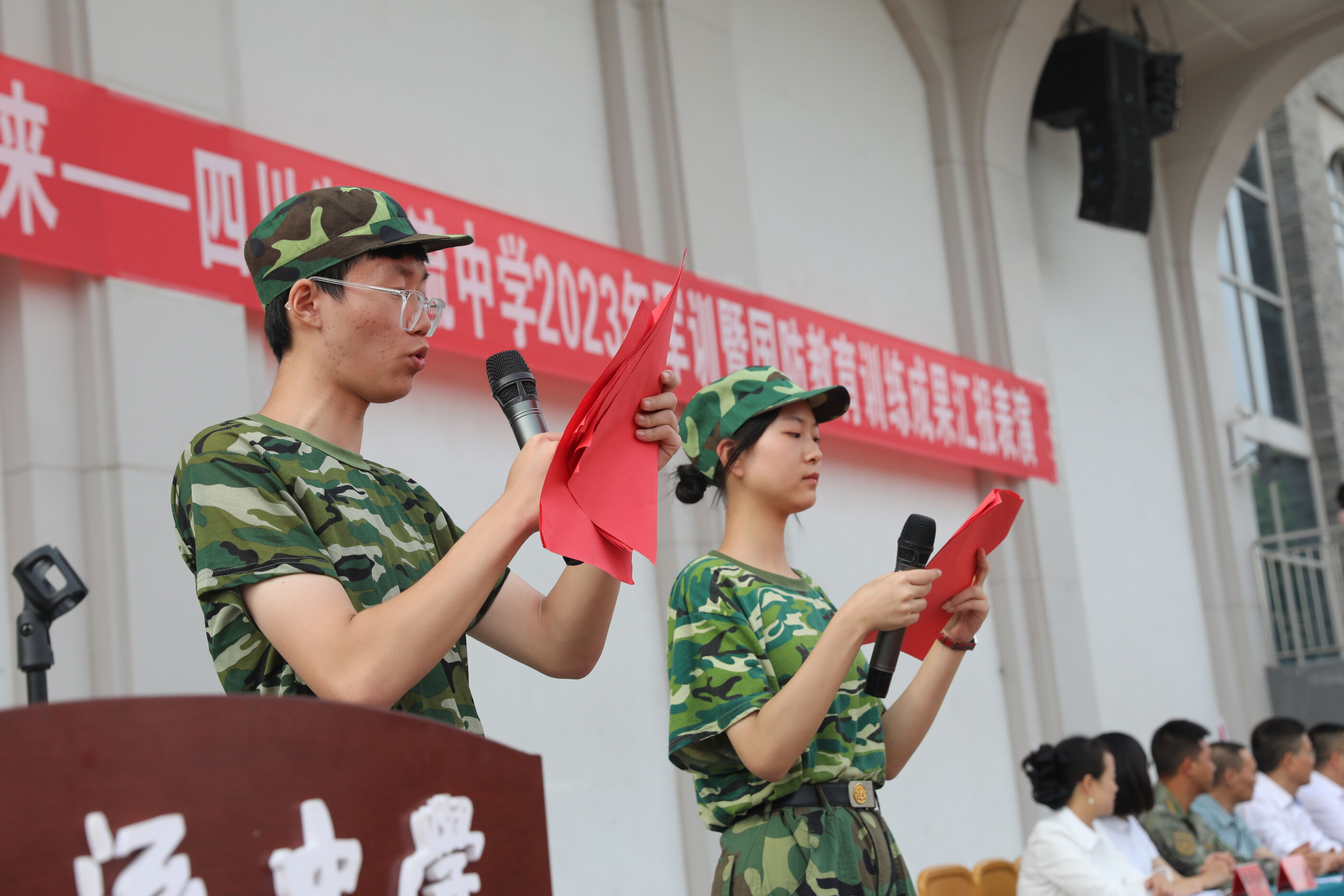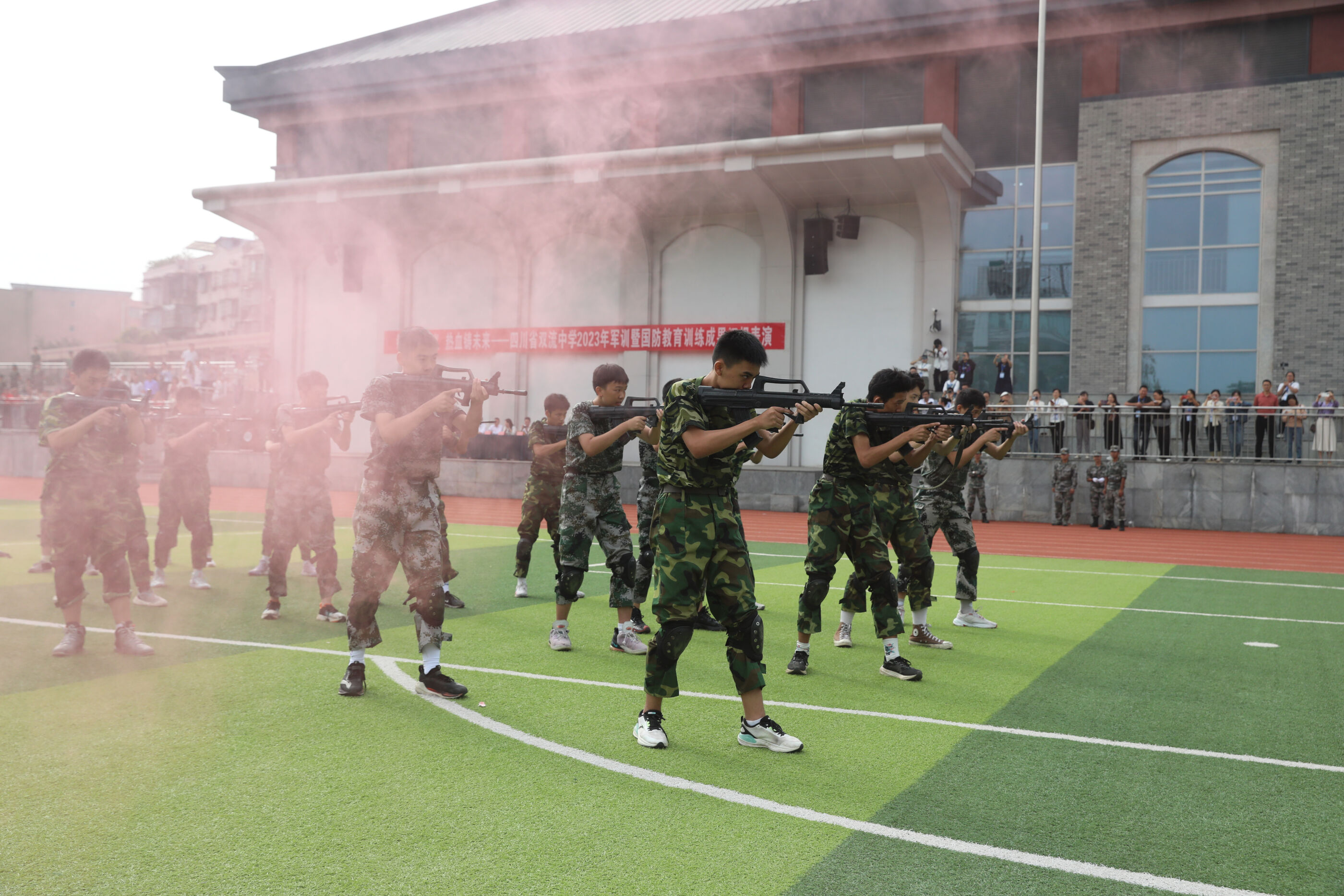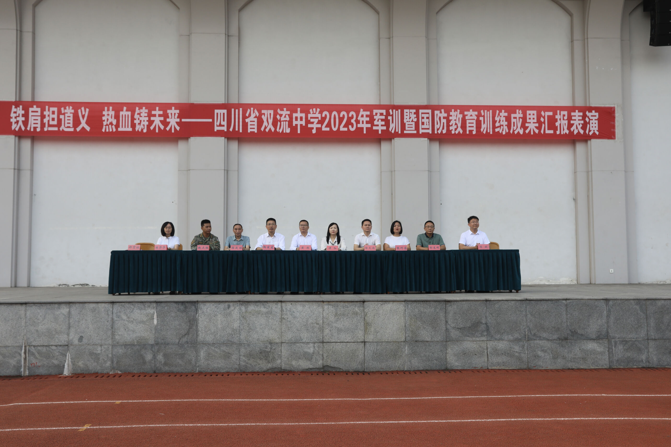 2023年9月28日上午,我校2023級新生軍訓(xùn)暨國防教育結(jié)訓(xùn)成果匯報表演在操場隆重舉行。軍訓(xùn)團(tuán)團(tuán)長趙大陸,四川省雙流中學(xué)黨委書記、校長黃超,黨委副書記、副校長譚紅,黨委副書記向發(fā)友,副校長徐天福及部分行政出席,德育安全處主任郝碧婭主持儀式。