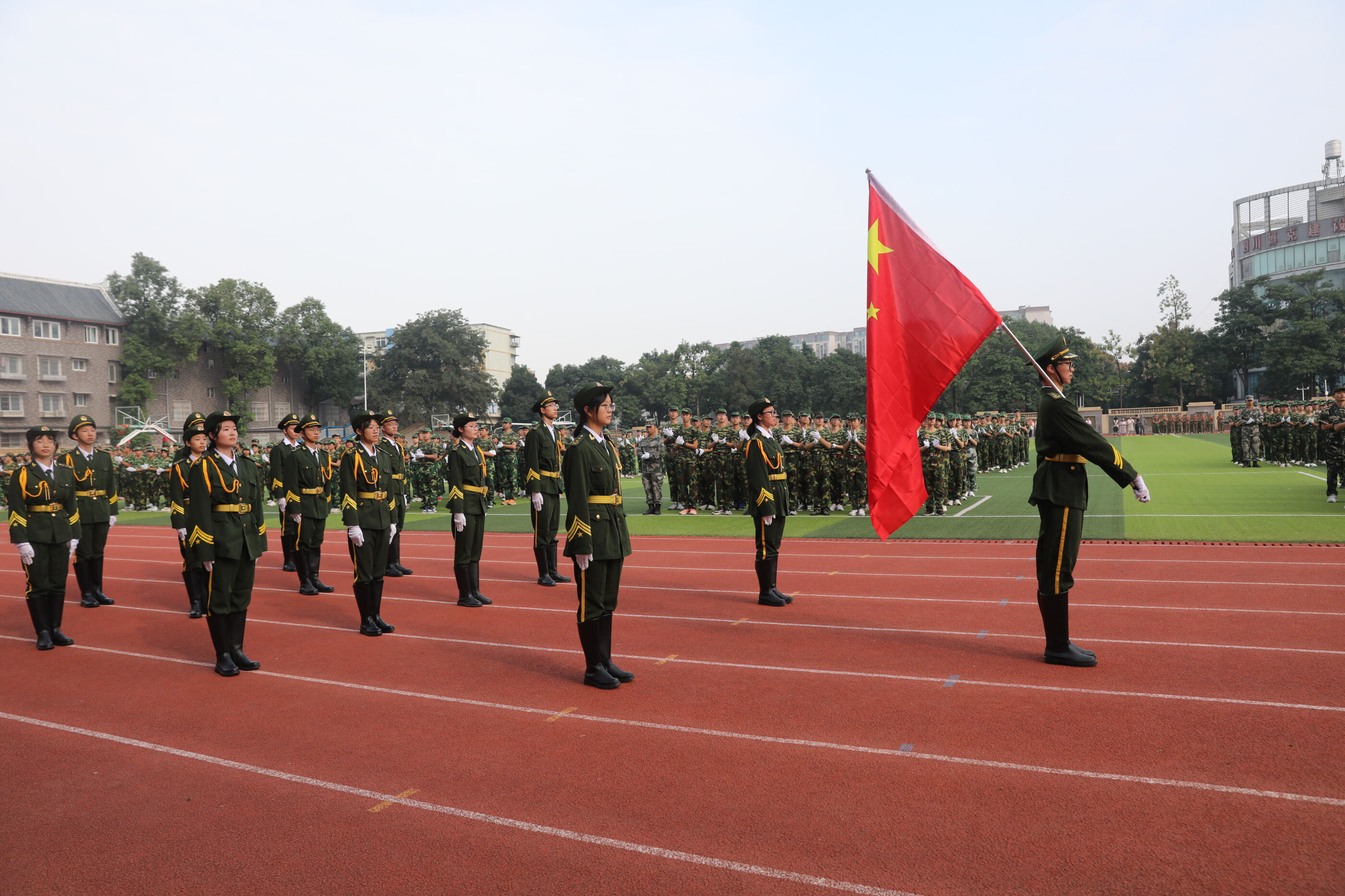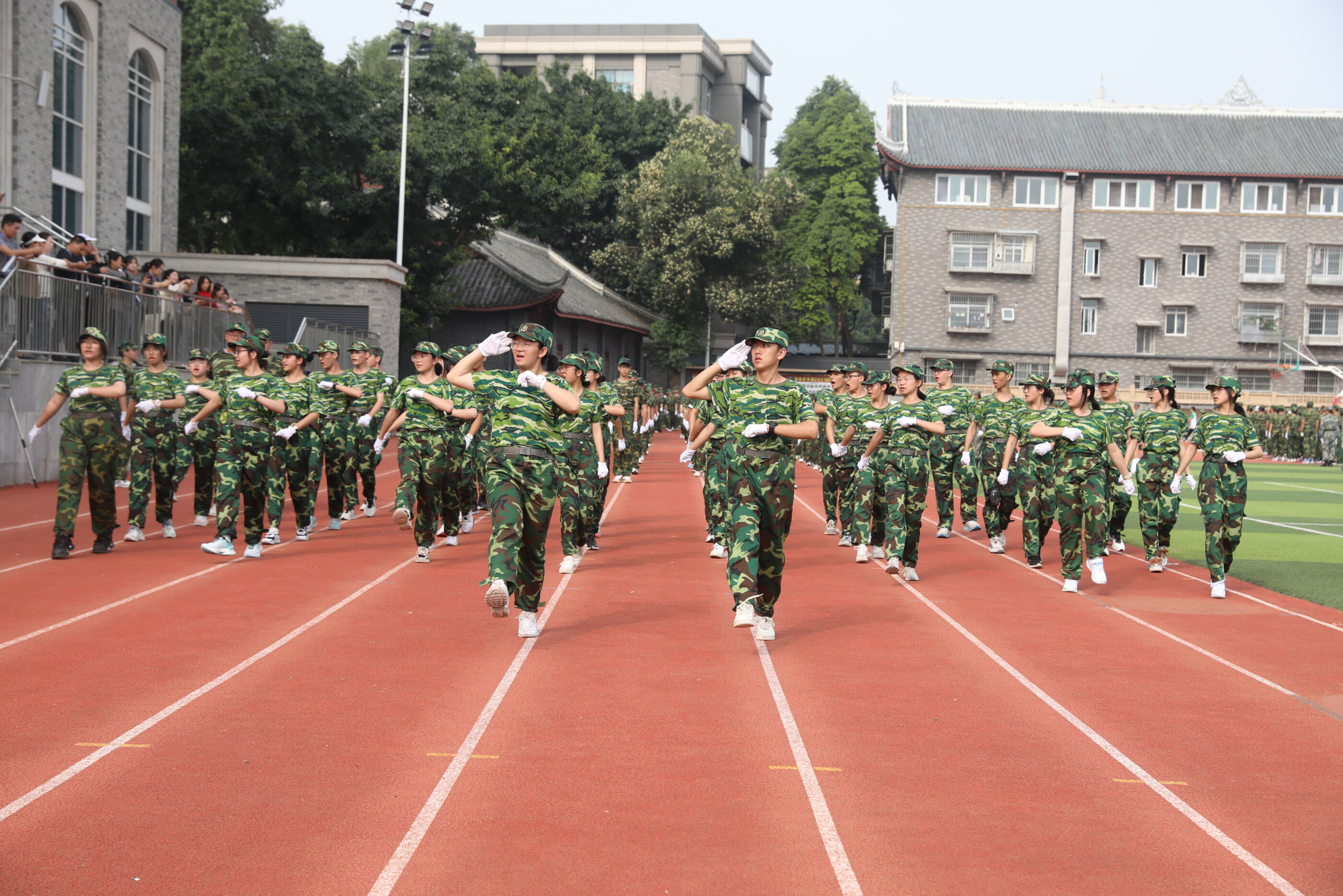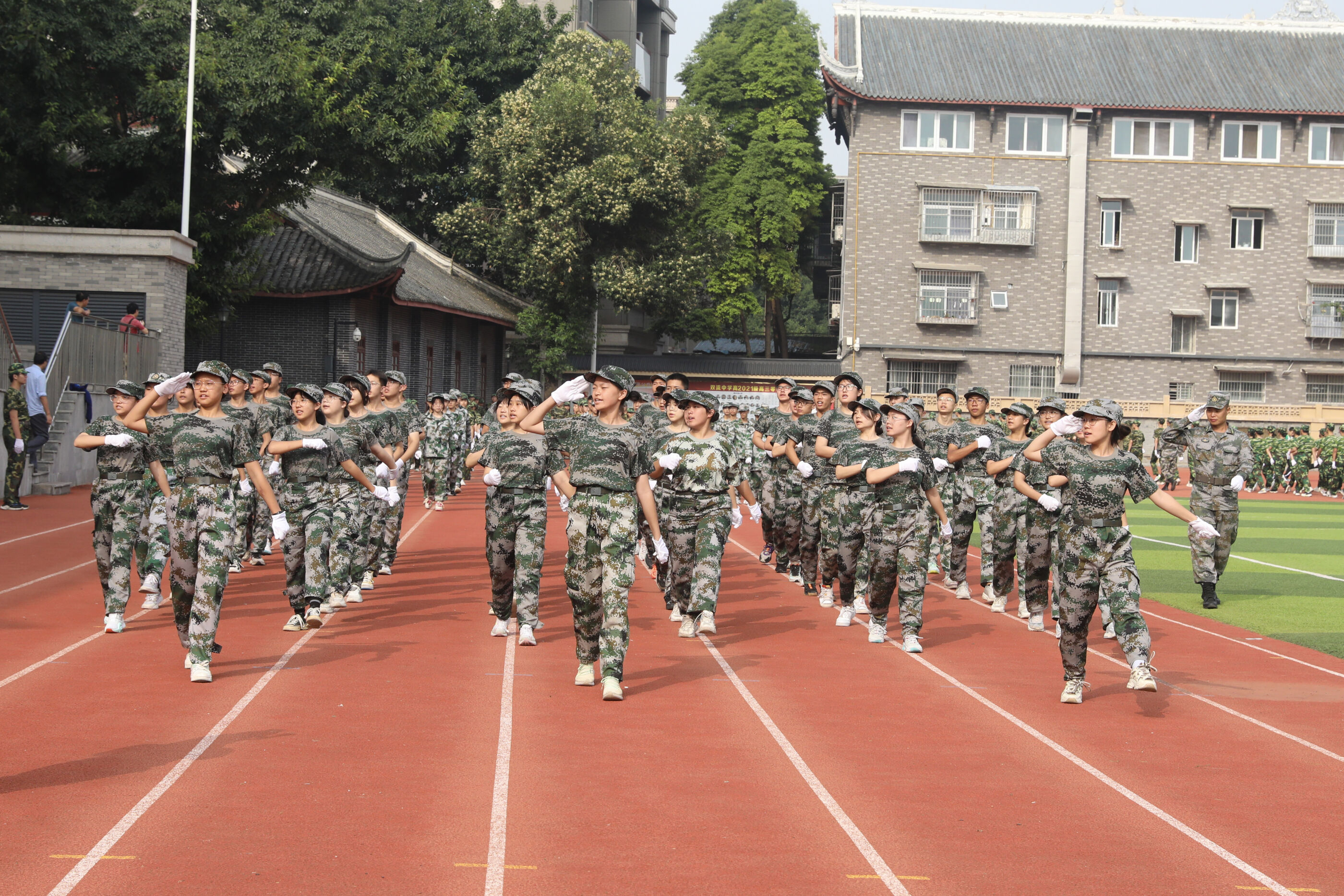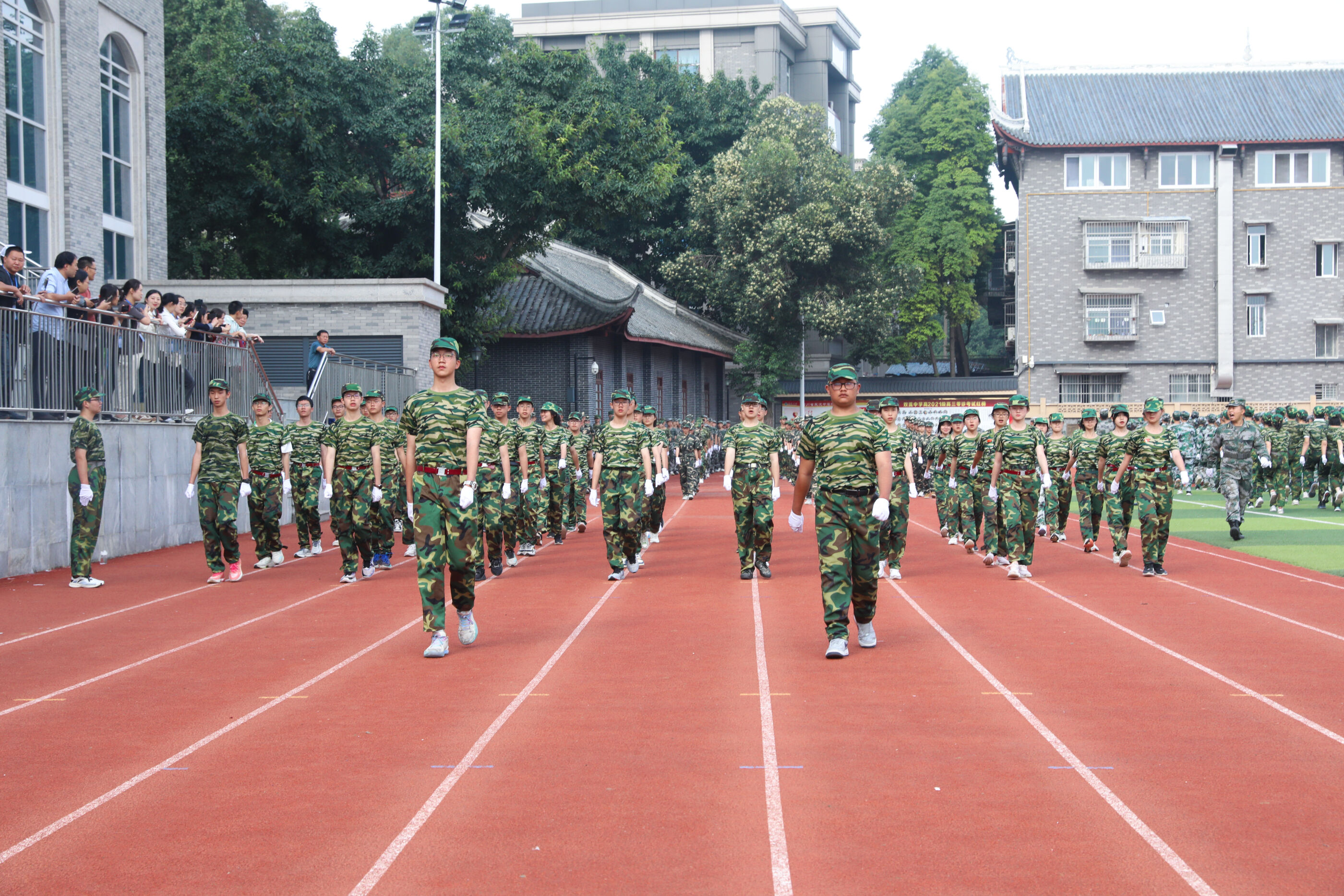 2023年9月28日上午,我校2023級新生軍訓(xùn)暨國防教育結(jié)訓(xùn)成果匯報表演在操場隆重舉行。軍訓(xùn)團(tuán)團(tuán)長趙大陸,四川省雙流中學(xué)黨委書記、校長黃超,黨委副書記、副校長譚紅,黨委副書記向發(fā)友,副校長徐天福及部分行政出席,德育安全處主任郝碧婭主持儀式。