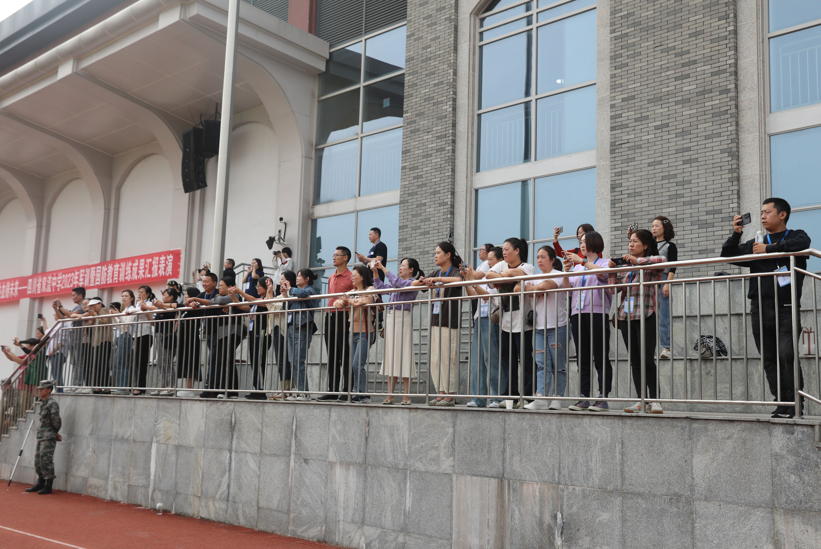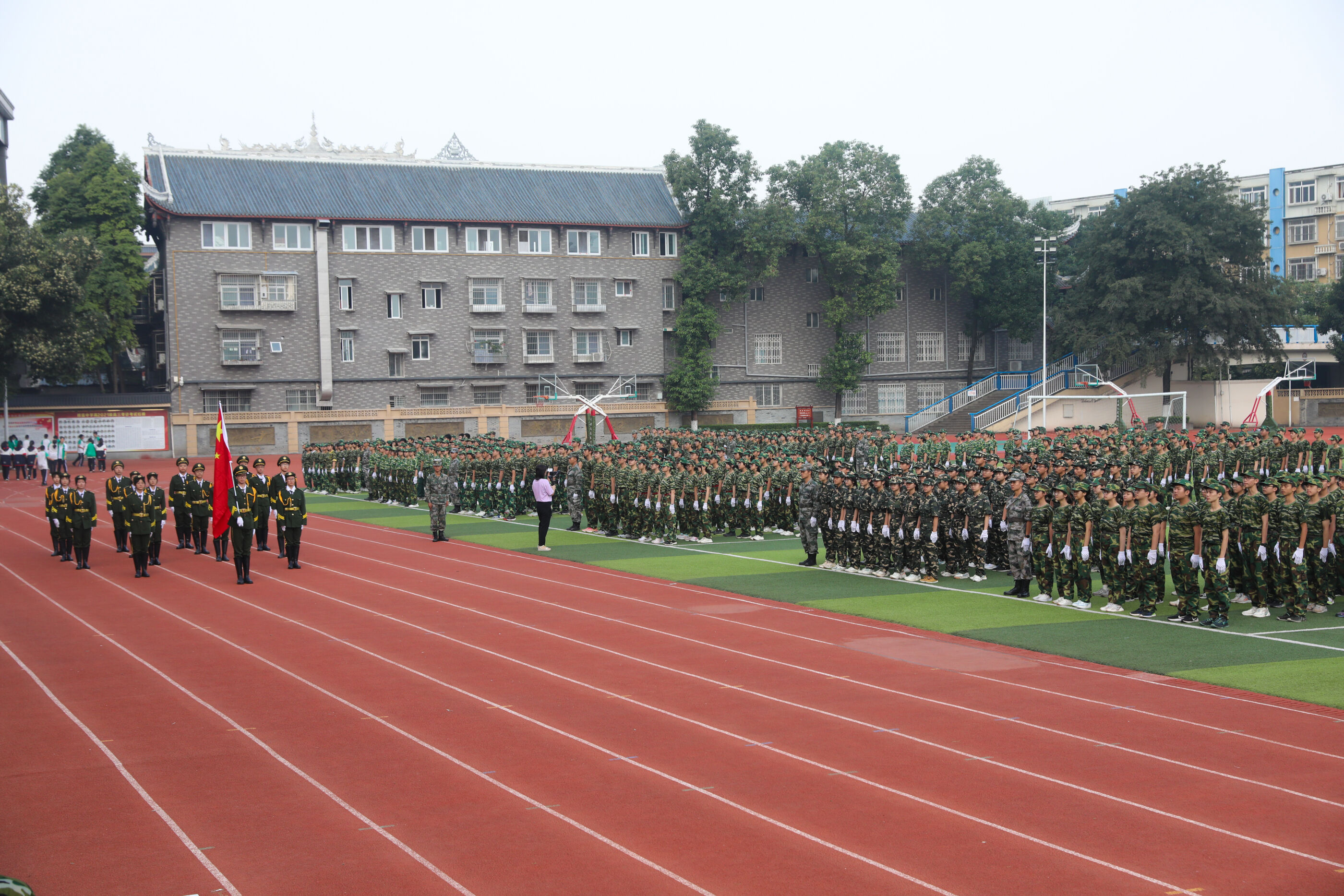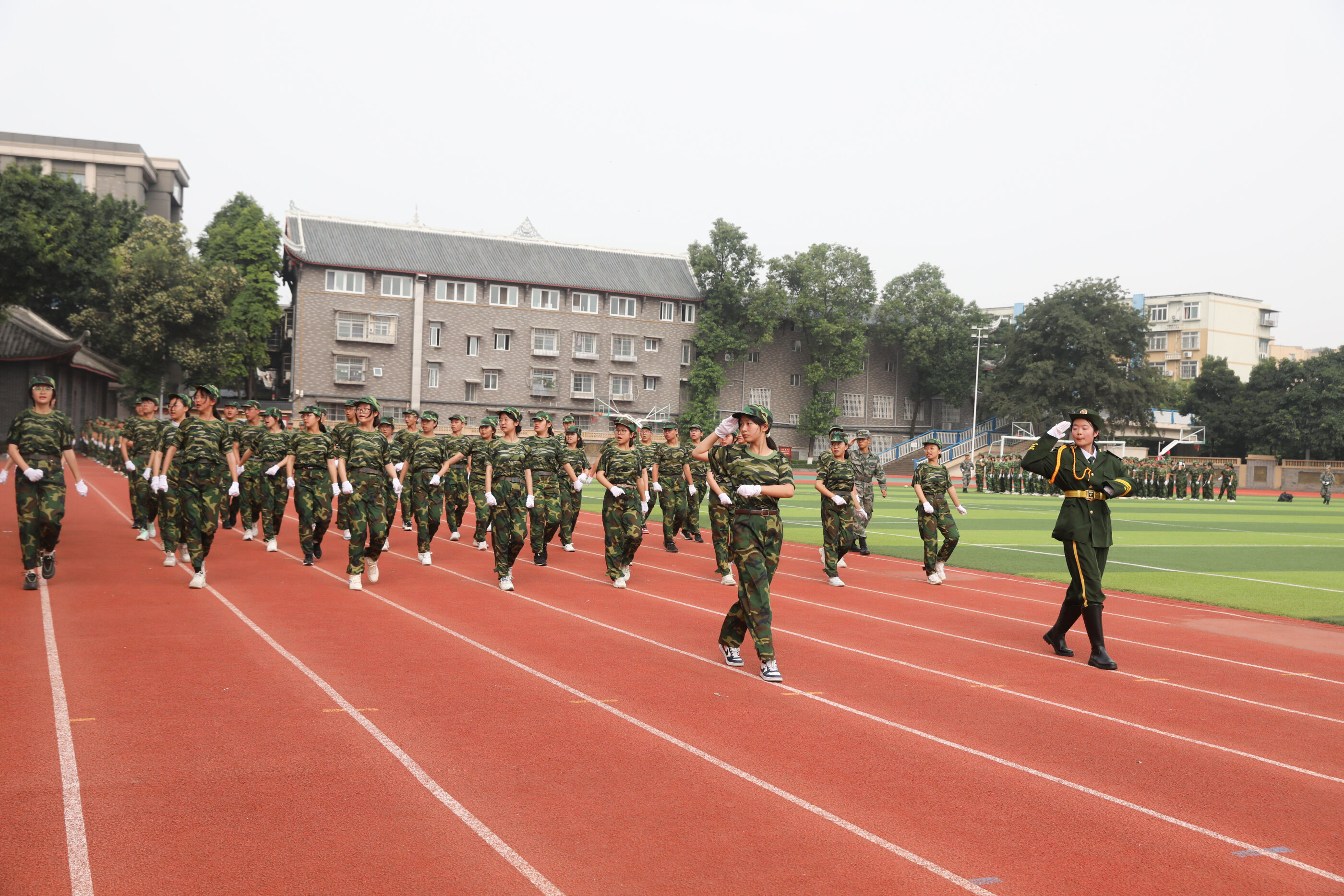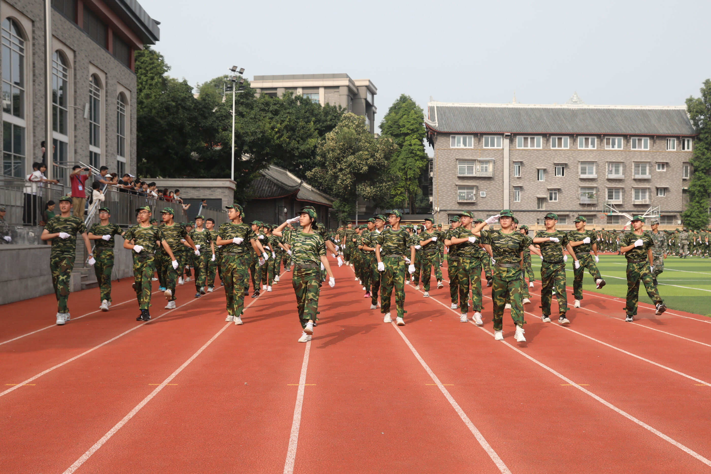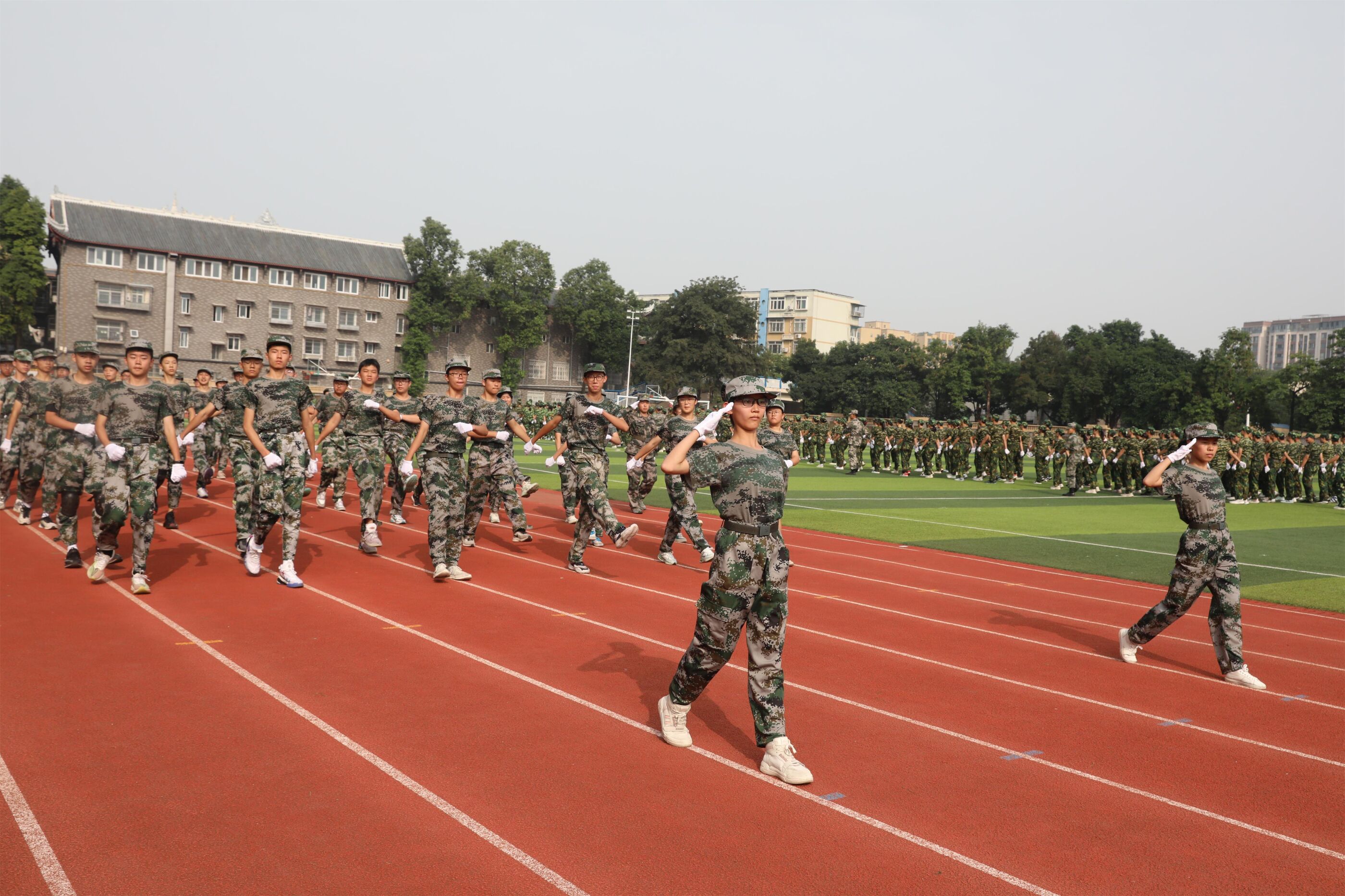 2023年9月28日上午,我校2023級新生軍訓(xùn)暨國防教育結(jié)訓(xùn)成果匯報表演在操場隆重舉行。軍訓(xùn)團(tuán)團(tuán)長趙大陸,四川省雙流中學(xué)黨委書記、校長黃超,黨委副書記、副校長譚紅,黨委副書記向發(fā)友,副校長徐天福及部分行政出席,德育安全處主任郝碧婭主持儀式。