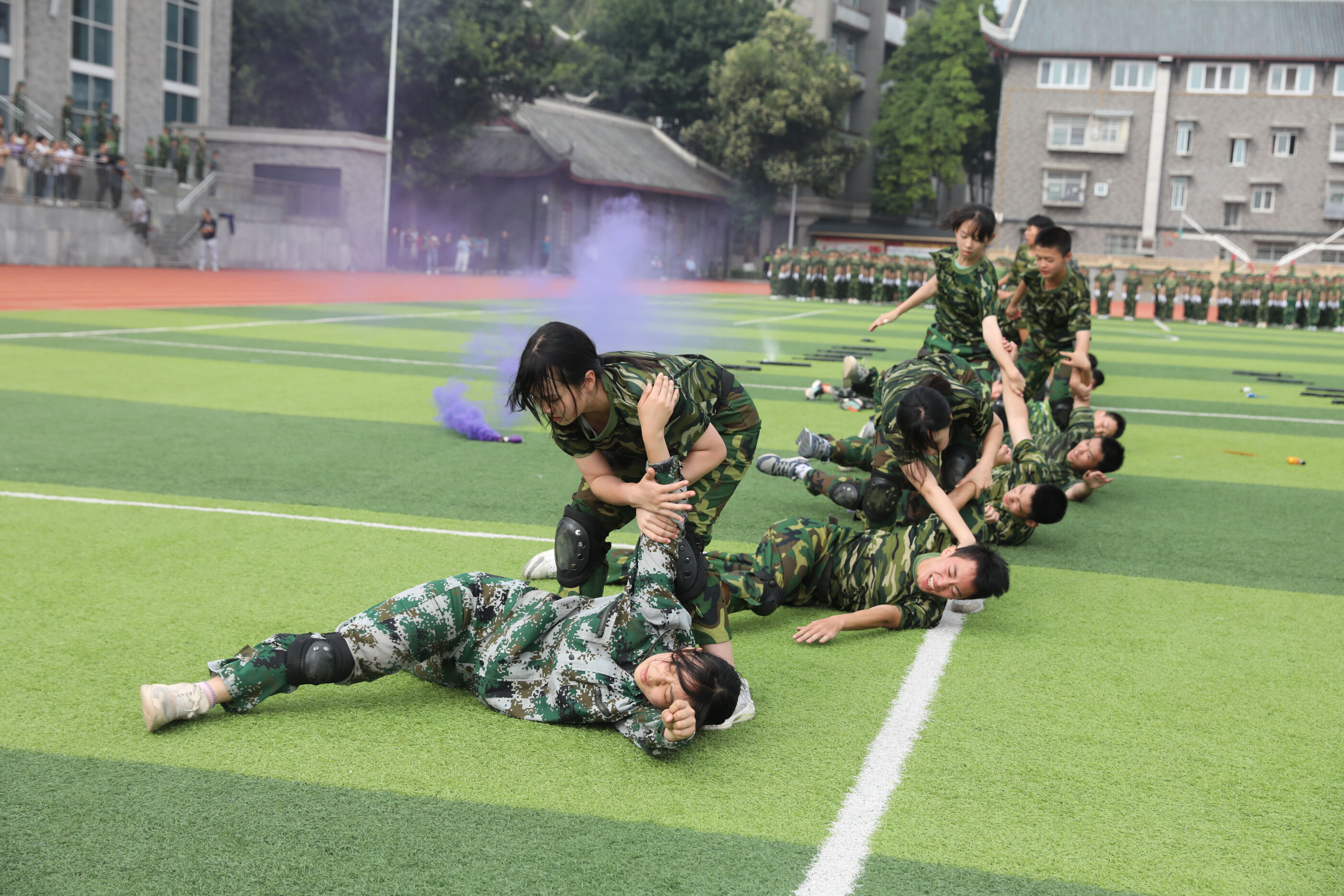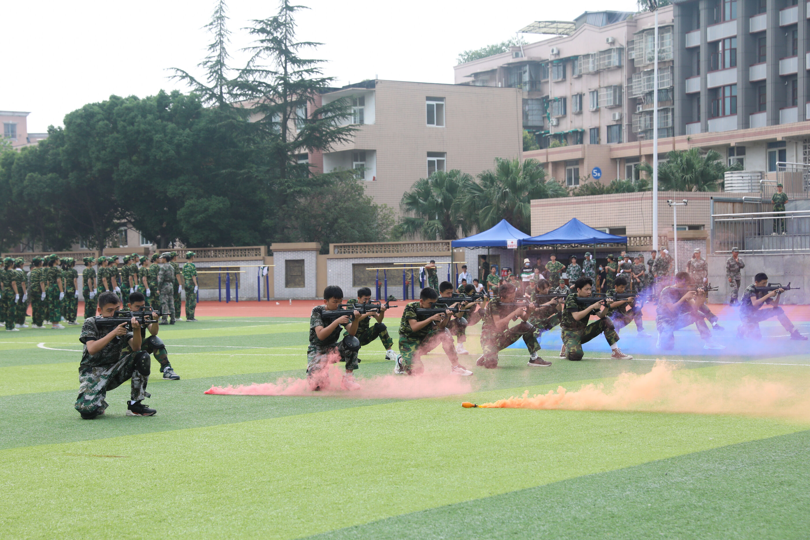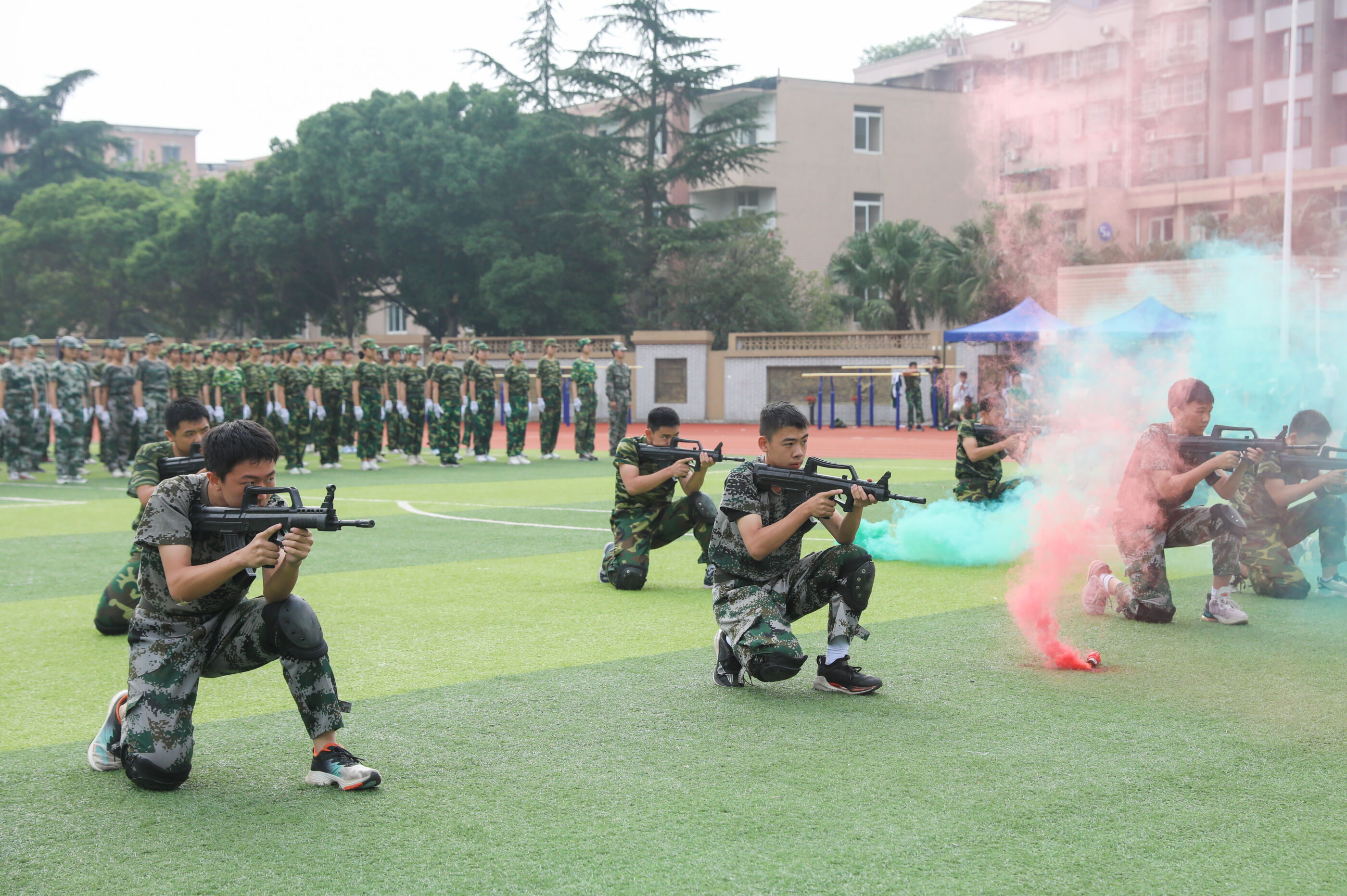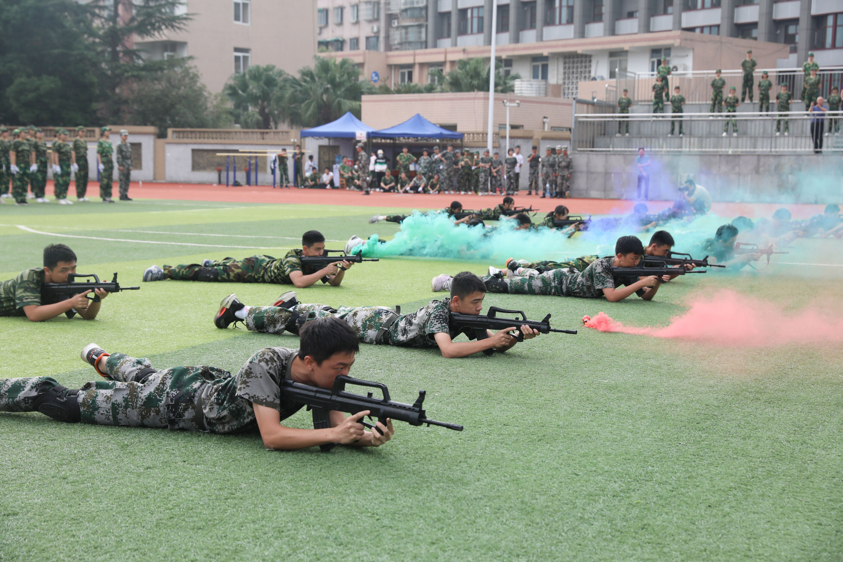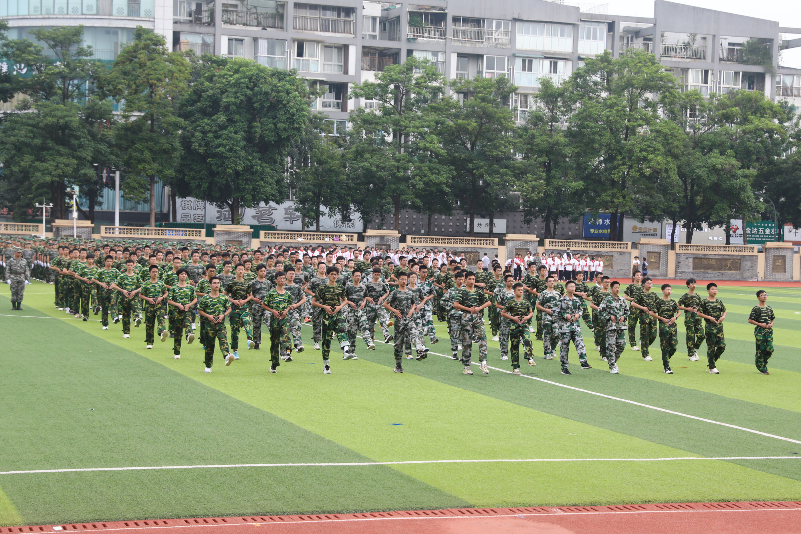 2023年9月28日上午,我校2023級新生軍訓(xùn)暨國防教育結(jié)訓(xùn)成果匯報表演在操場隆重舉行。軍訓(xùn)團(tuán)團(tuán)長趙大陸,四川省雙流中學(xué)黨委書記、校長黃超,黨委副書記、副校長譚紅,黨委副書記向發(fā)友,副校長徐天福及部分行政出席,德育安全處主任郝碧婭主持儀式。