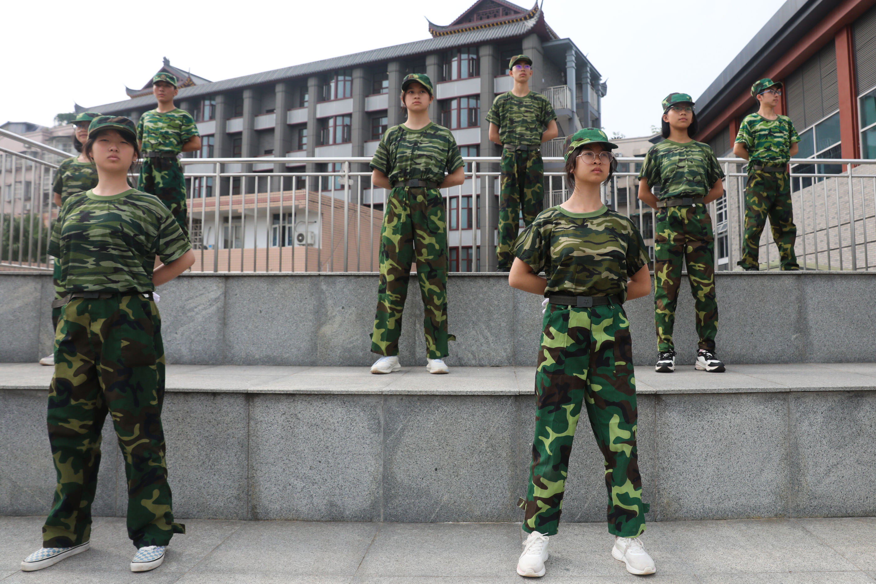 晨光中,教官和連隊拍好隊形,等待匯報表演開始