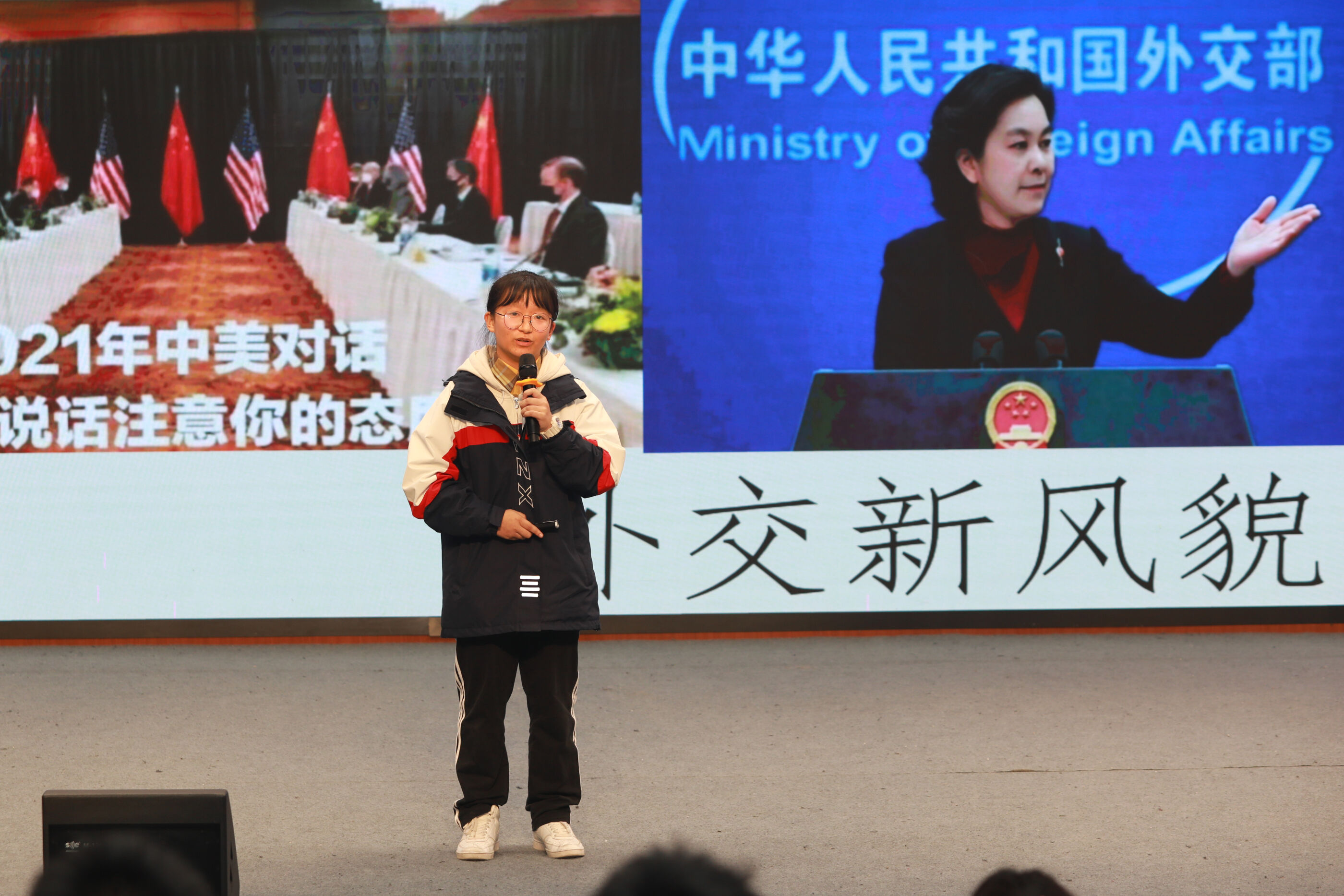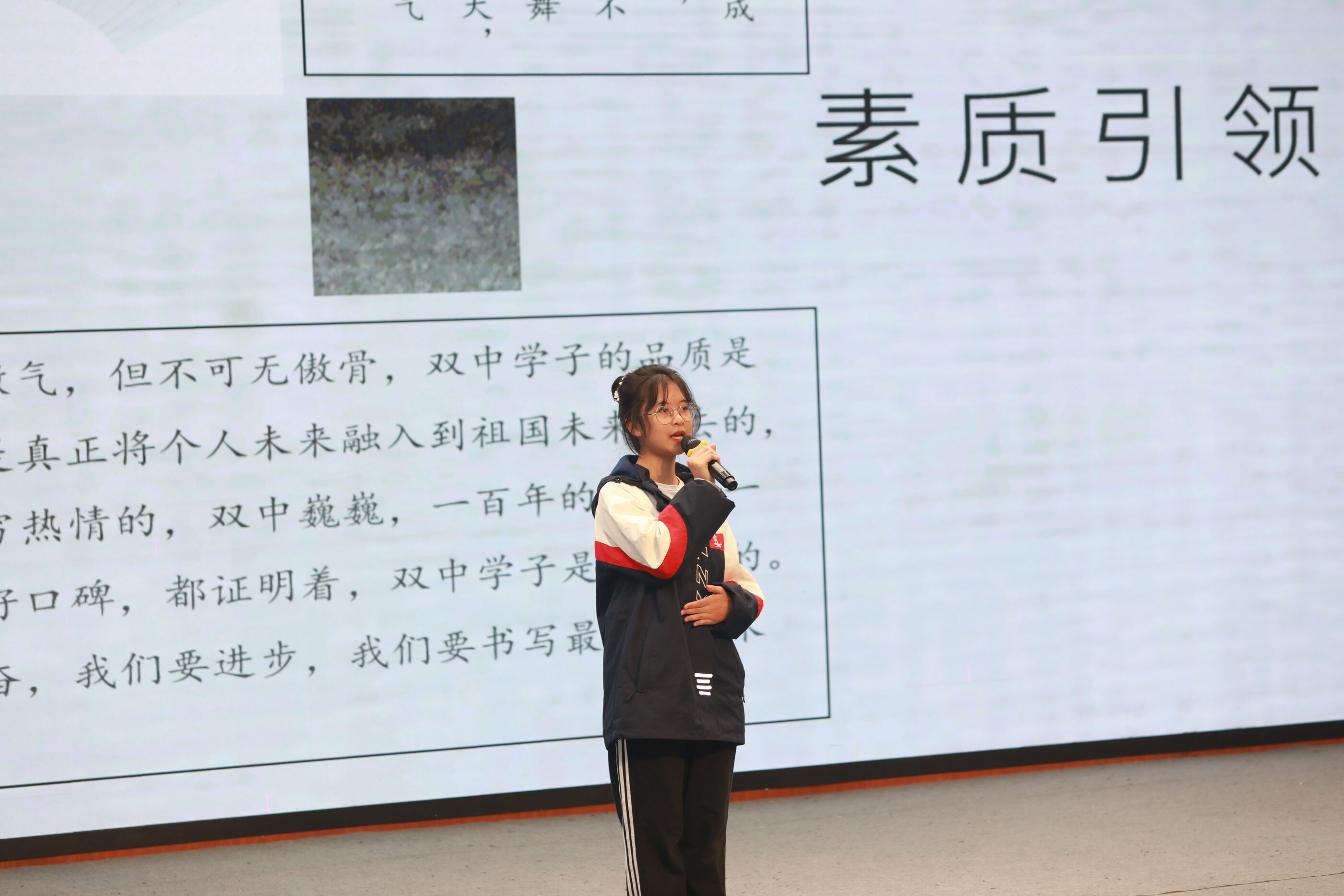 為紀(jì)念“一二·九”運(yùn)動(dòng),弘揚(yáng)愛(ài)國(guó)熱情,傳承擔(dān)當(dāng)精神,同時(shí)為豐富校園文化生活,搭建學(xué)生風(fēng)采展示的平臺(tái),雙流中學(xué)于2023年12月7日舉辦了紀(jì)念“一二?九”運(yùn)動(dòng)暨第六屆“綜評(píng)引領(lǐng) 發(fā)現(xiàn)自我 成就團(tuán)隊(duì)”演講比賽高中組總決賽。(圖為 高二18班的張睿同學(xué)和高一22班的夏雨淳主持比賽)