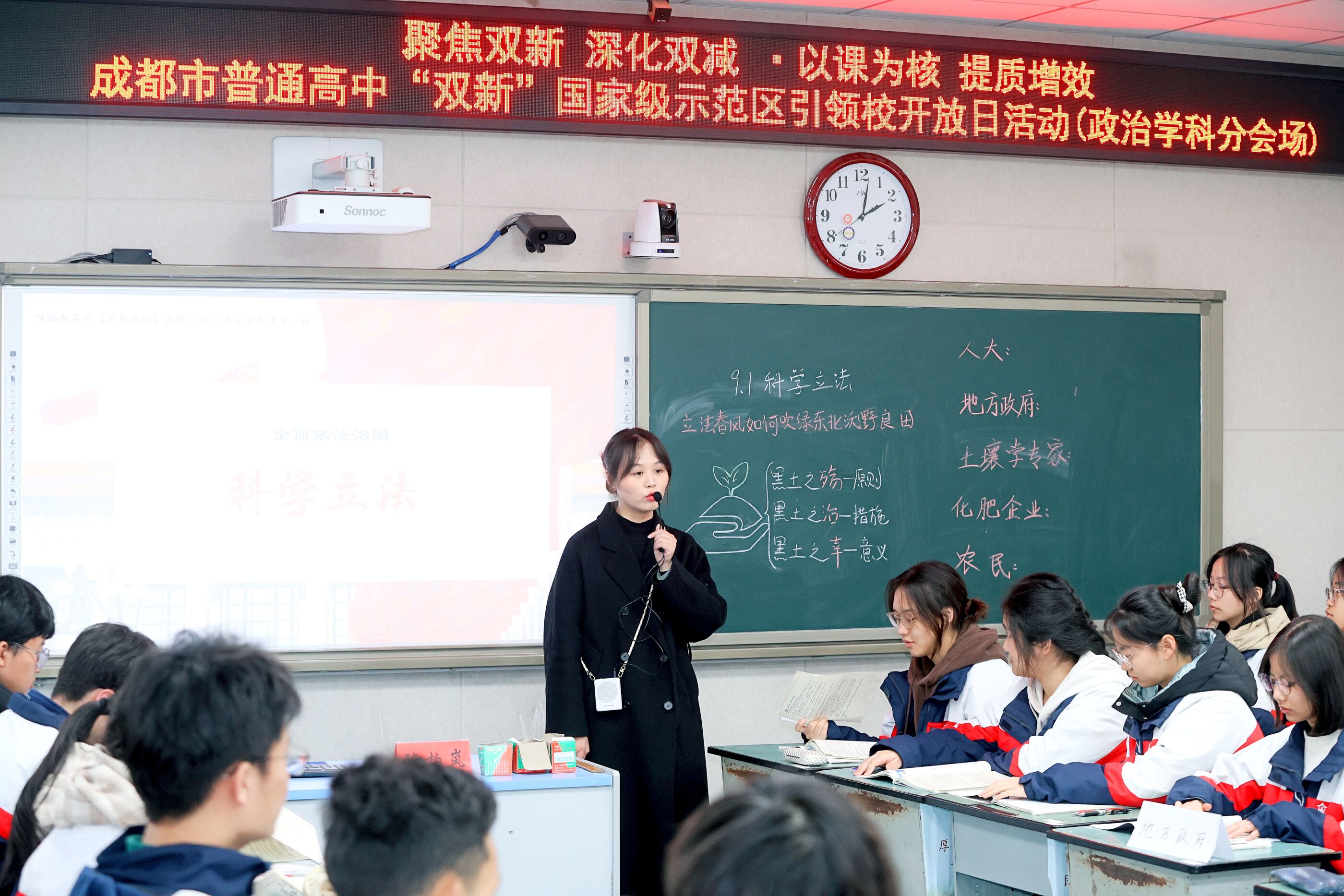 2023年12月28日下午,在雙流中學(xué)“第十六屆學(xué)術(shù)年會(huì)”上,來(lái)自雙流中學(xué)的政治老師陳柏嵐和來(lái)自重慶市暨華中學(xué)的湯紅霞老師先后執(zhí)教高二政治《科學(xué)立法》,進(jìn)行同課異構(gòu)教學(xué)研討活動(dòng)。(圖為:陳柏嵐老師授課)