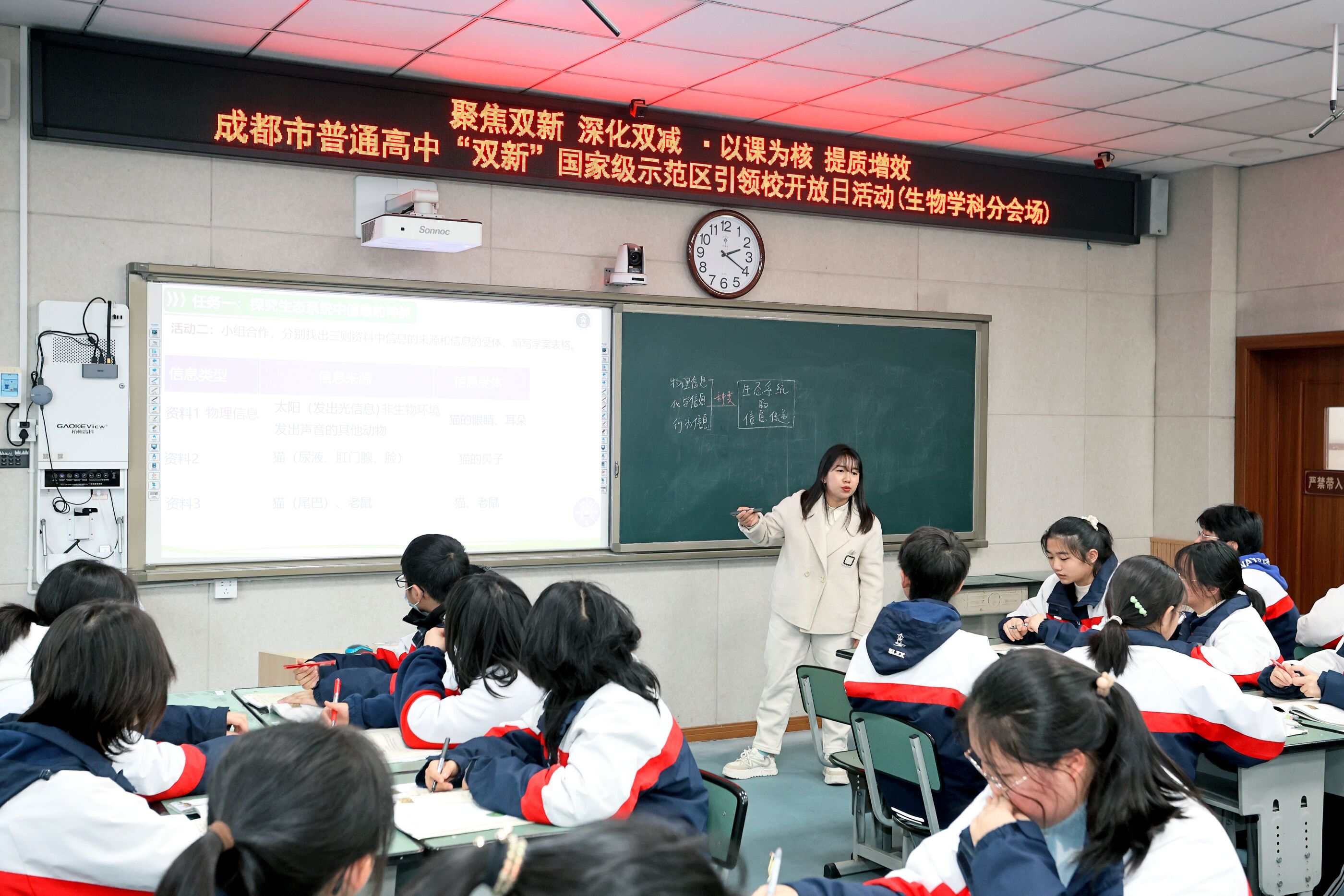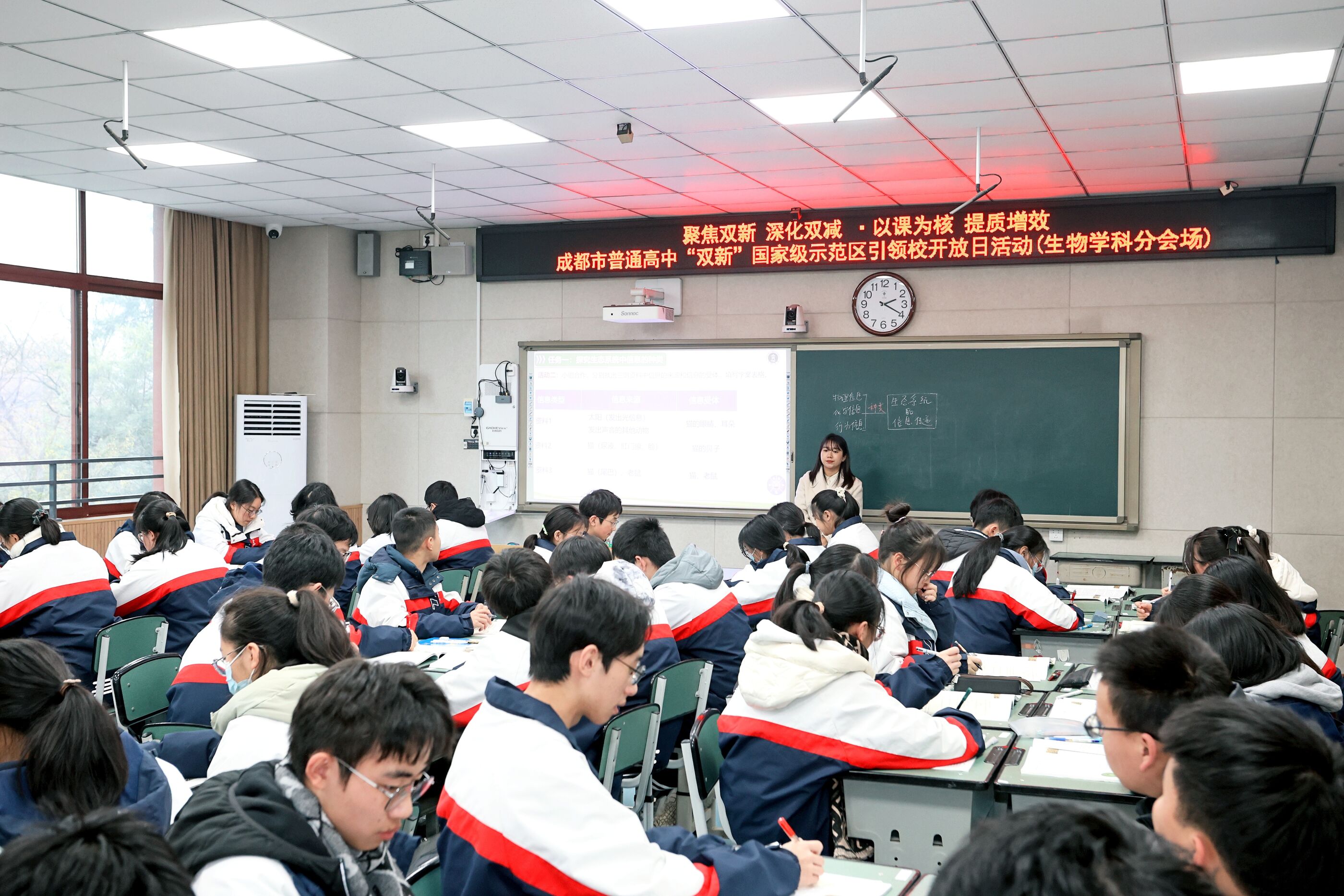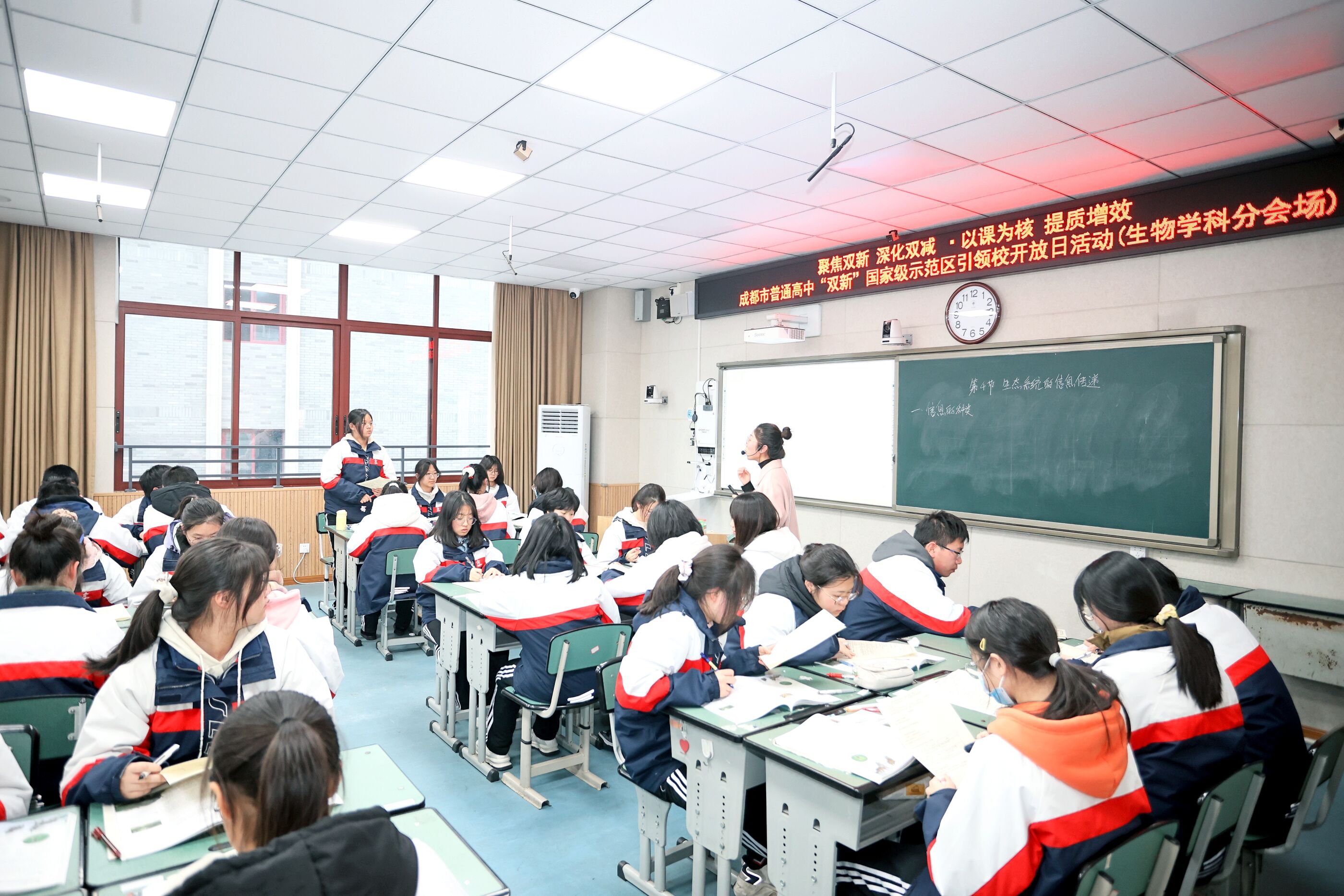2023年12月28日下午,在雙流中學(xué)“第十六屆學(xué)術(shù)年會(huì)”上,來(lái)自雙流中學(xué)的生物老師陳艷紅和來(lái)自崇州市崇慶中學(xué)的羅杰老師先后執(zhí)教高二生物《生態(tài)系統(tǒng)的信息傳遞》,進(jìn)行同課異構(gòu)教學(xué)研討活動(dòng)。(圖為:陳艷紅老師授課)