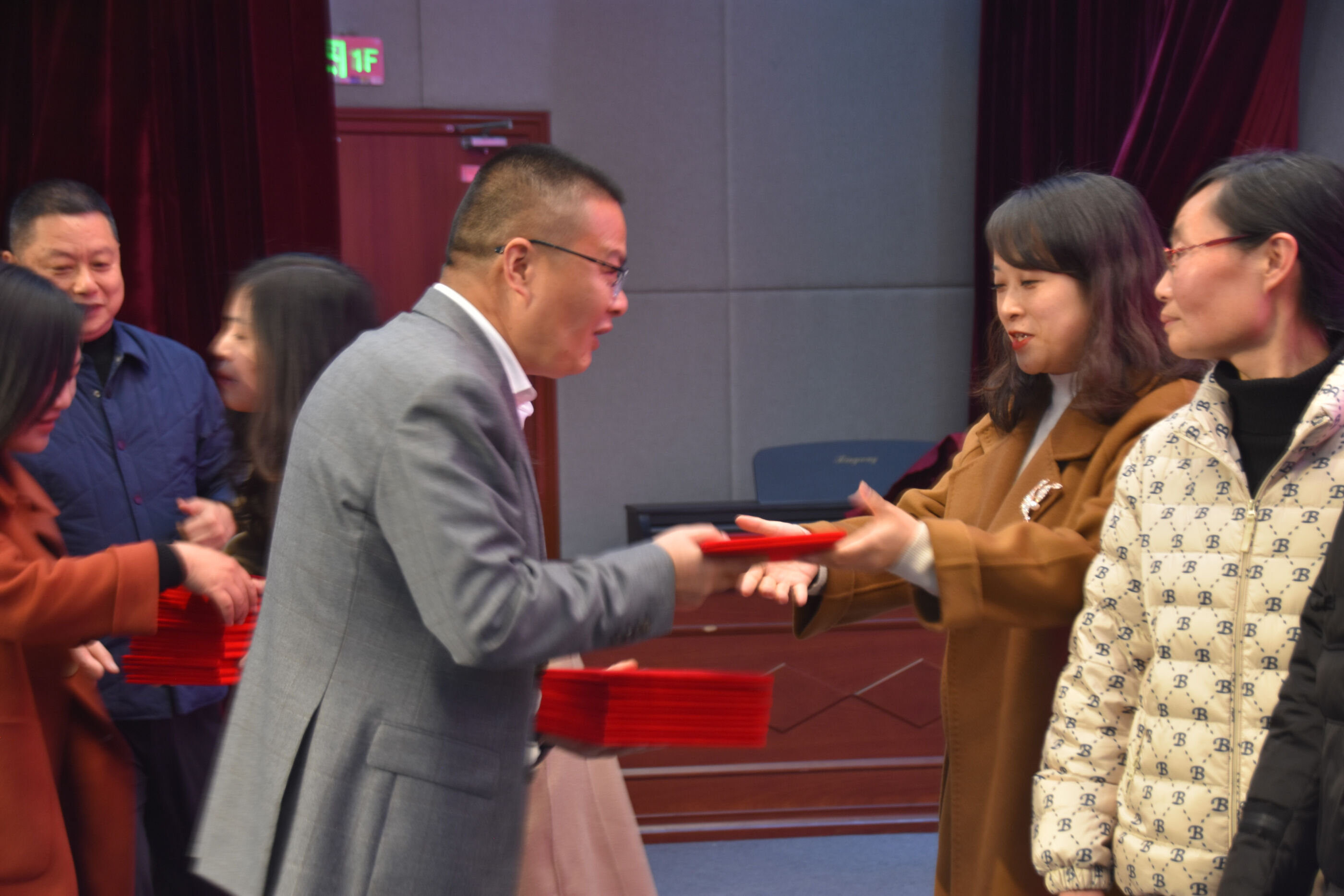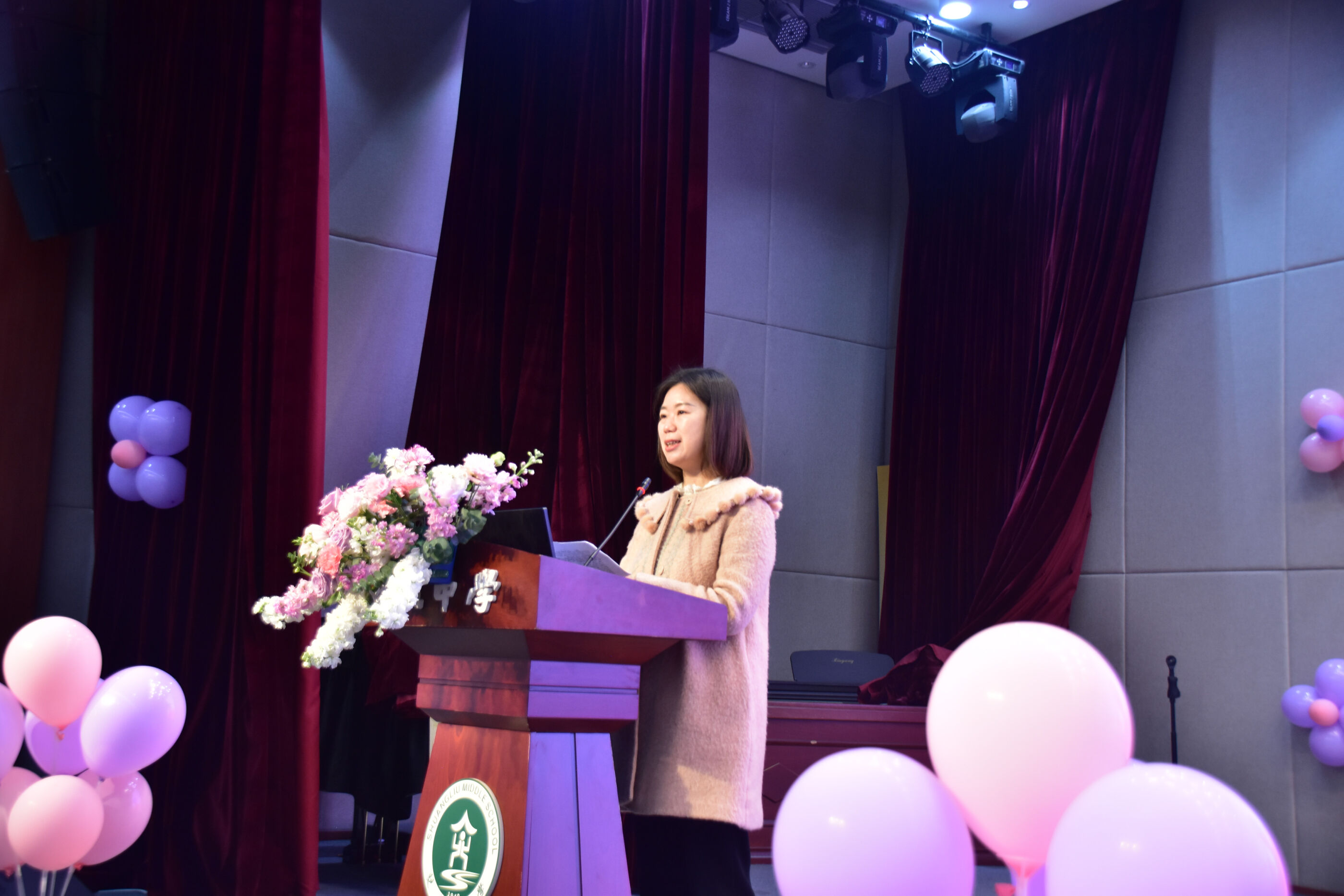 杜江濤校長(zhǎng)為受表彰女教職工頒獎(jiǎng)