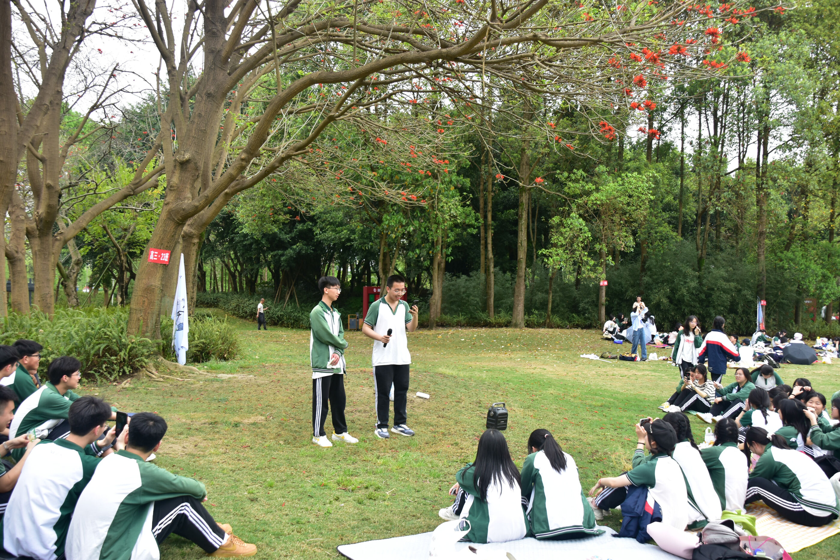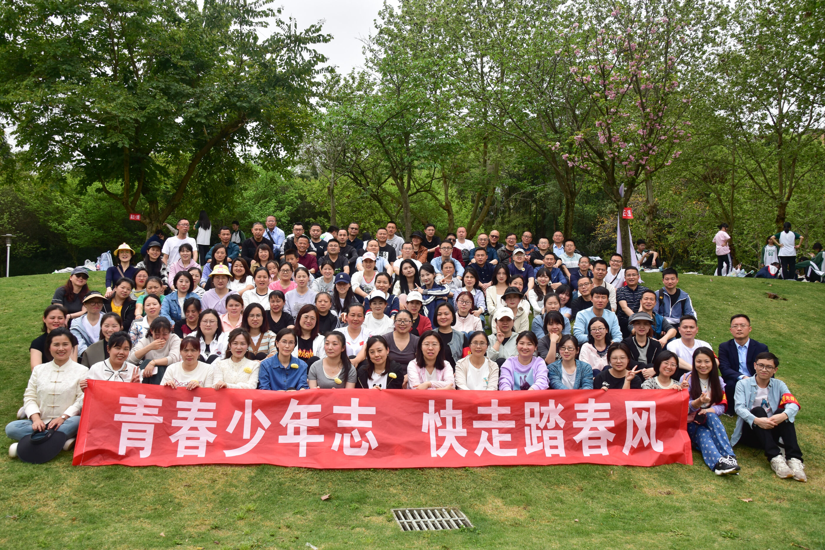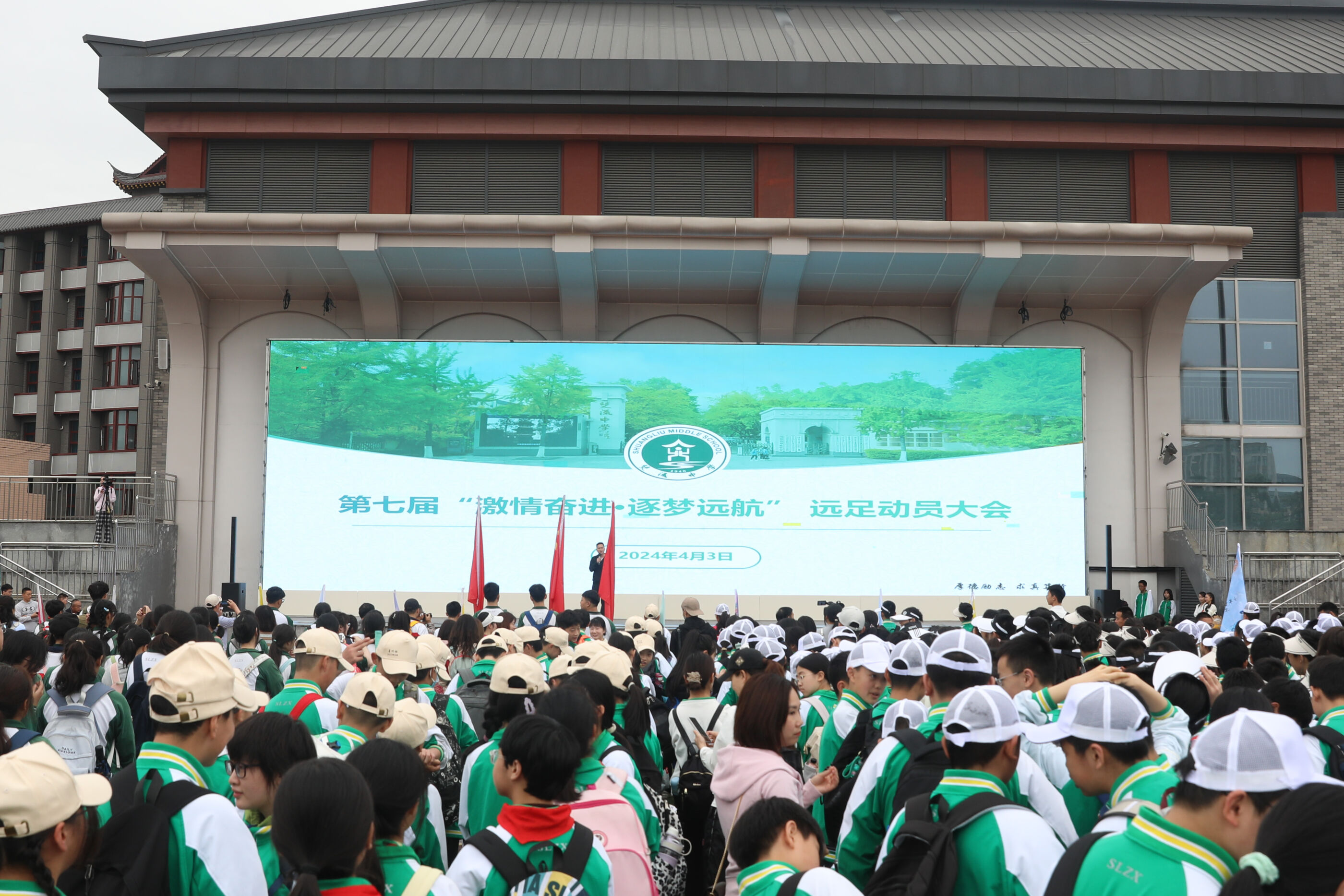 2024年4月3日,雙流中學(xué)舉行第七屆“激情奮進 逐夢遠(yuǎn)航”遠(yuǎn)足活動高三年級和初中組的活動。(圖為 出發(fā)前的動員大會)