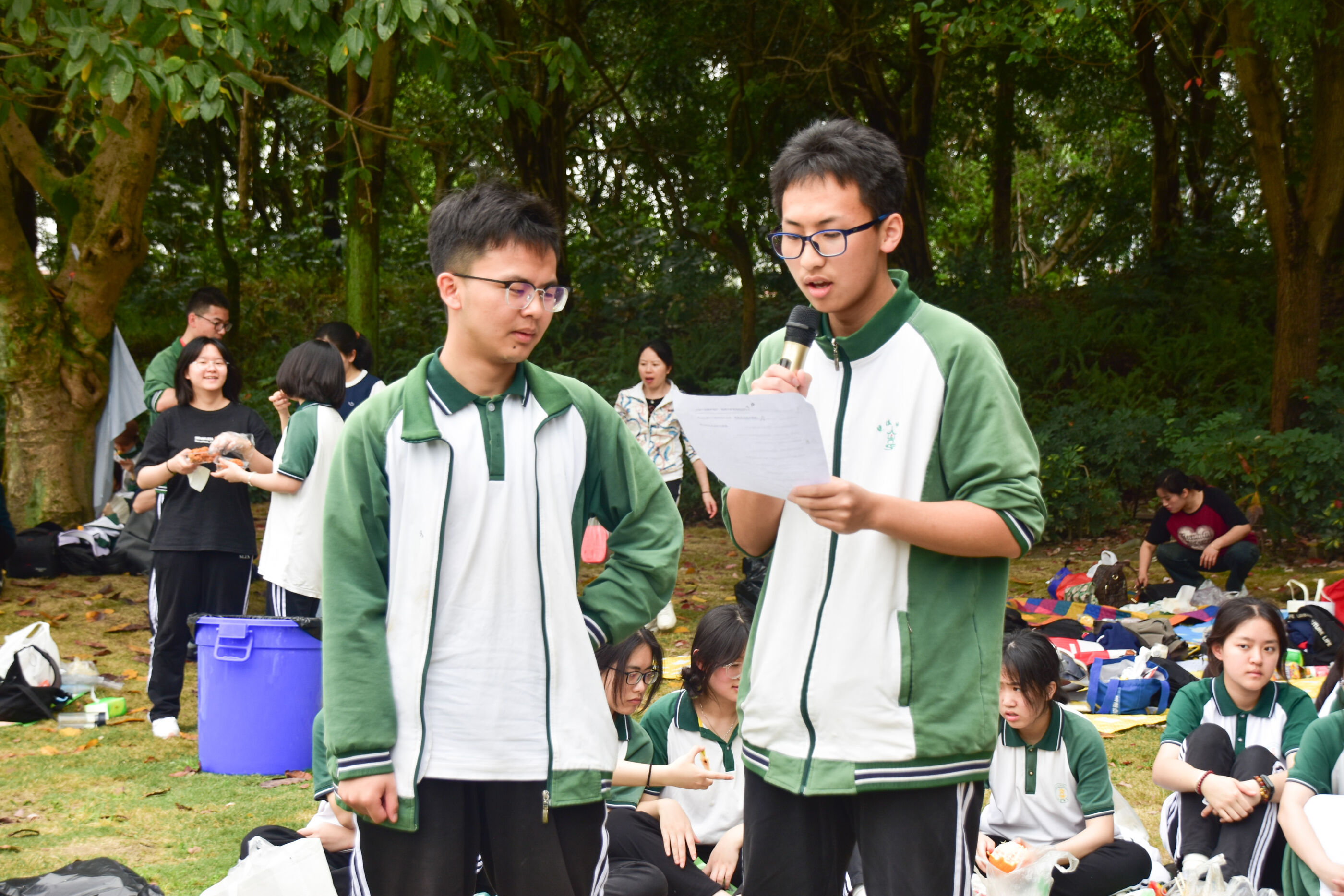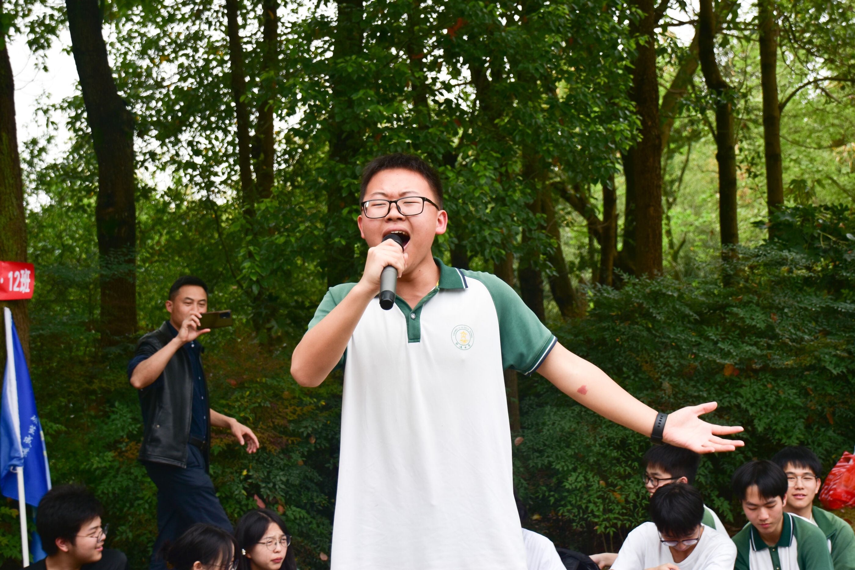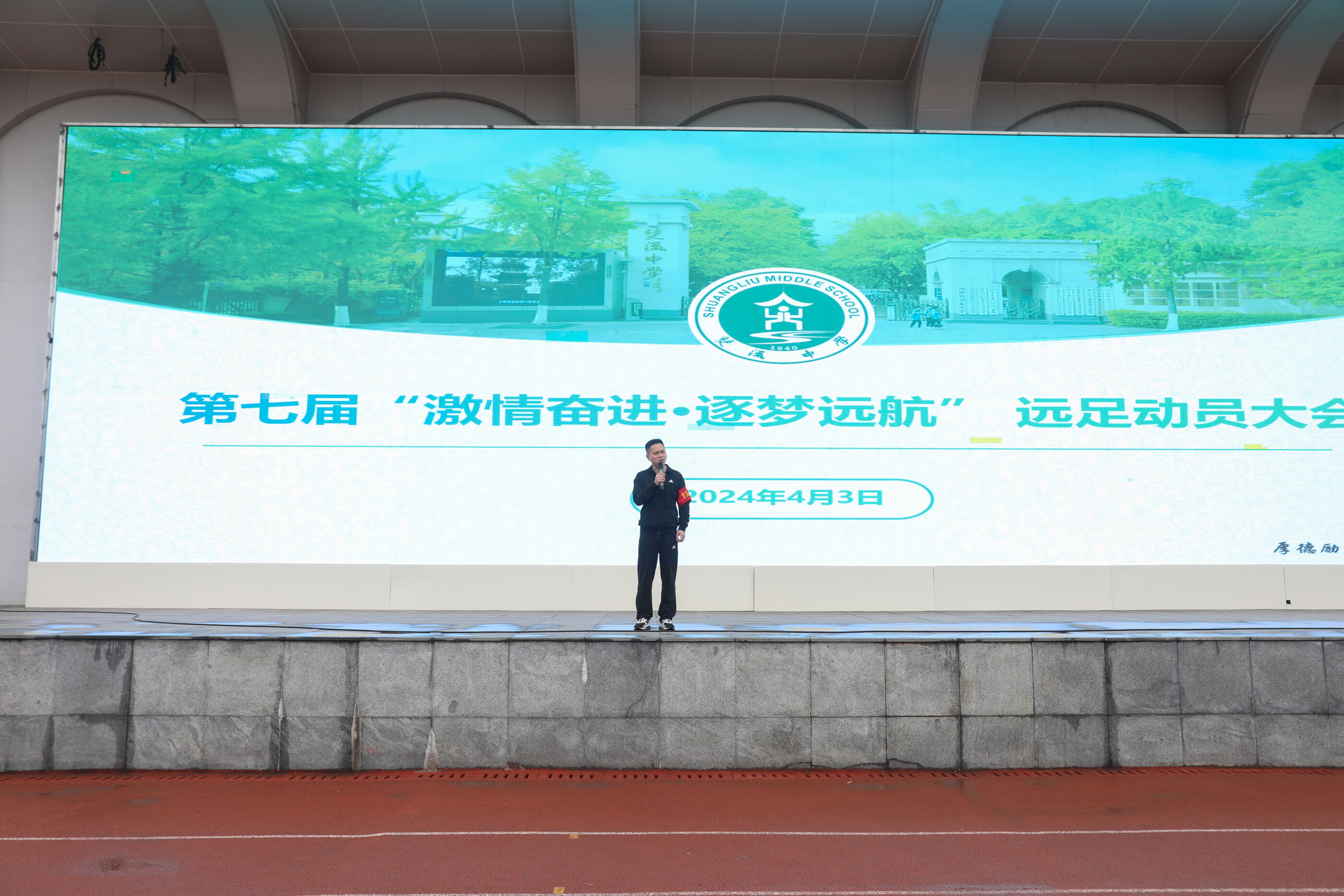 2024年4月3日,雙流中學(xué)舉行第七屆“激情奮進 逐夢遠(yuǎn)航”遠(yuǎn)足活動高三年級和初中組的活動。(圖為 徐天福副校長作動員講話)