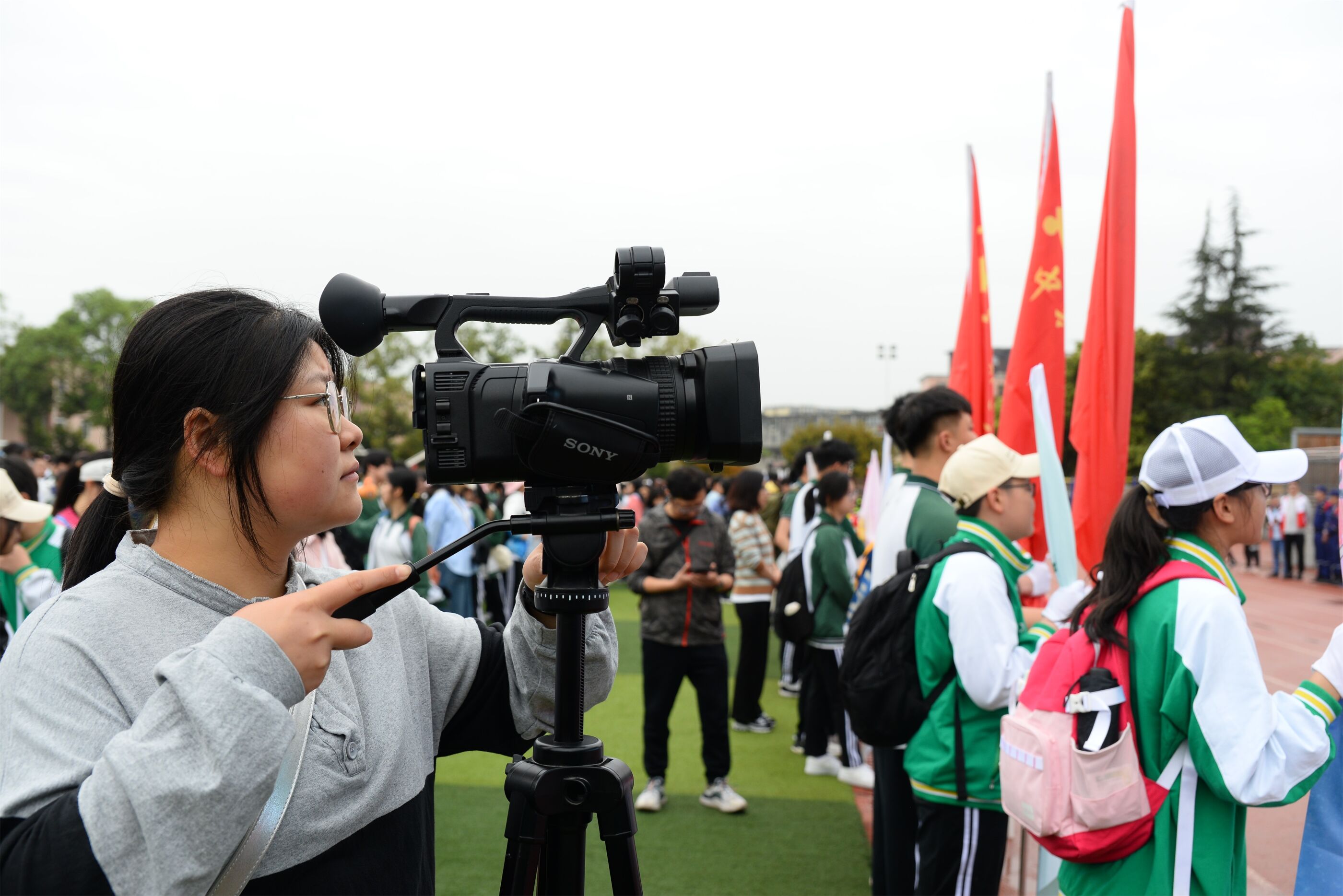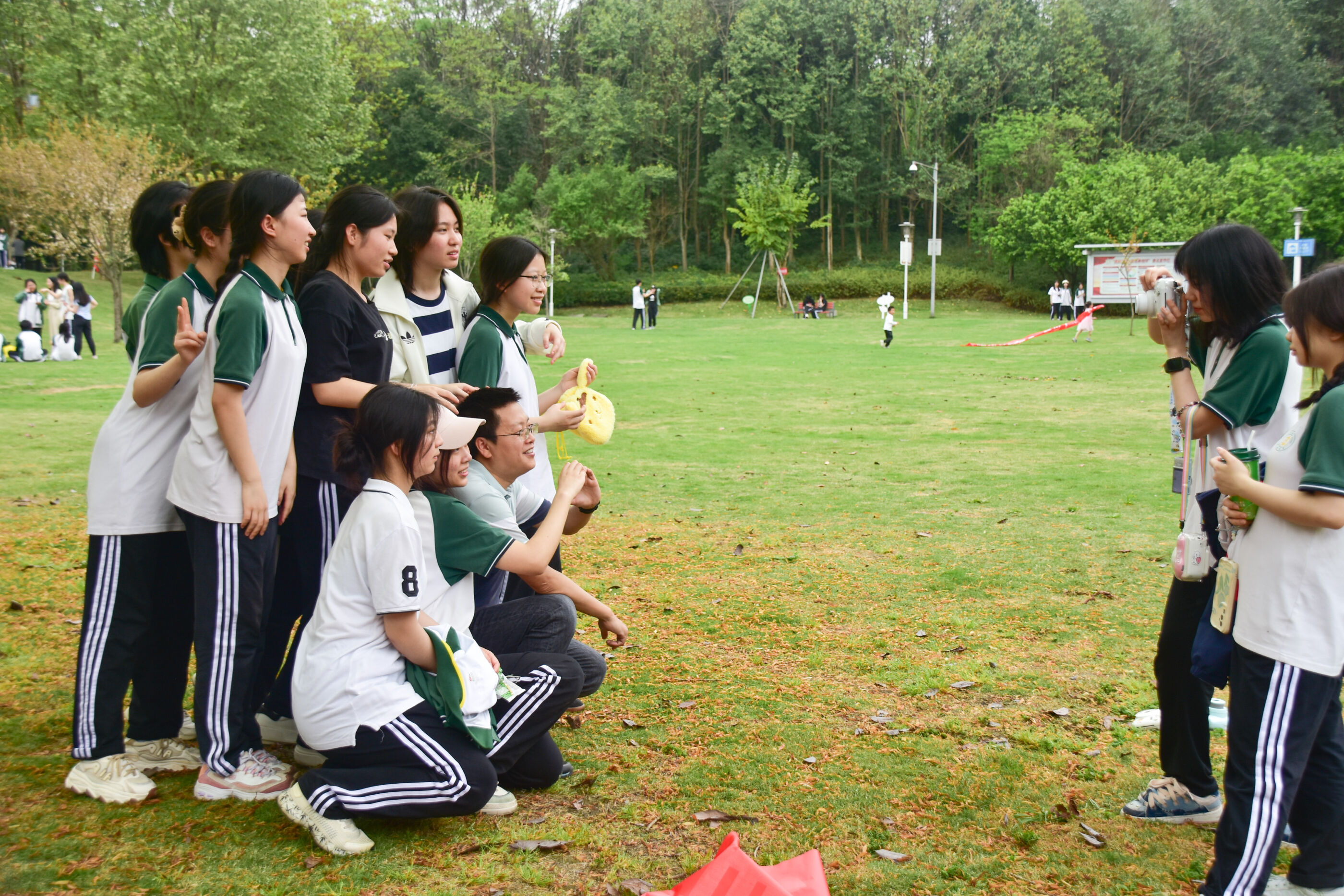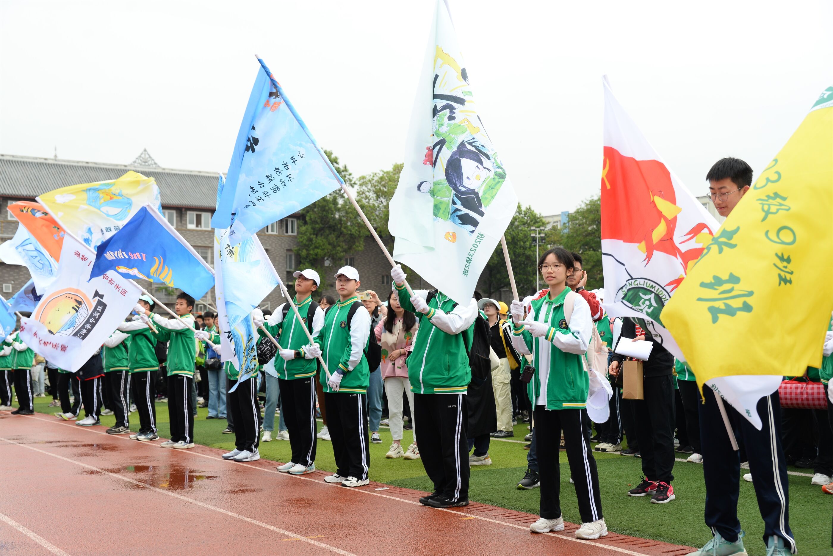 各班揮舞旗幟準(zhǔn)備出發(fā)