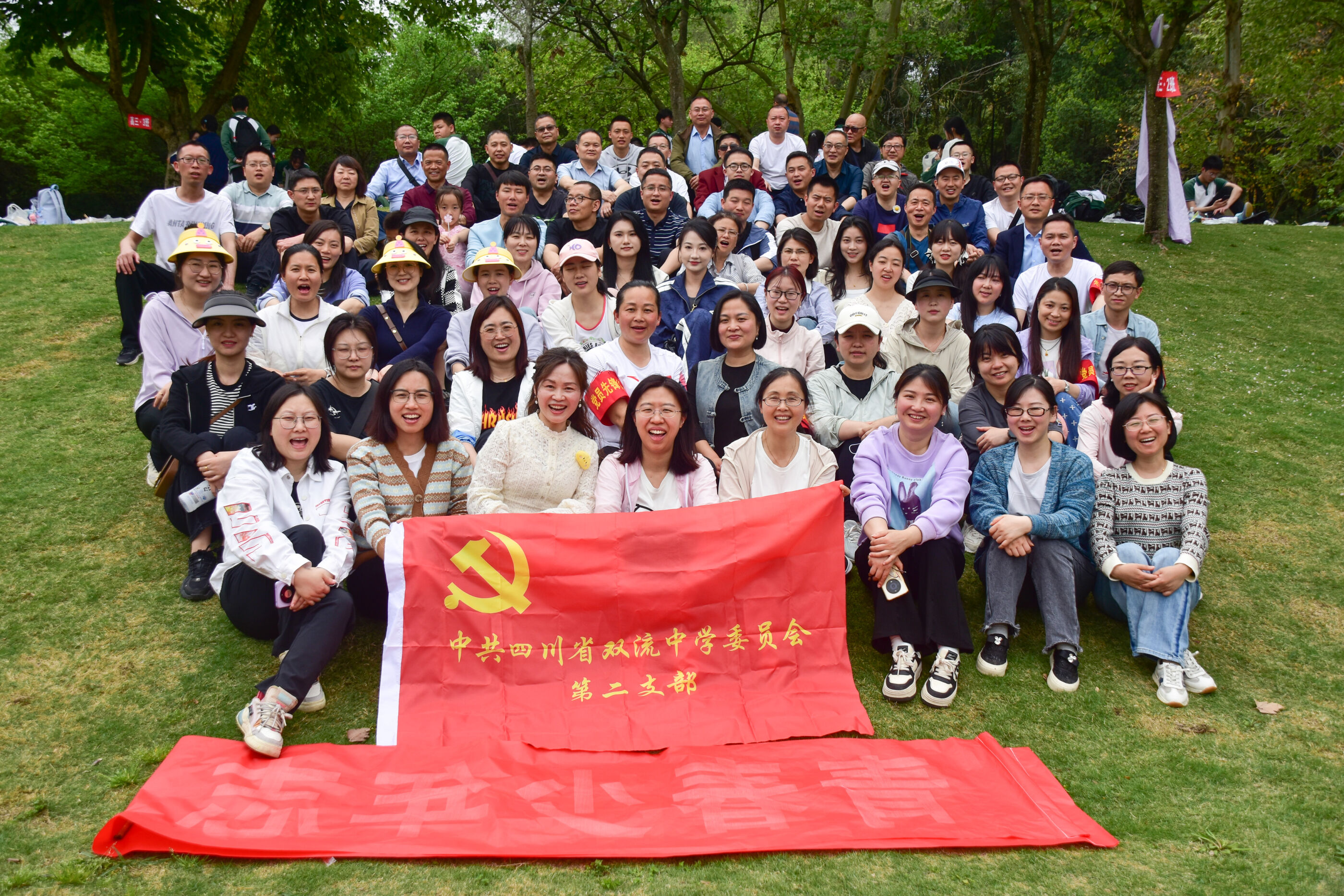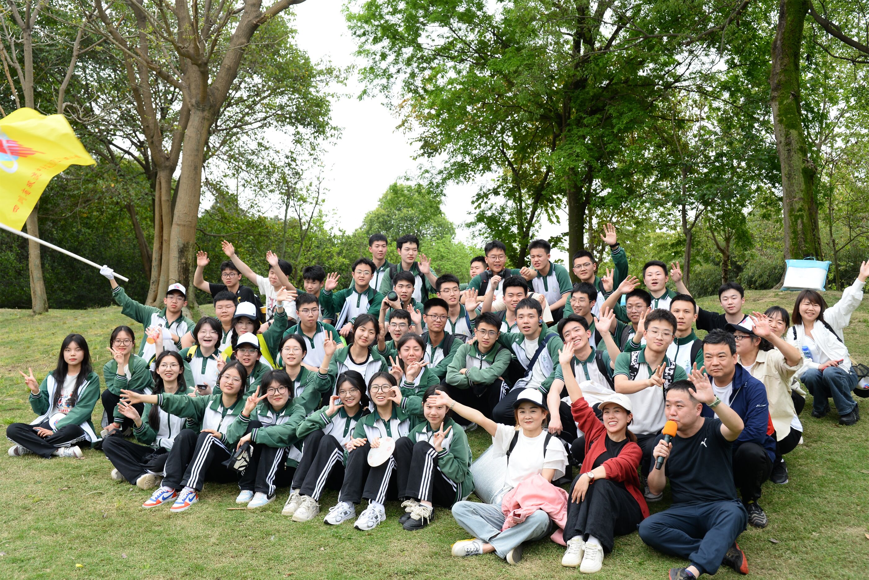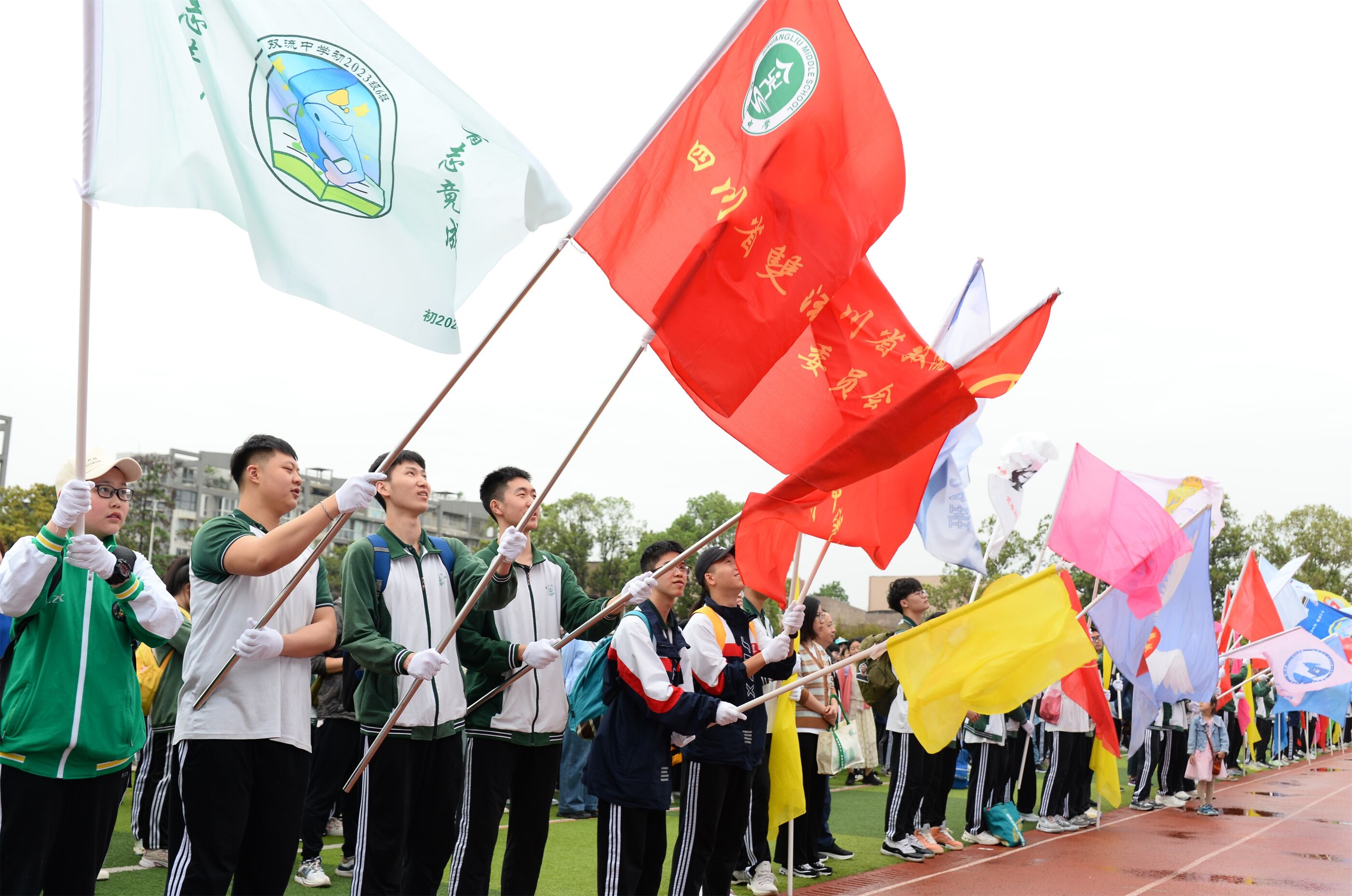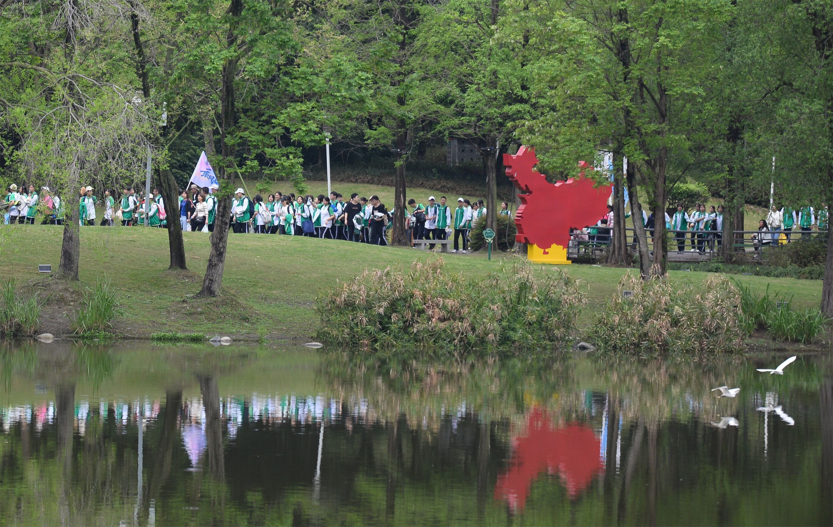 雙流中學(xué)舉行“激情奮進 逐夢遠(yuǎn)航”遠(yuǎn)足活動,彩旗隊伍領(lǐng)路