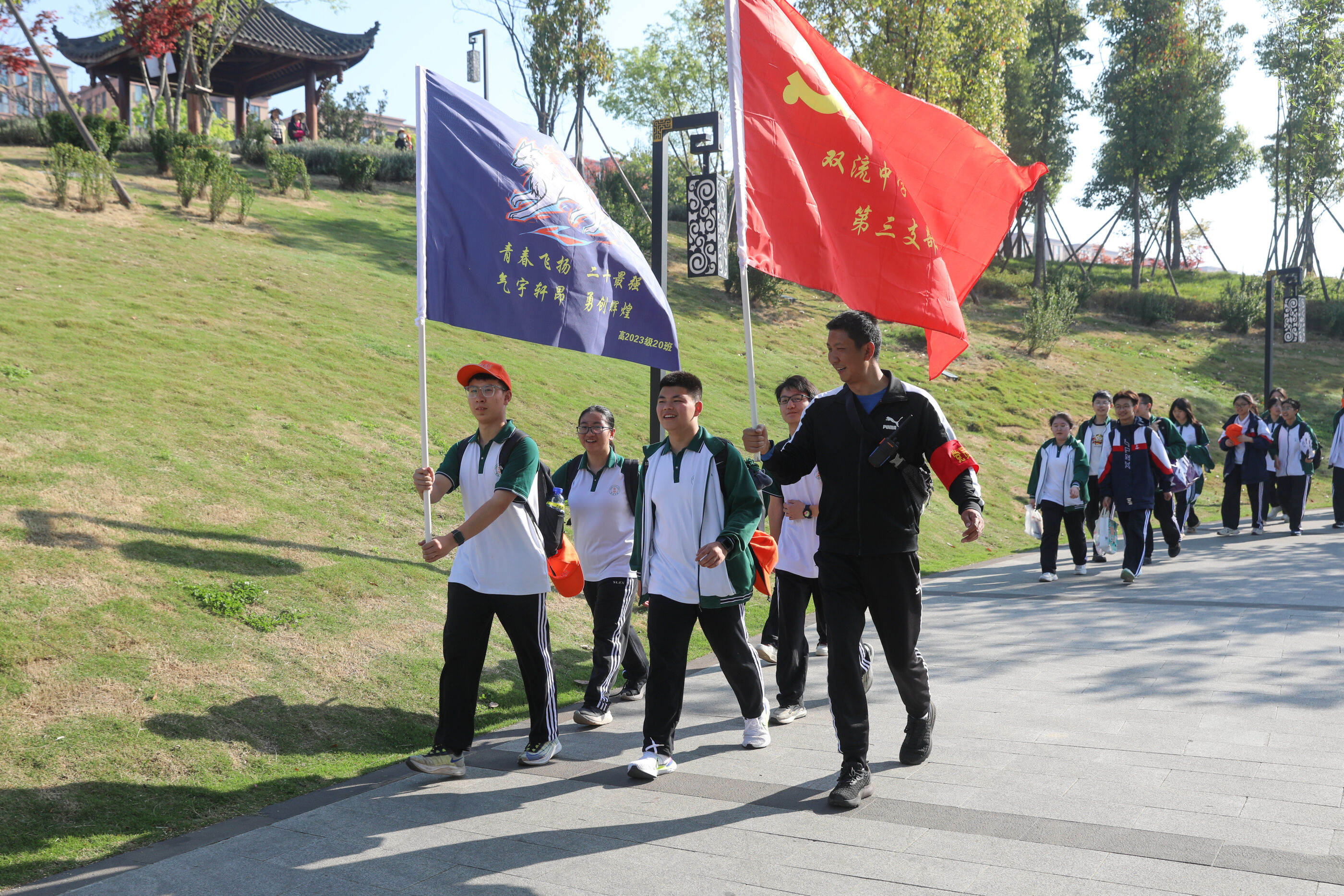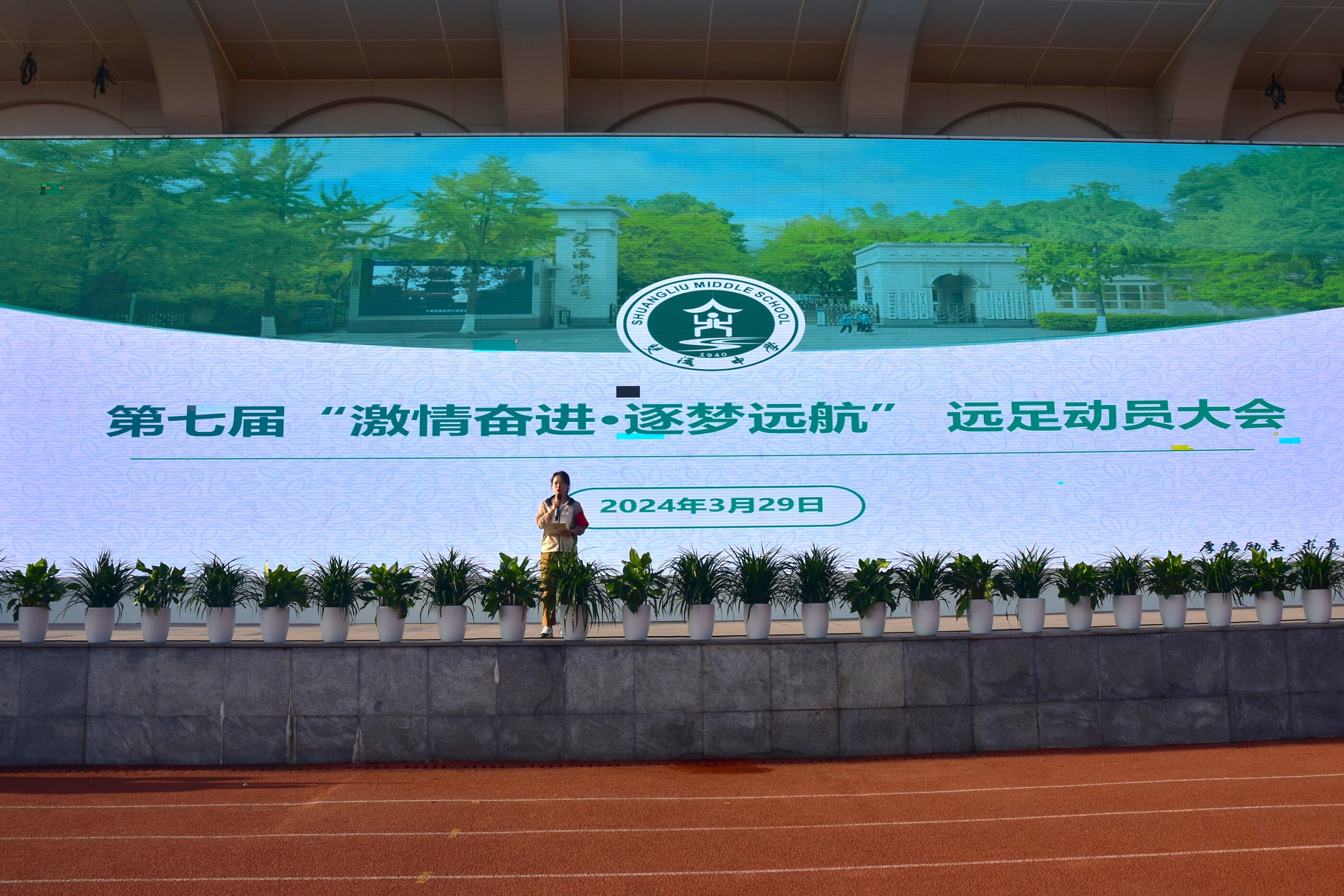 2024年3月29日,雙流中學(xué)第七屆“激情奮進(jìn) 逐夢(mèng)遠(yuǎn)航”遠(yuǎn)足活動(dòng)正式開啟,今天參加活動(dòng)的是高一、高二兩個(gè)年級(jí)。圖為:黃超書記作動(dòng)員講話。