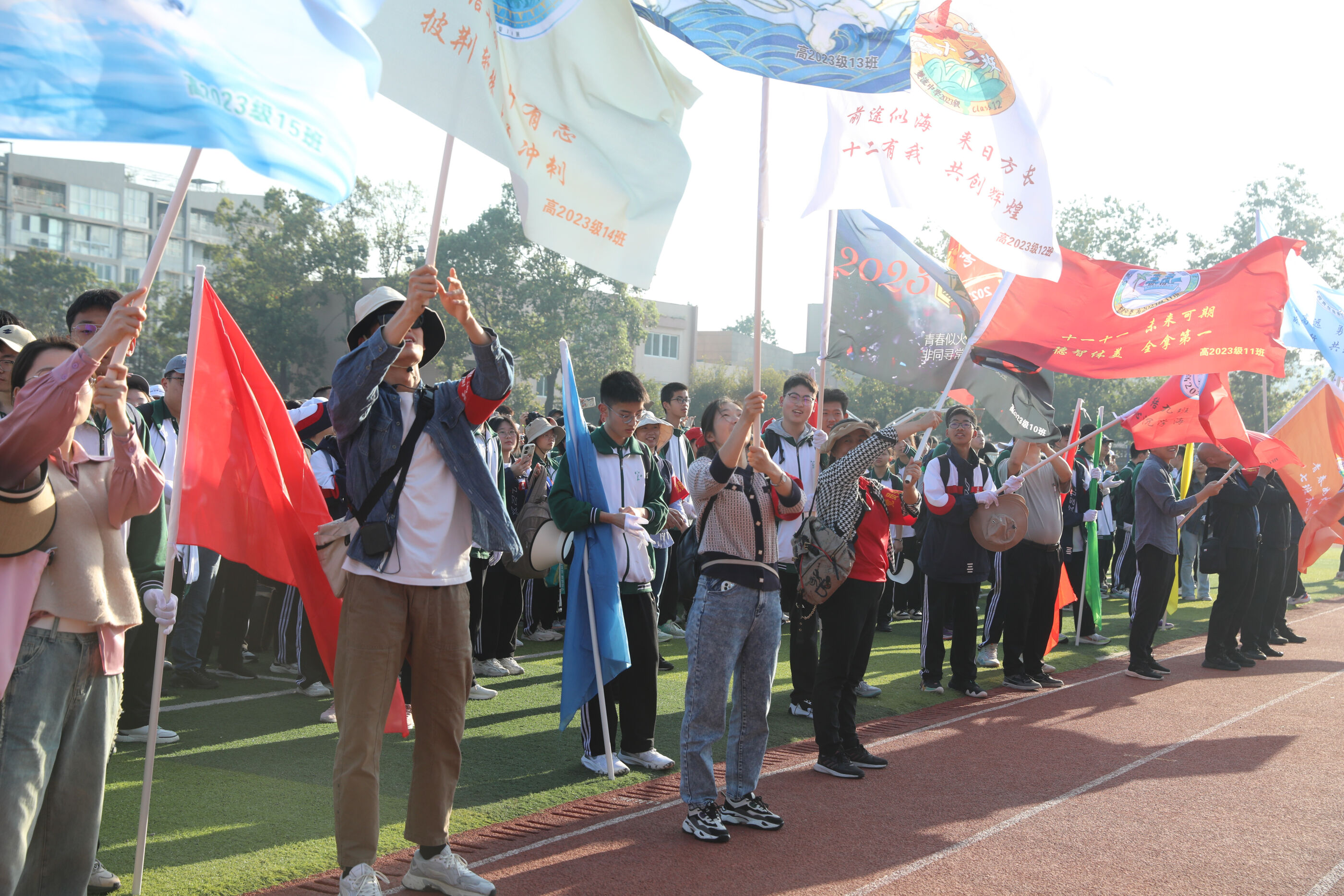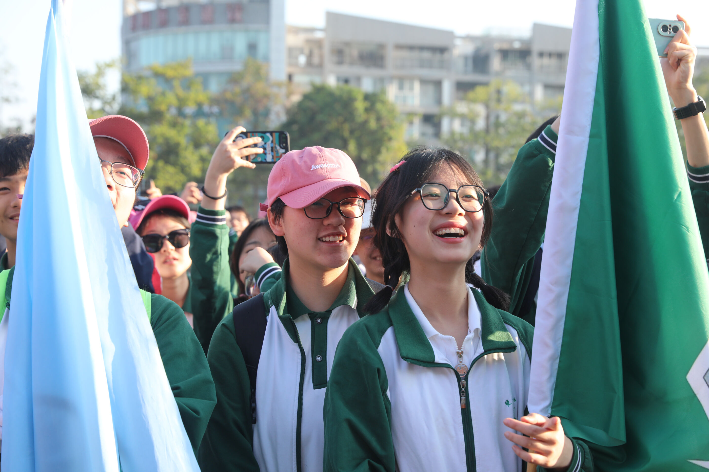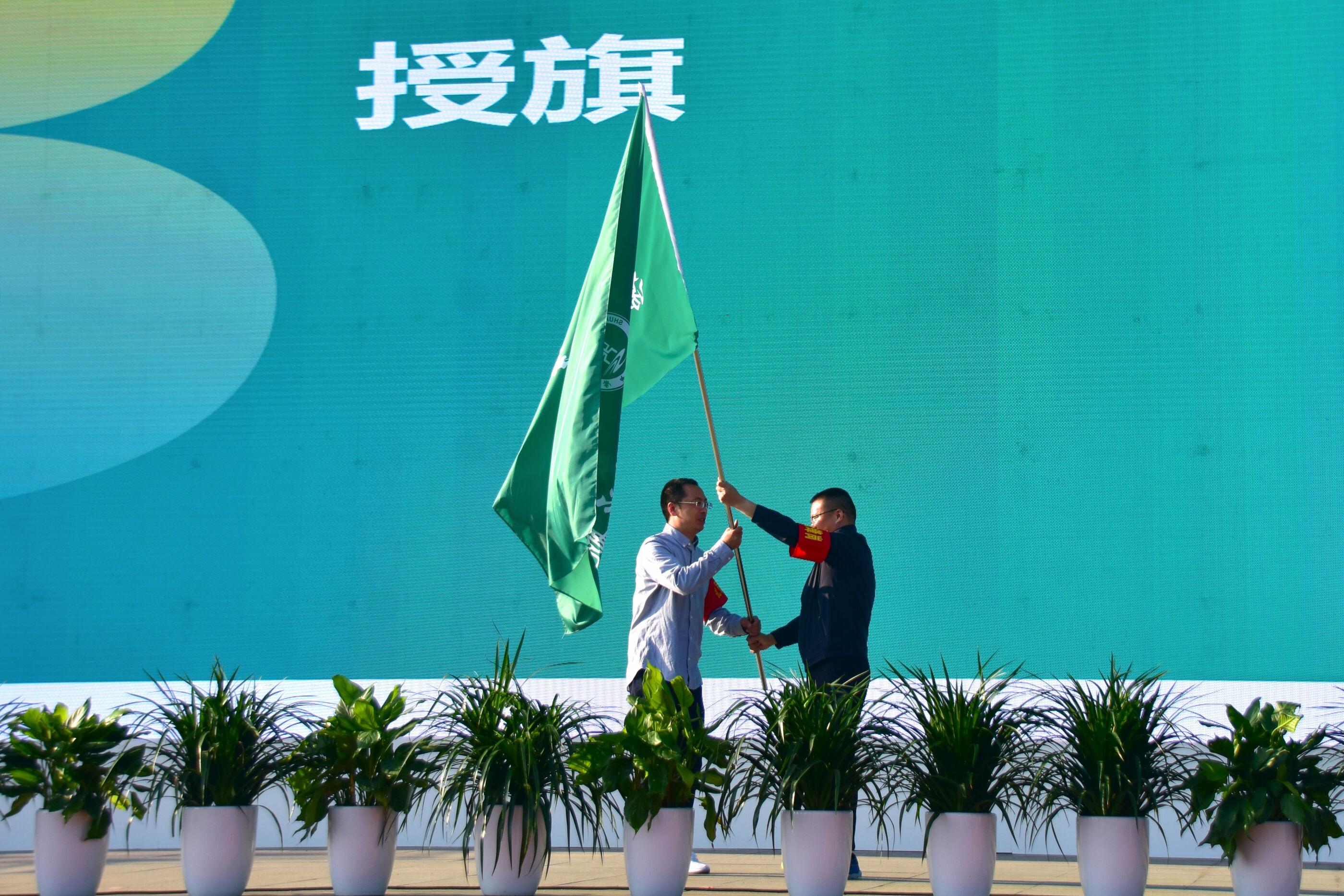 大家揮舞旗幟準(zhǔn)備出發(fā)
