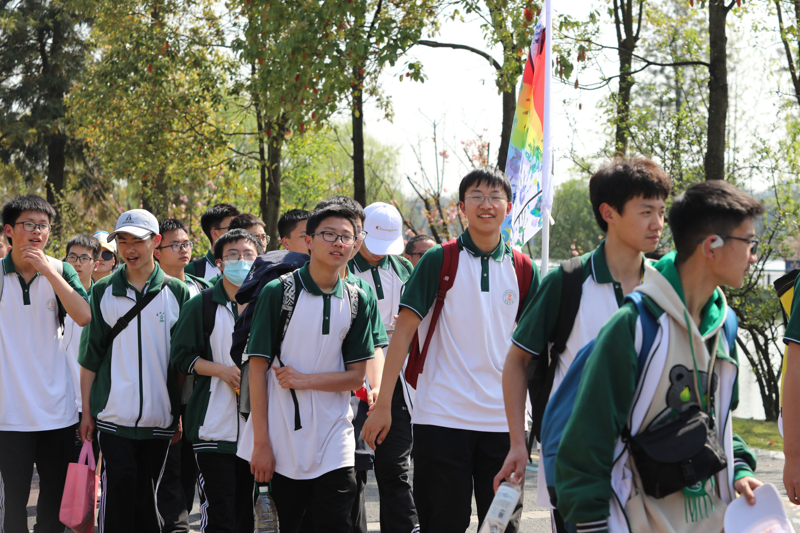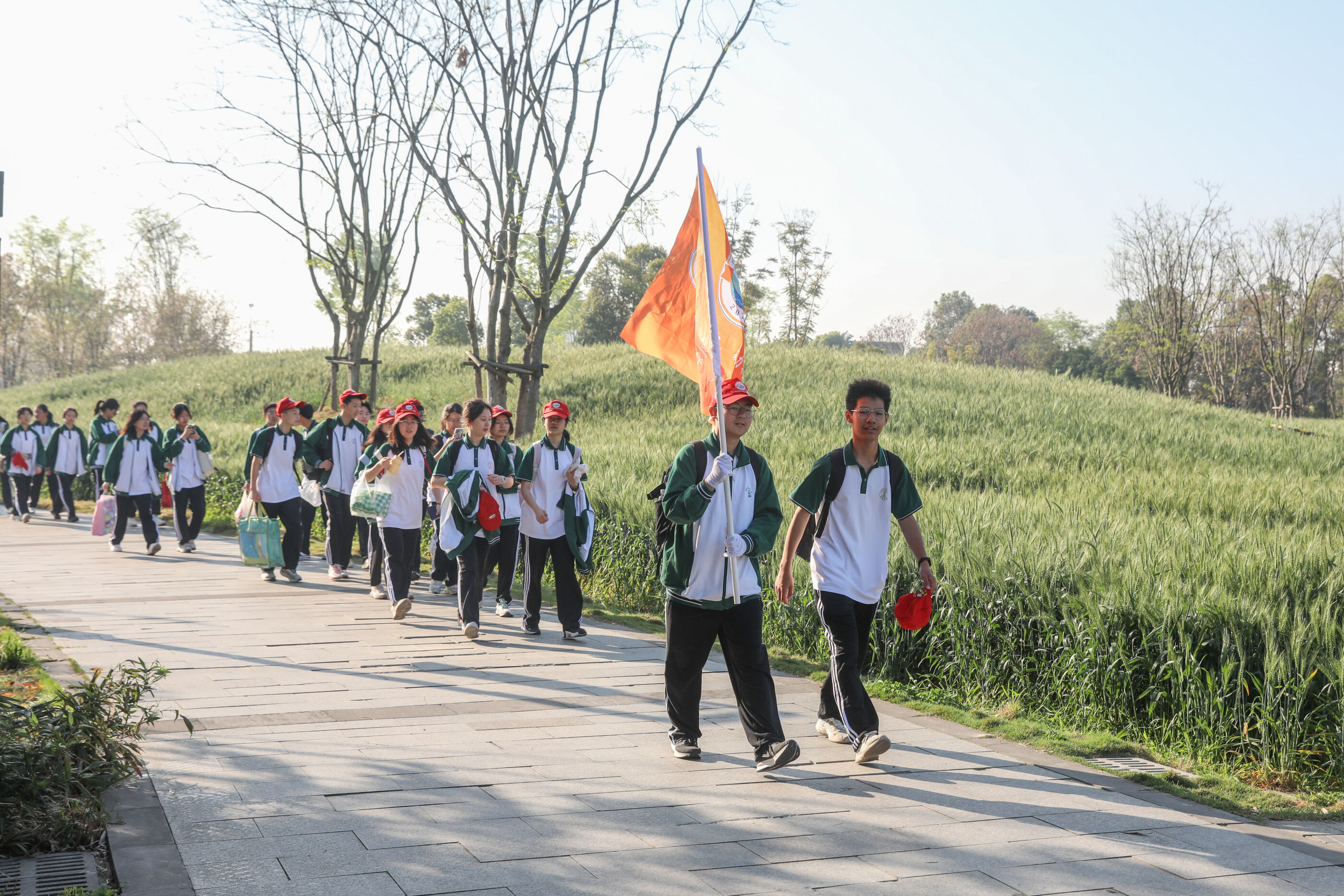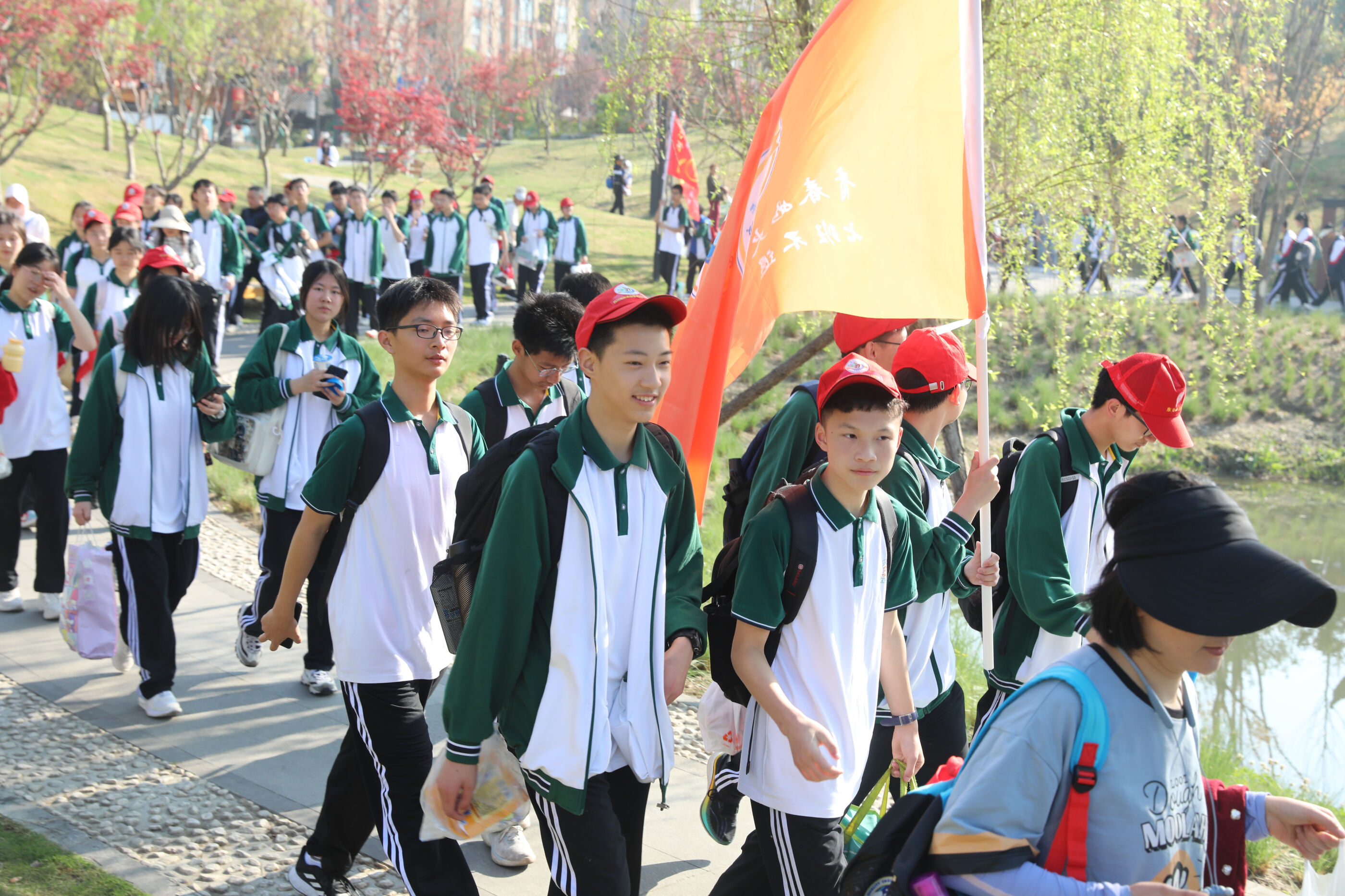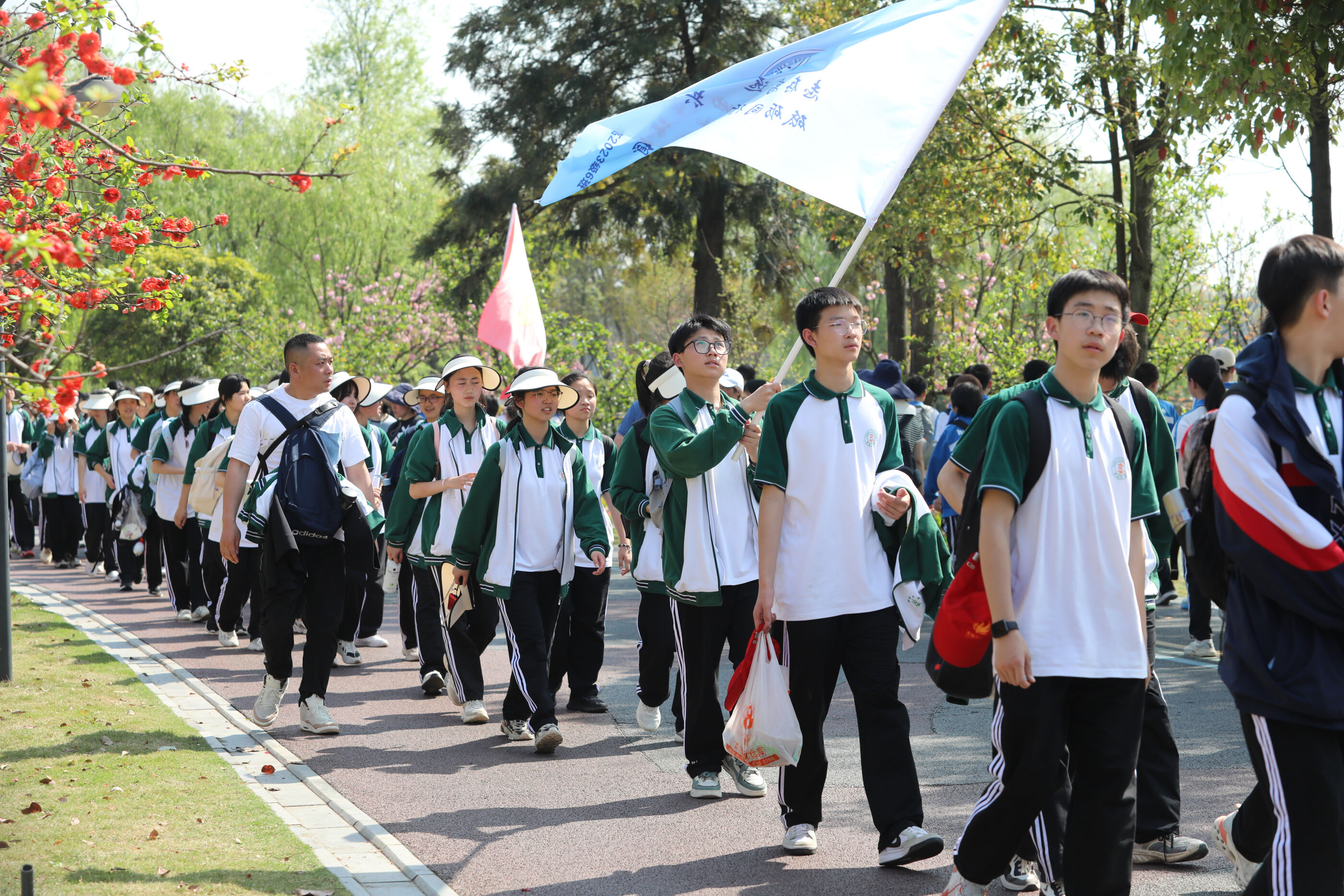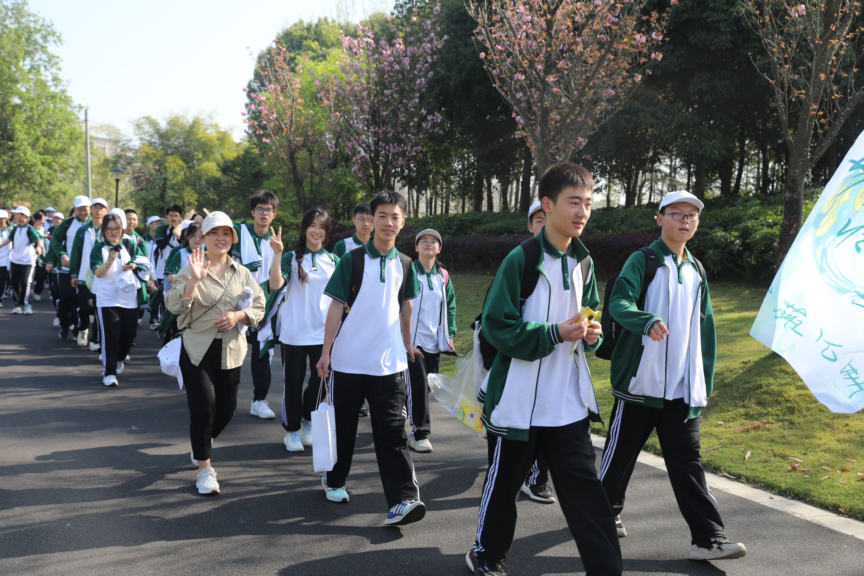 在黃超書記帶領(lǐng)下,兩個(gè)年級(jí)的老師和學(xué)生一起出發(fā)