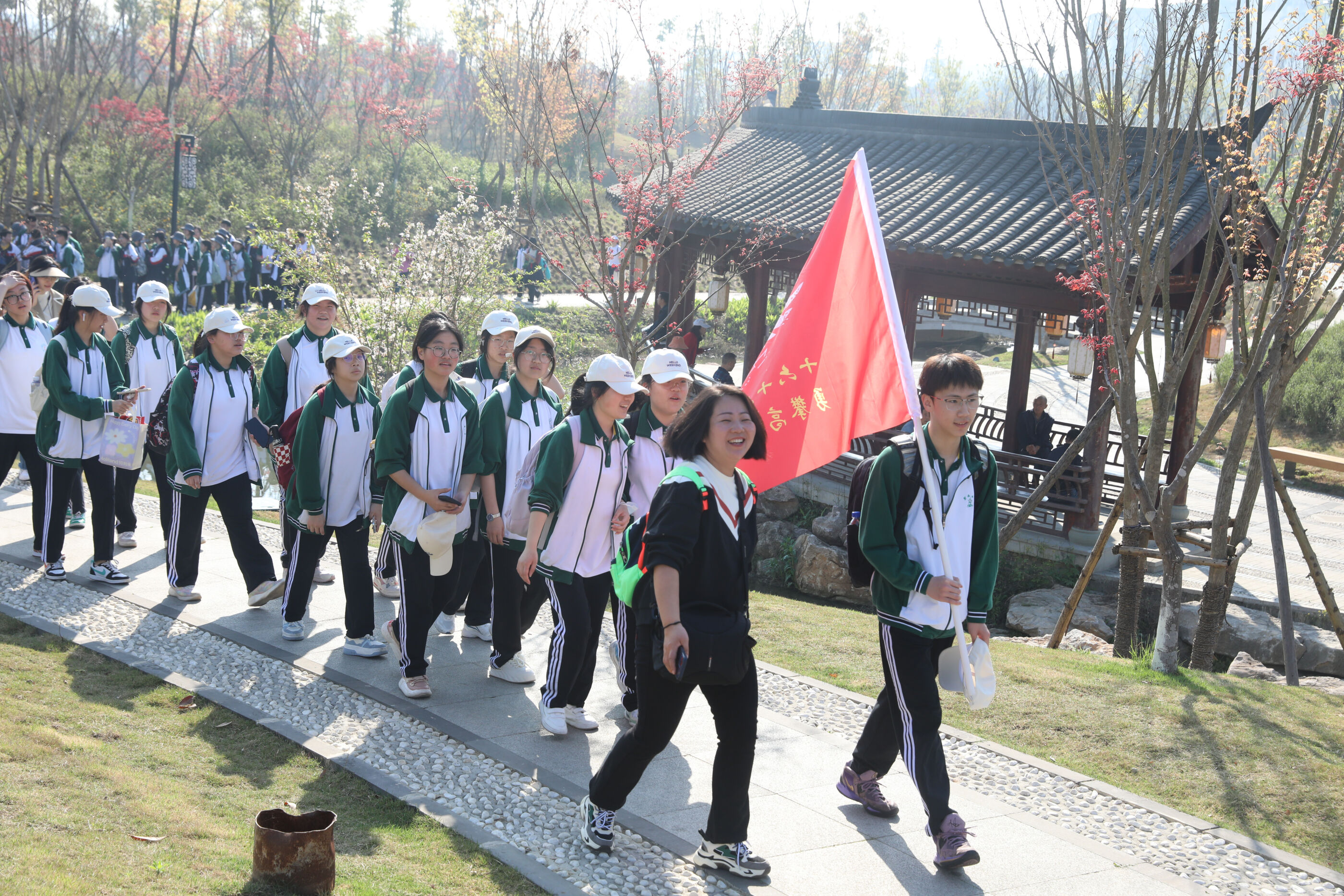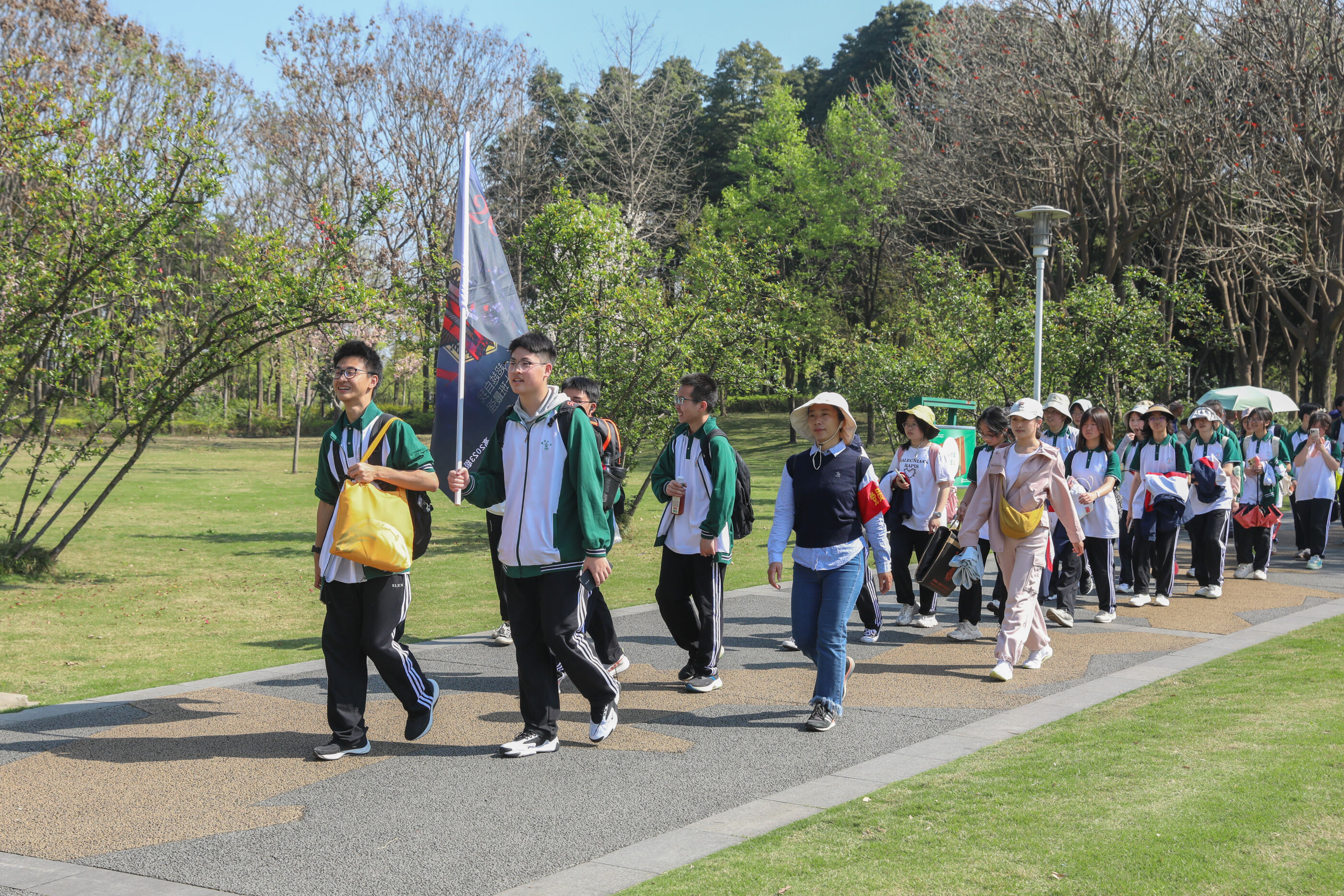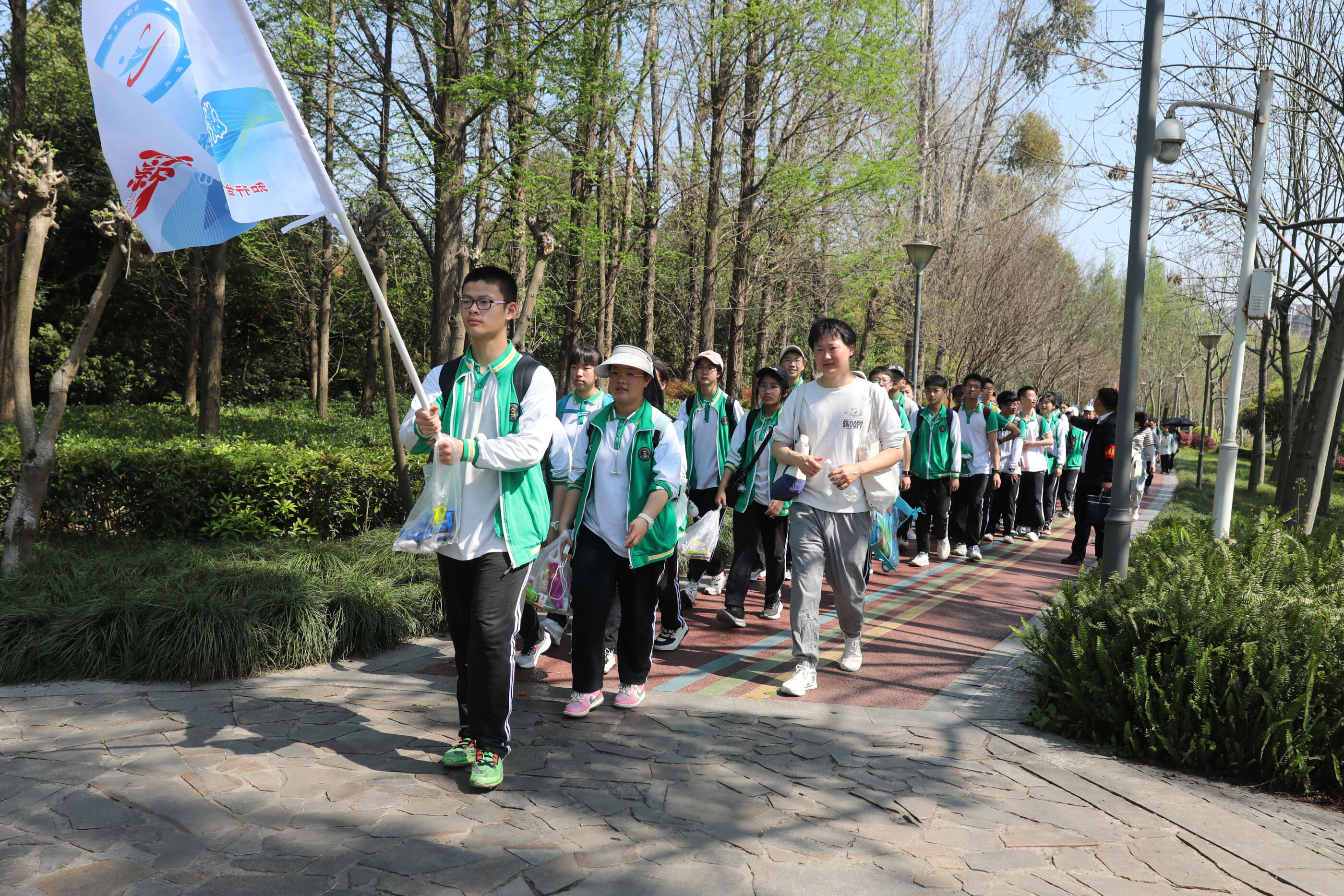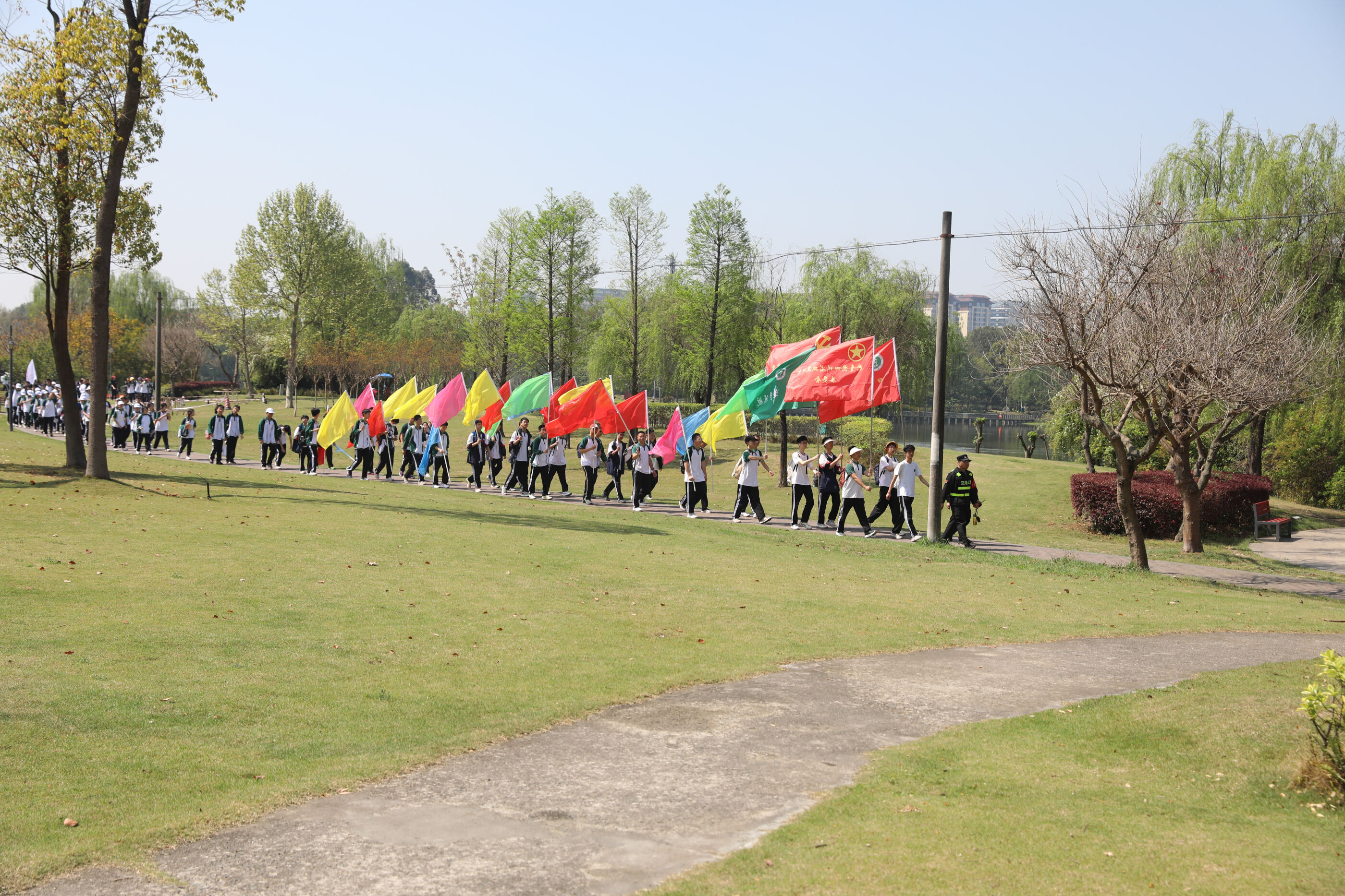 在黃超書記帶領(lǐng)下,兩個(gè)年級(jí)的老師和學(xué)生一起出發(fā)