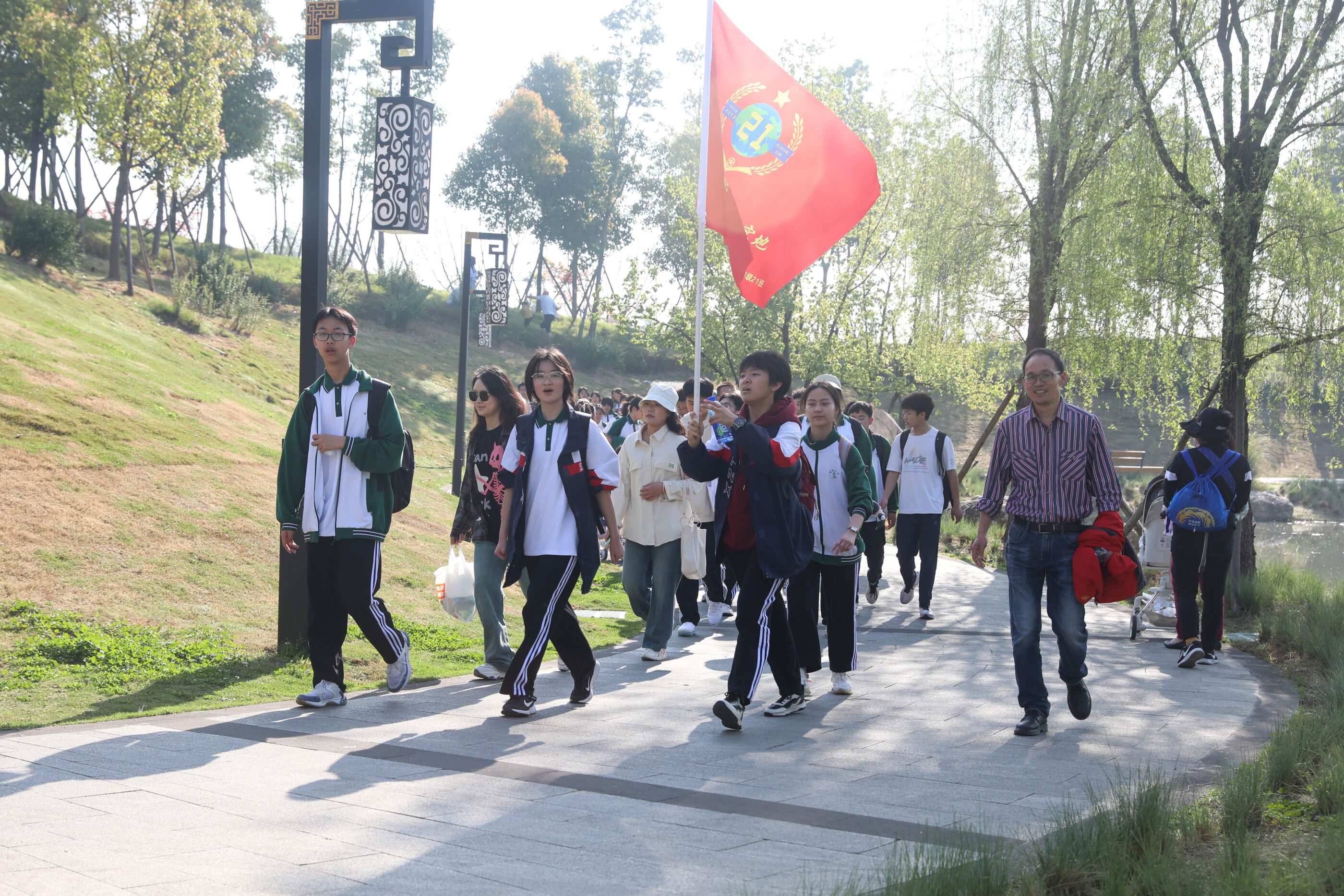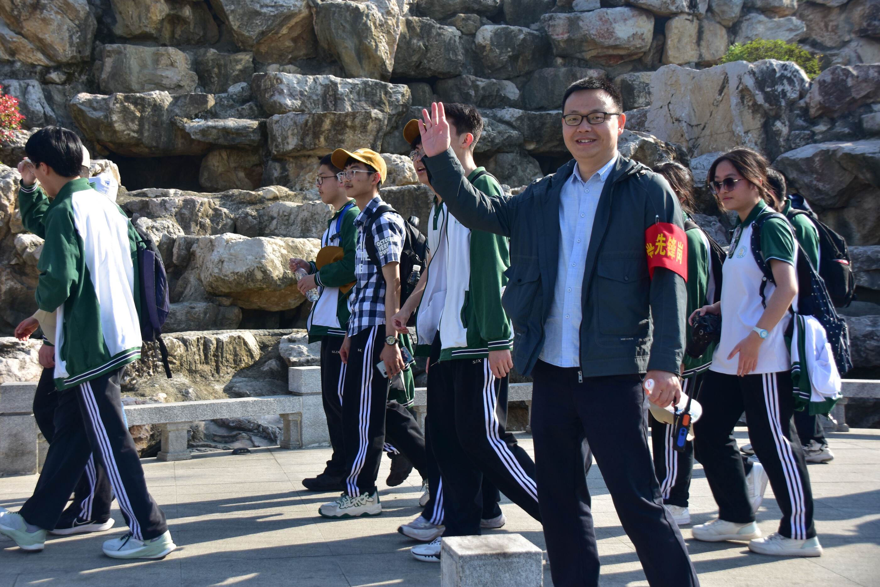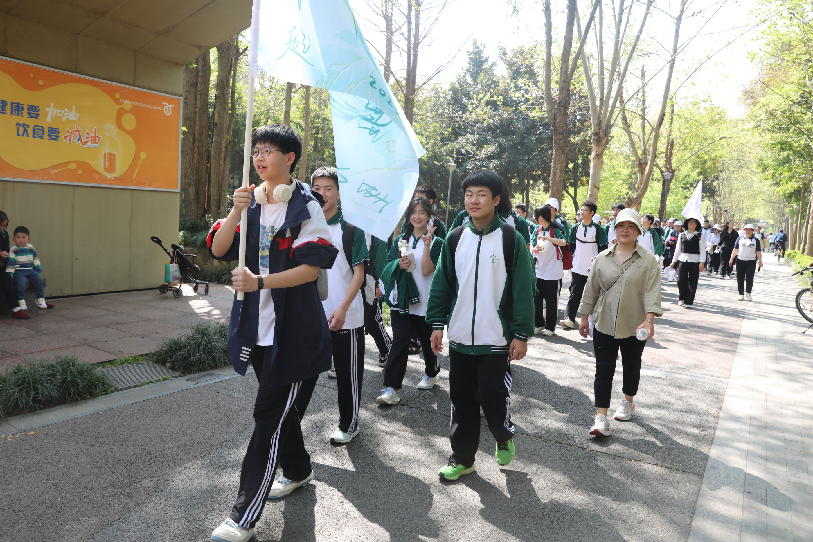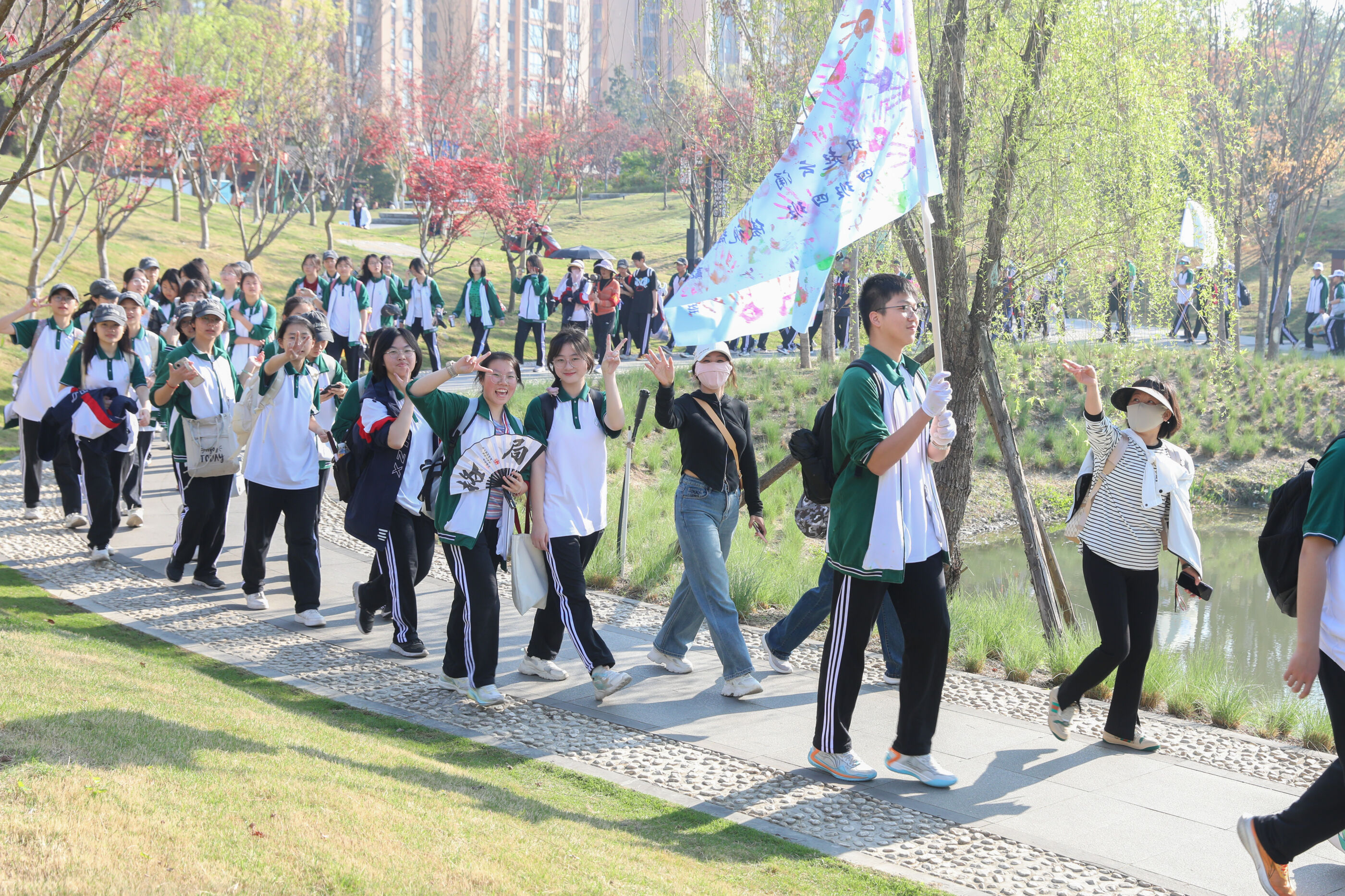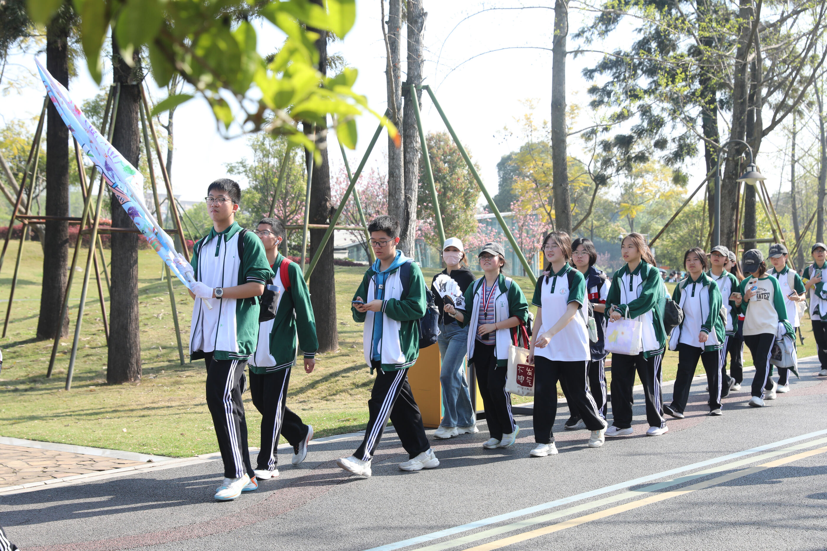 在黃超書記帶領(lǐng)下,兩個(gè)年級(jí)的老師和學(xué)生一起出發(fā)