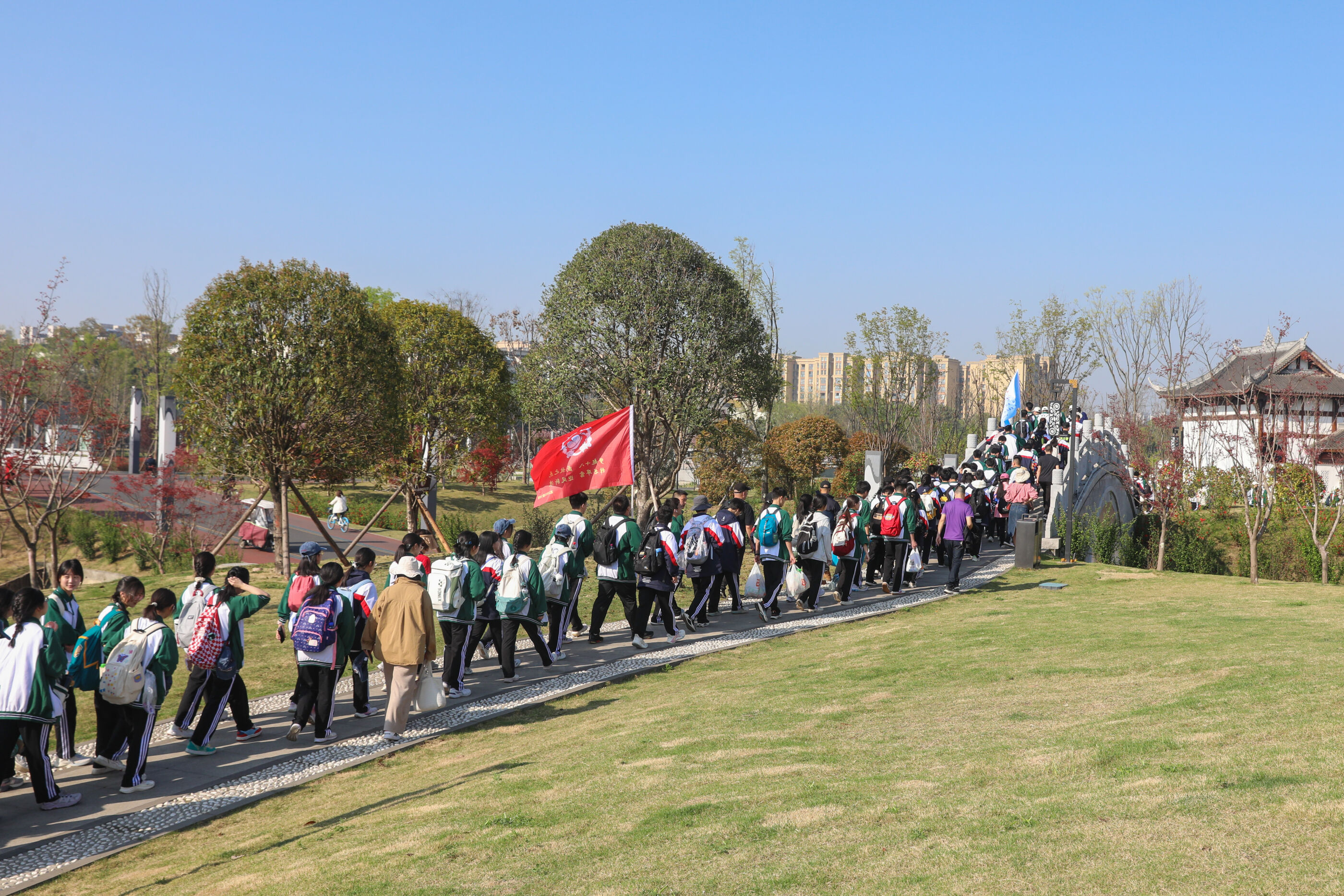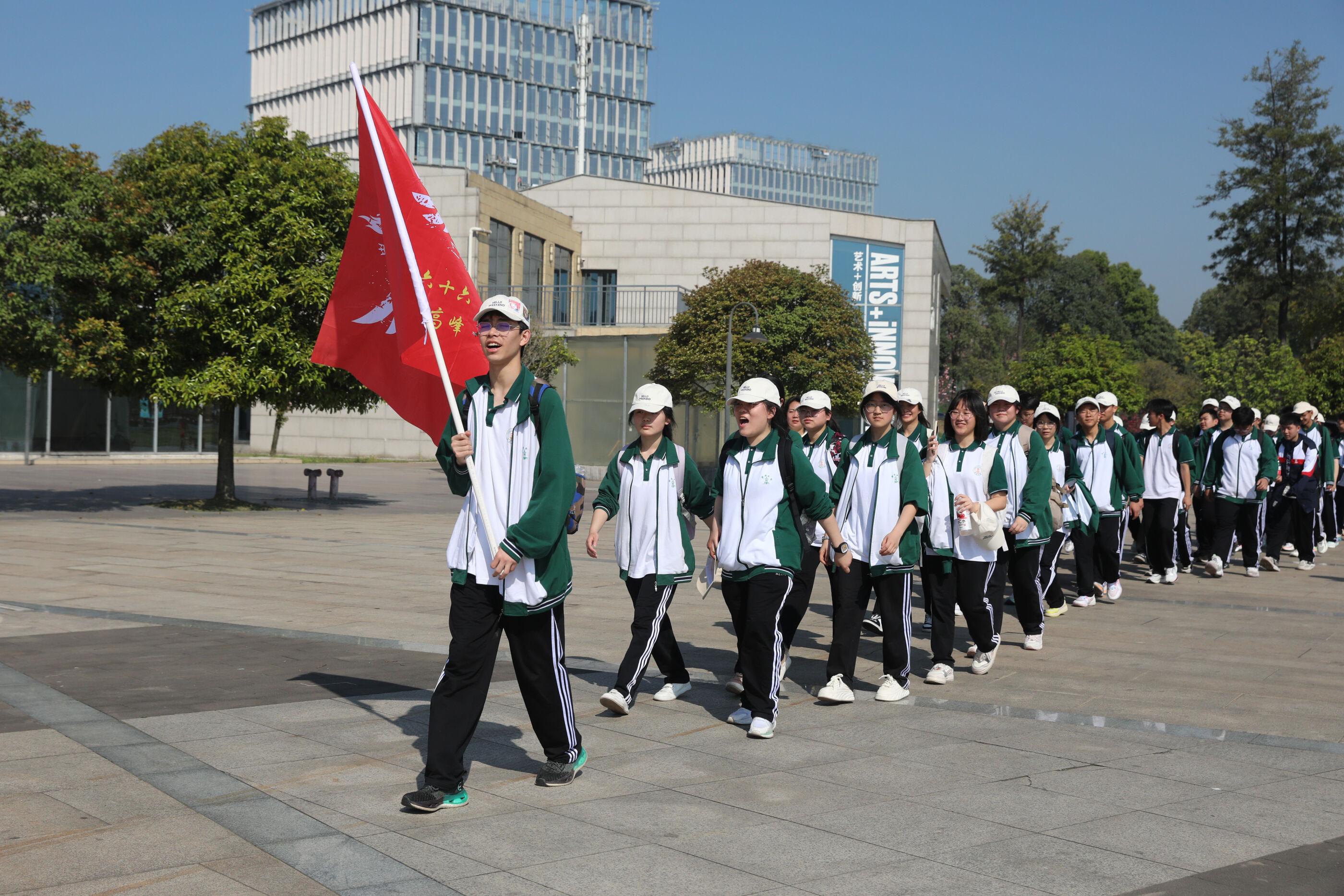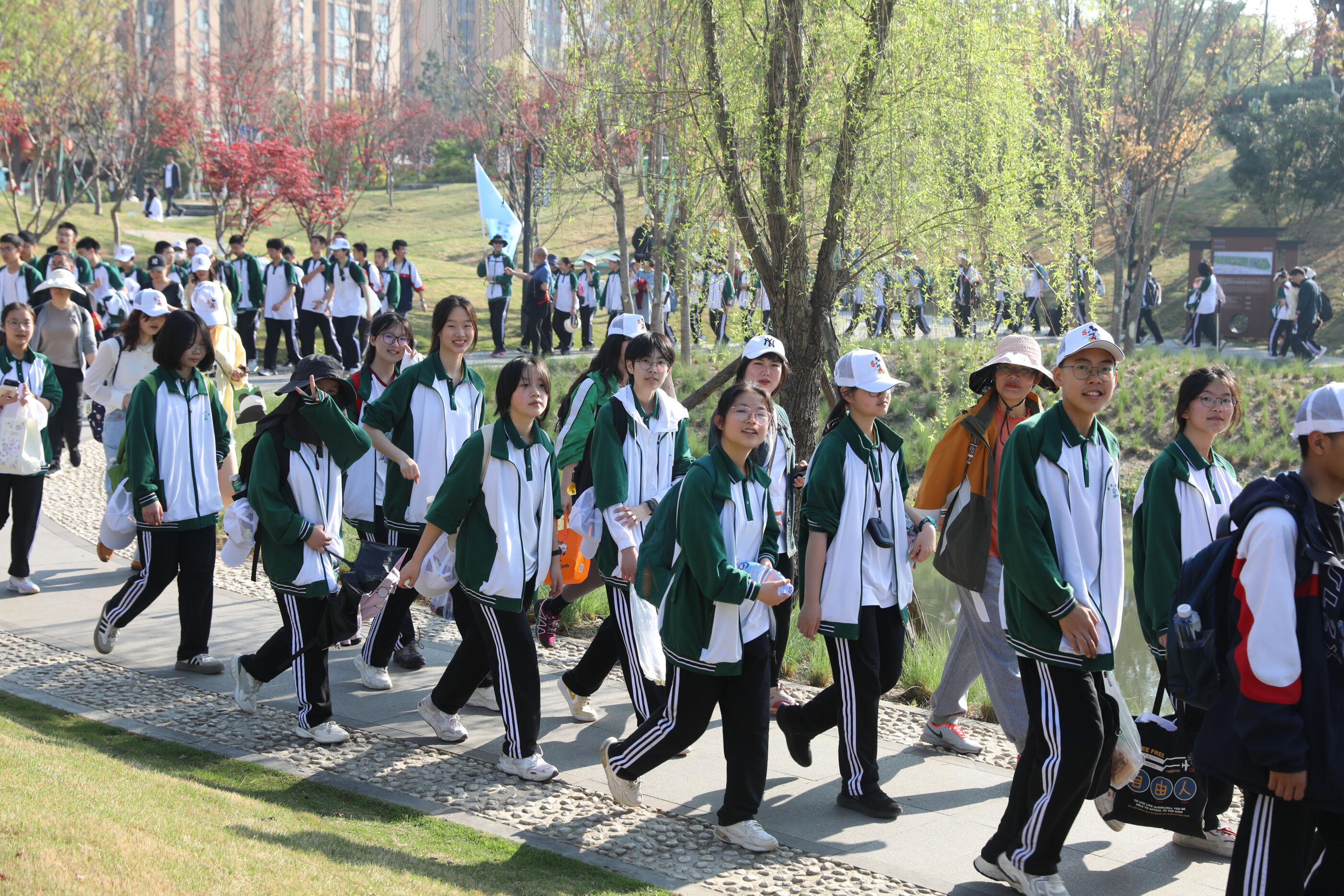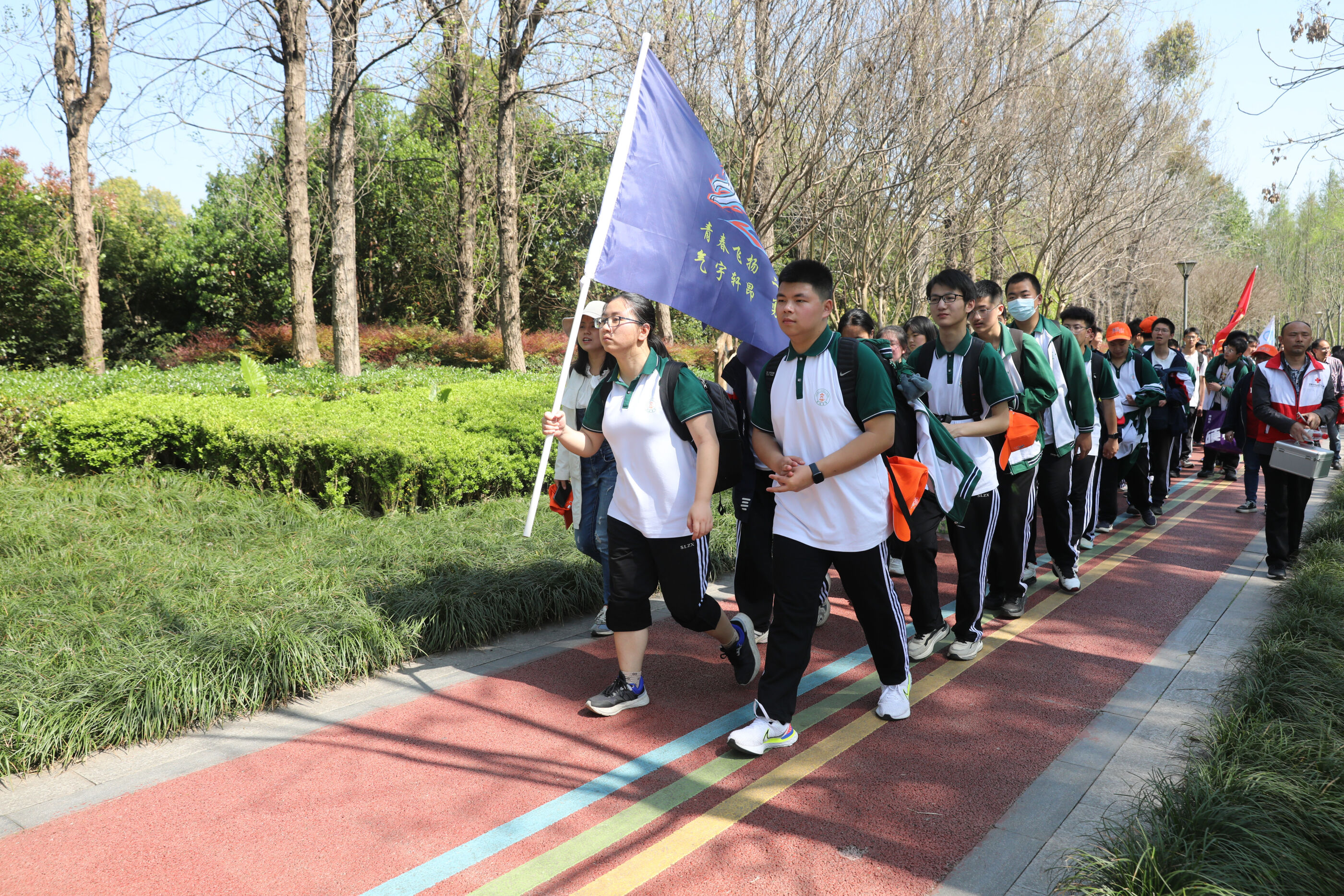 在黃超書記帶領(lǐng)下,兩個(gè)年級(jí)的老師和學(xué)生一起出發(fā)