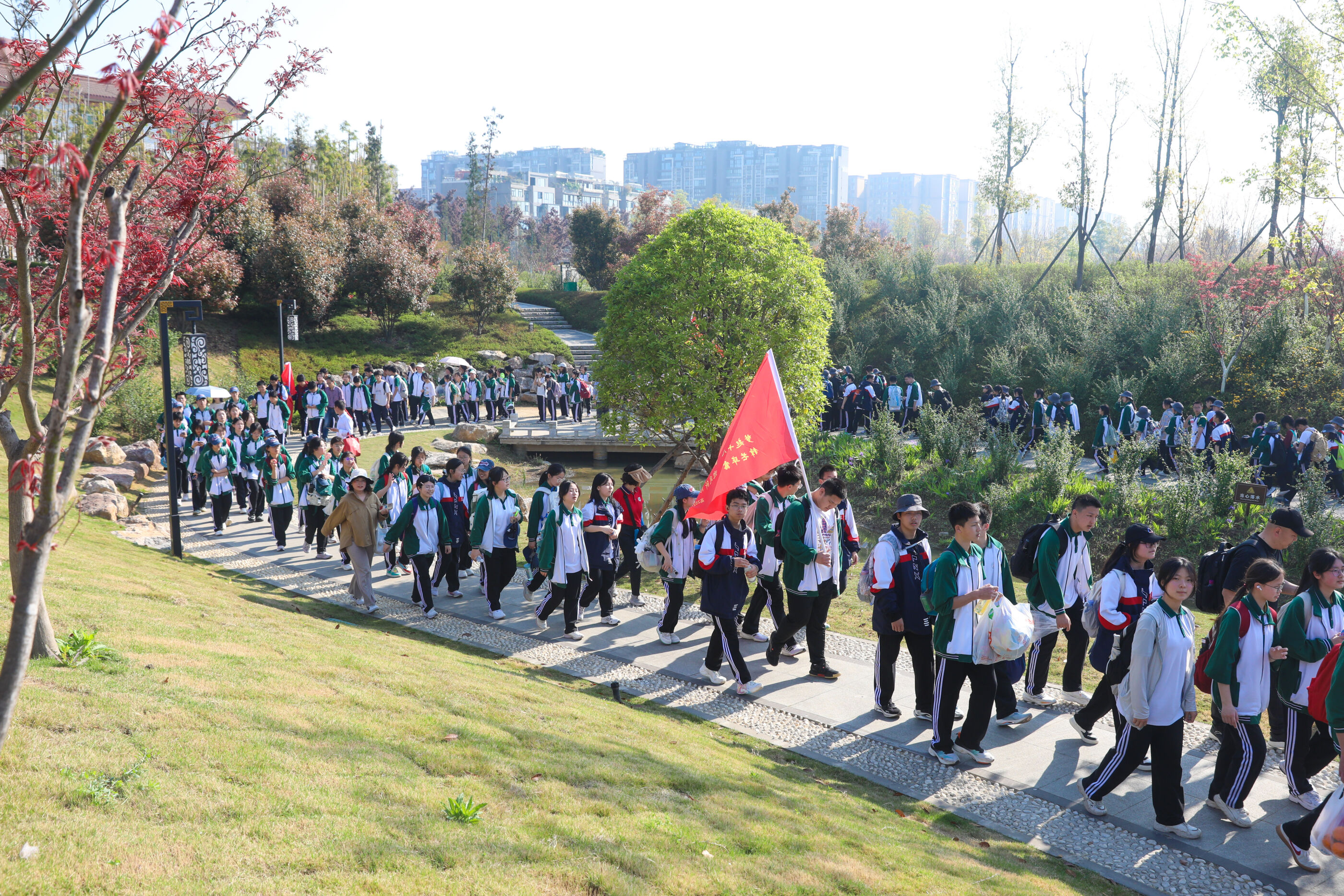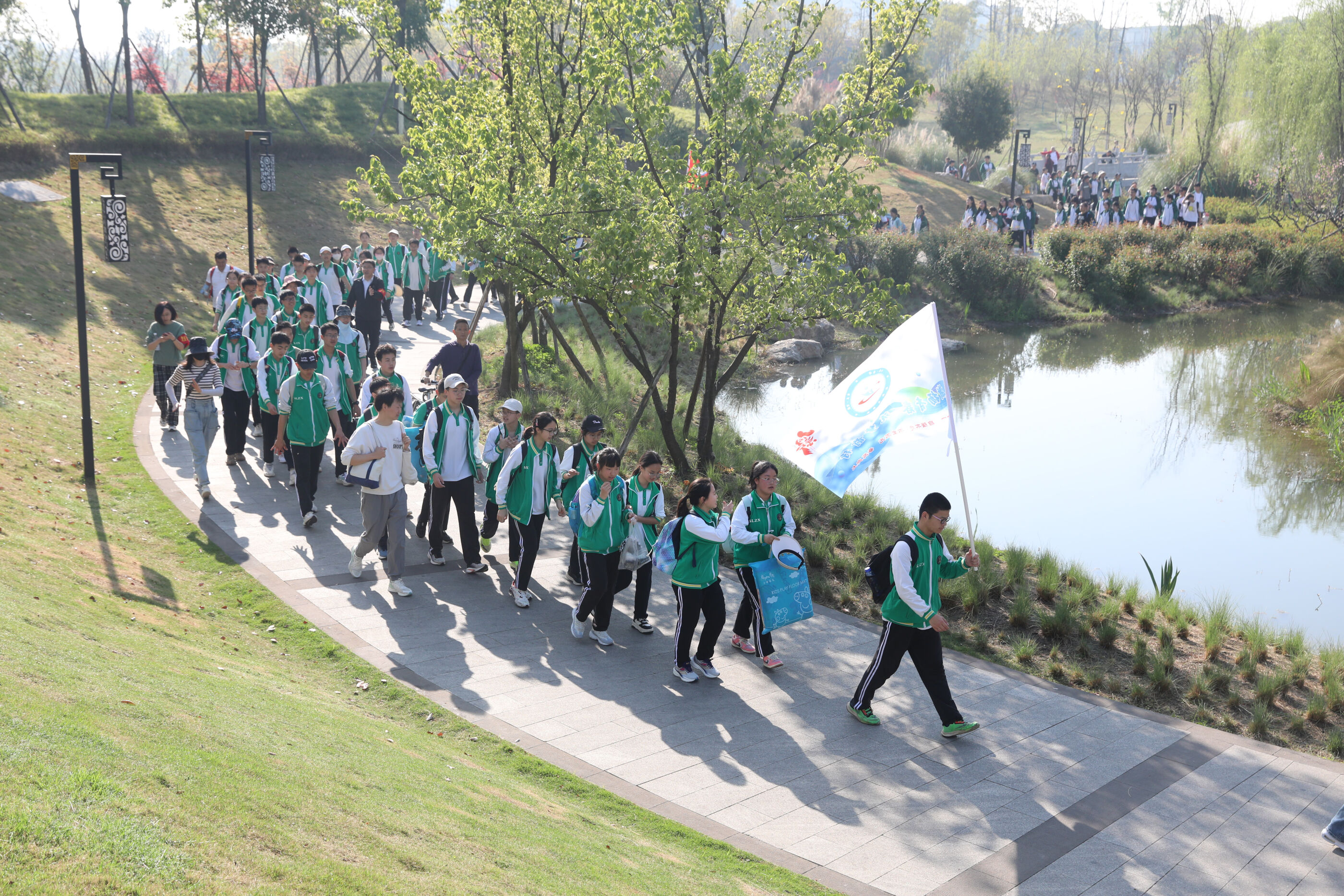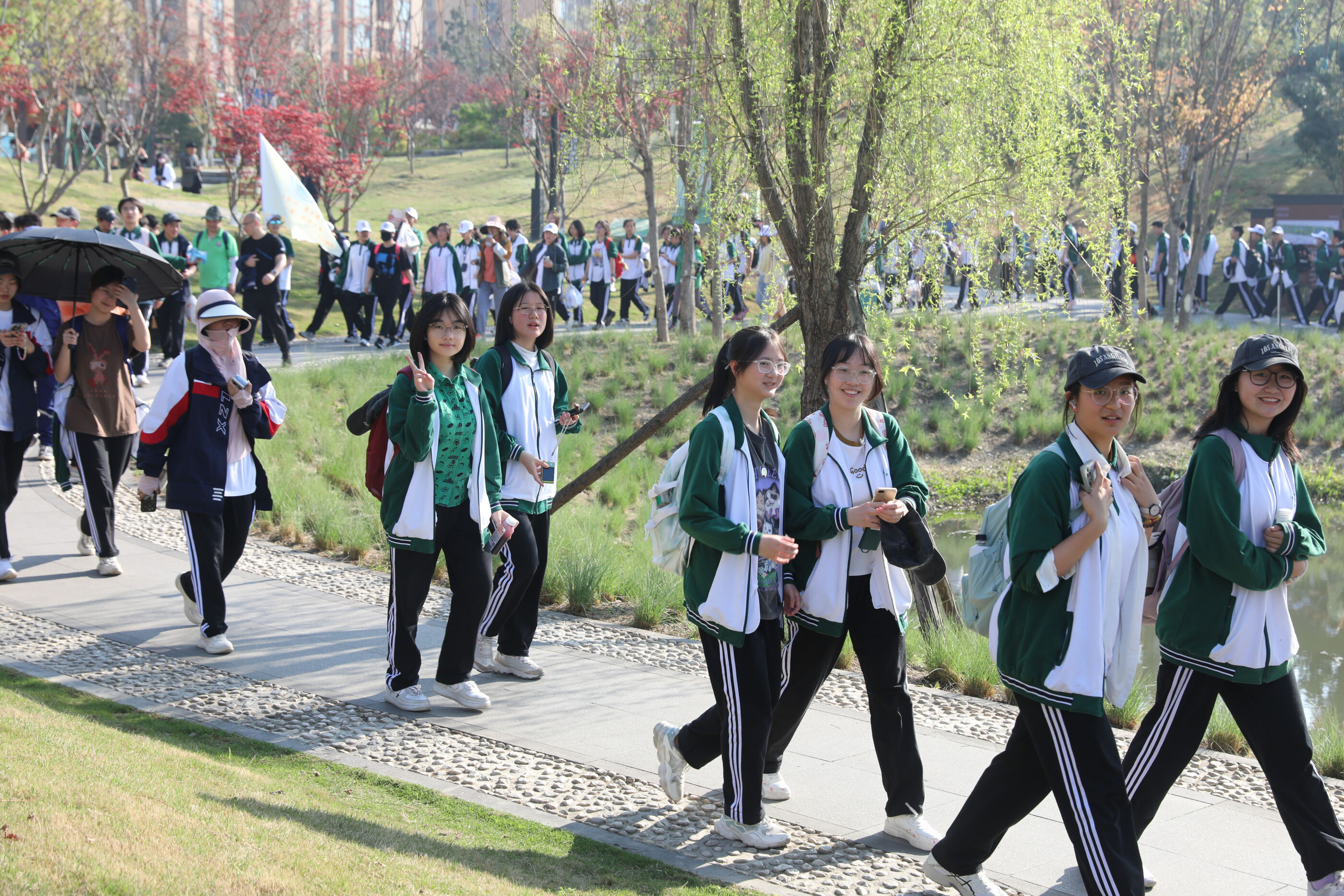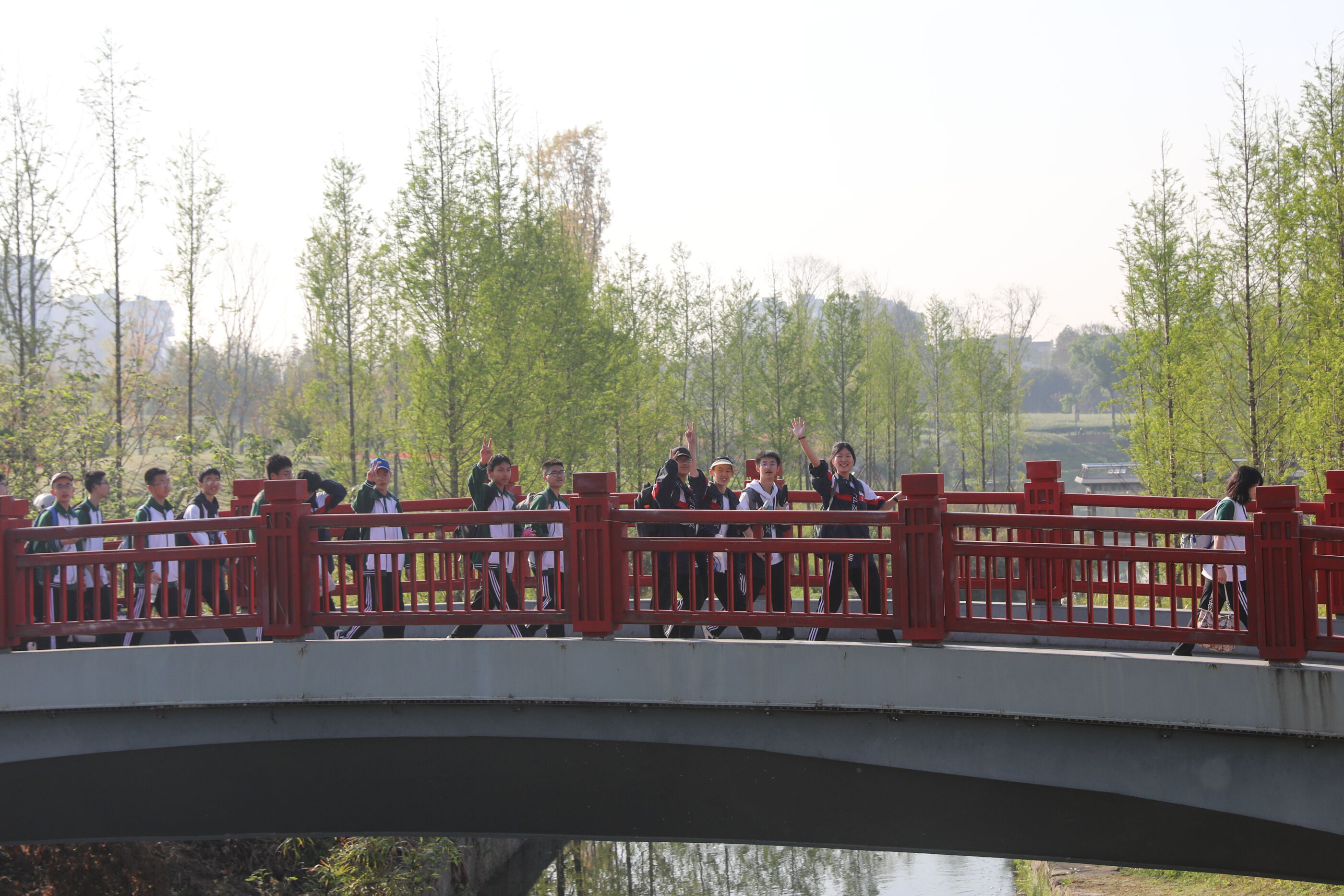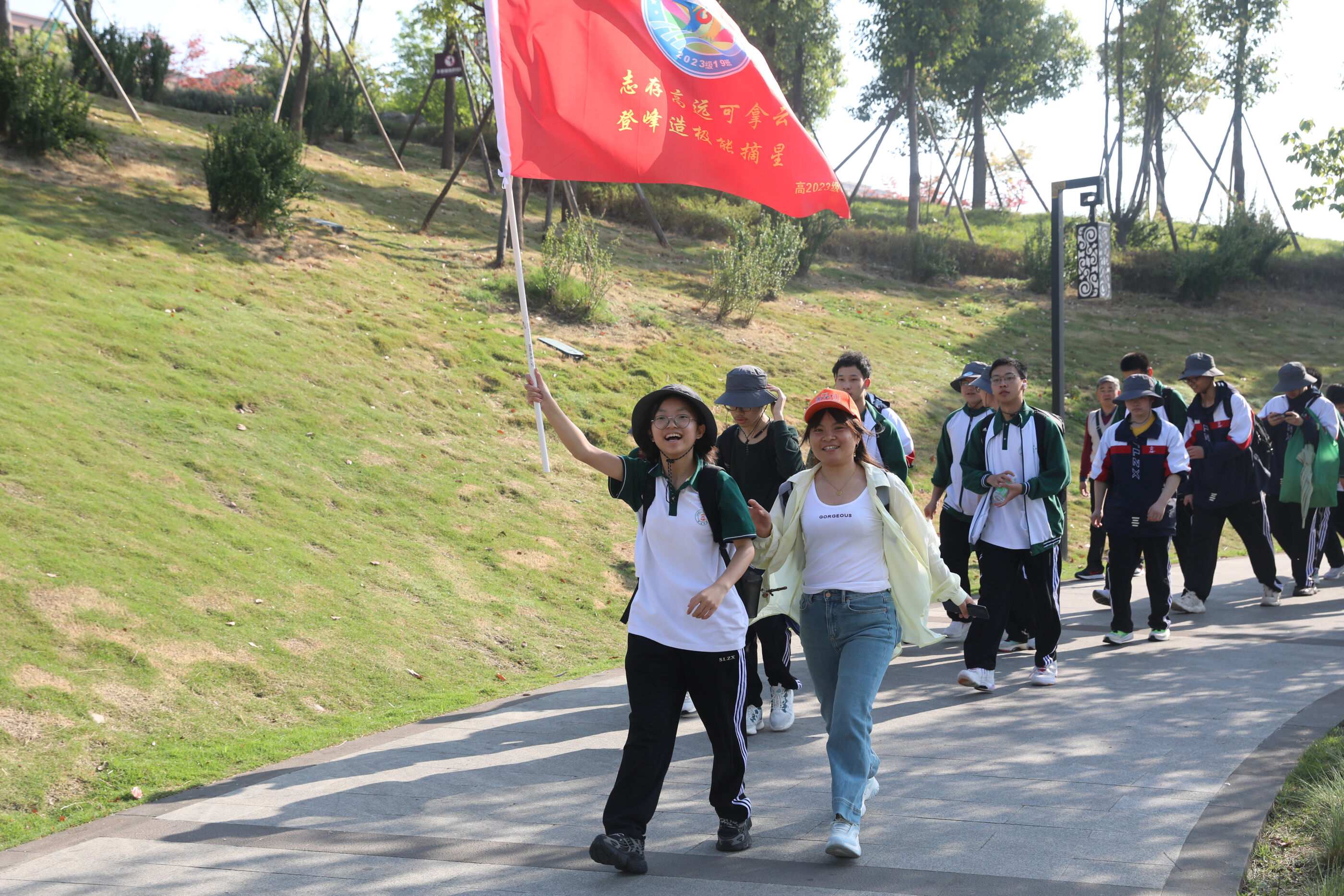 在黃超書記帶領(lǐng)下,兩個(gè)年級(jí)的老師和學(xué)生一起出發(fā)