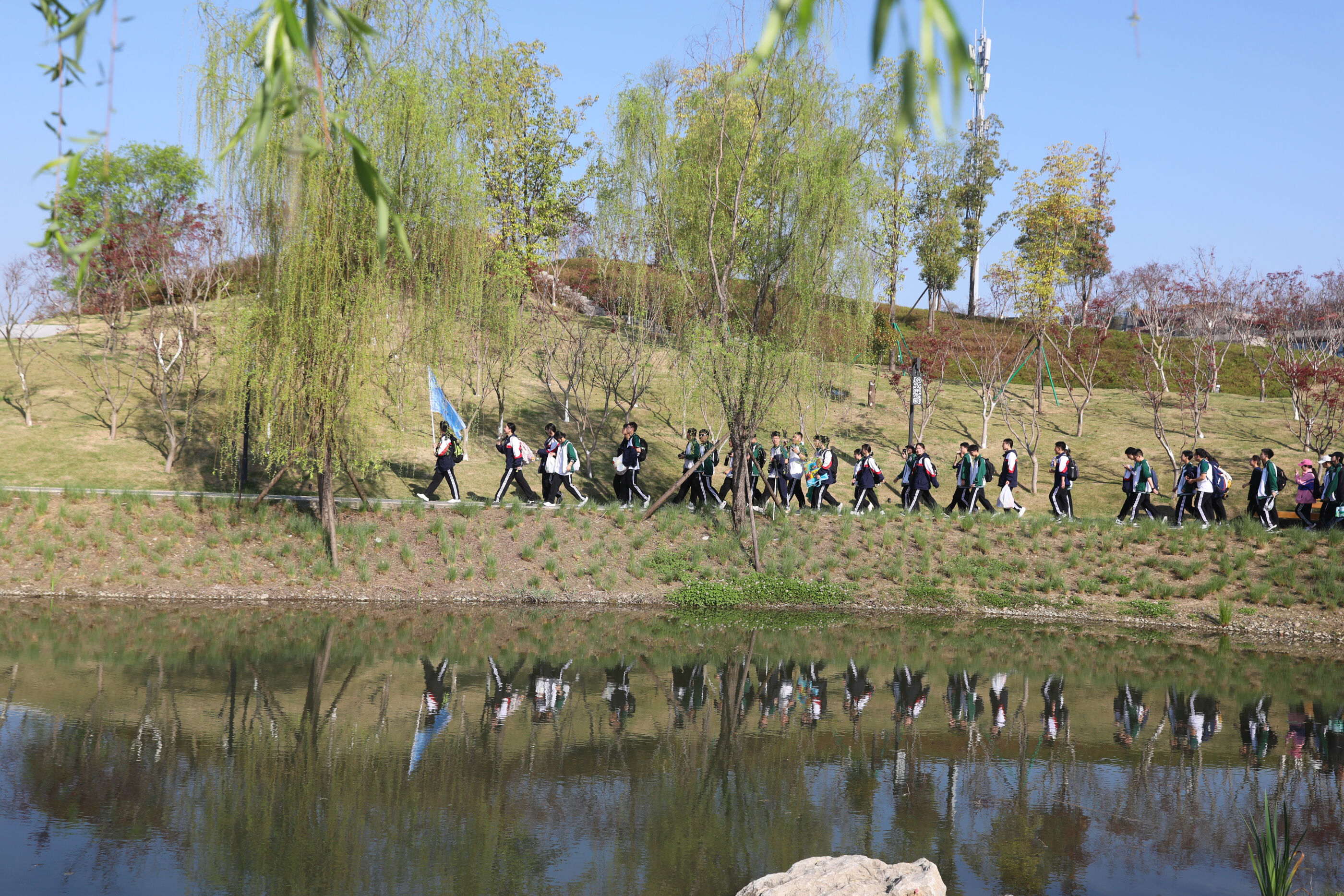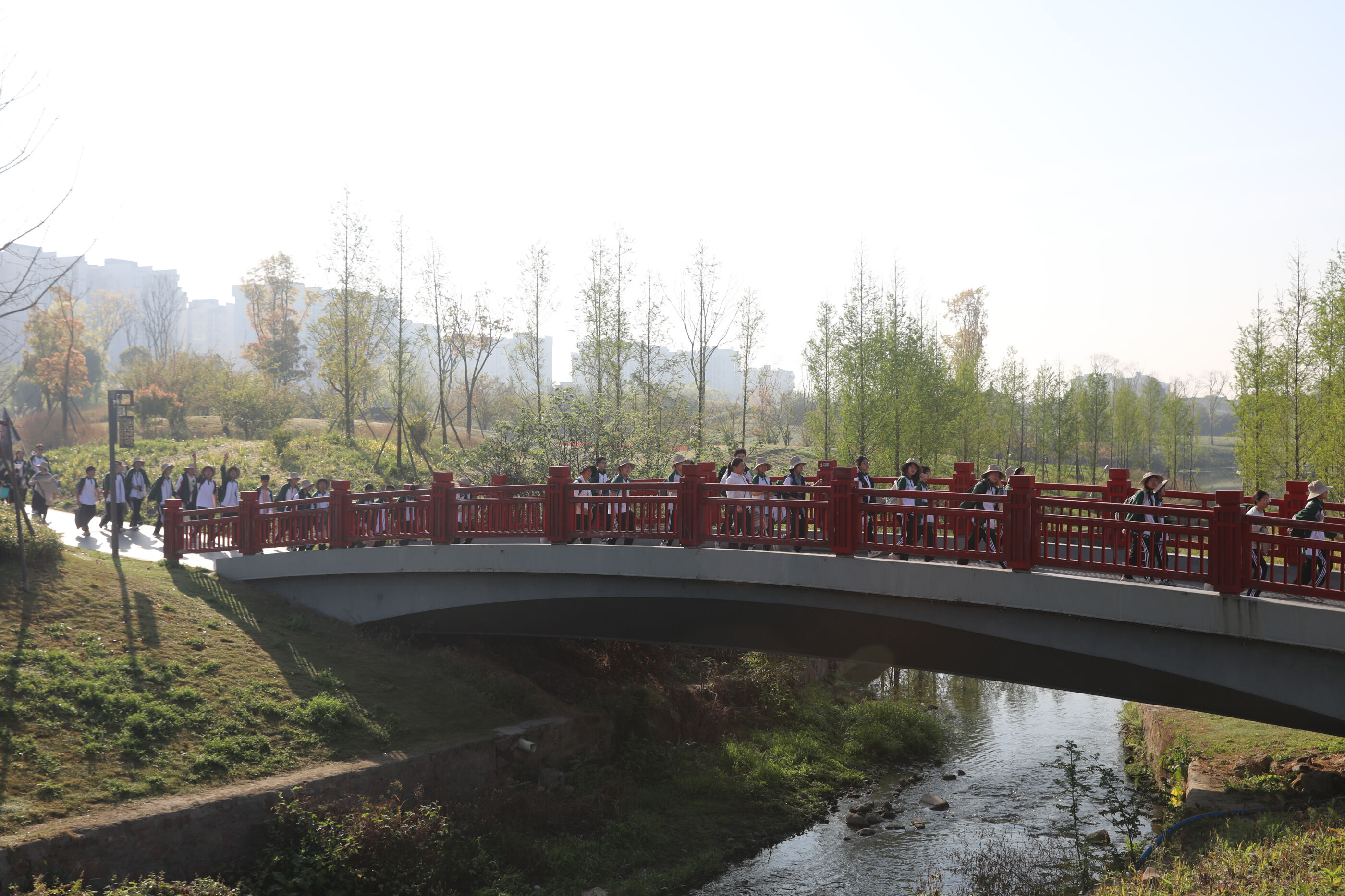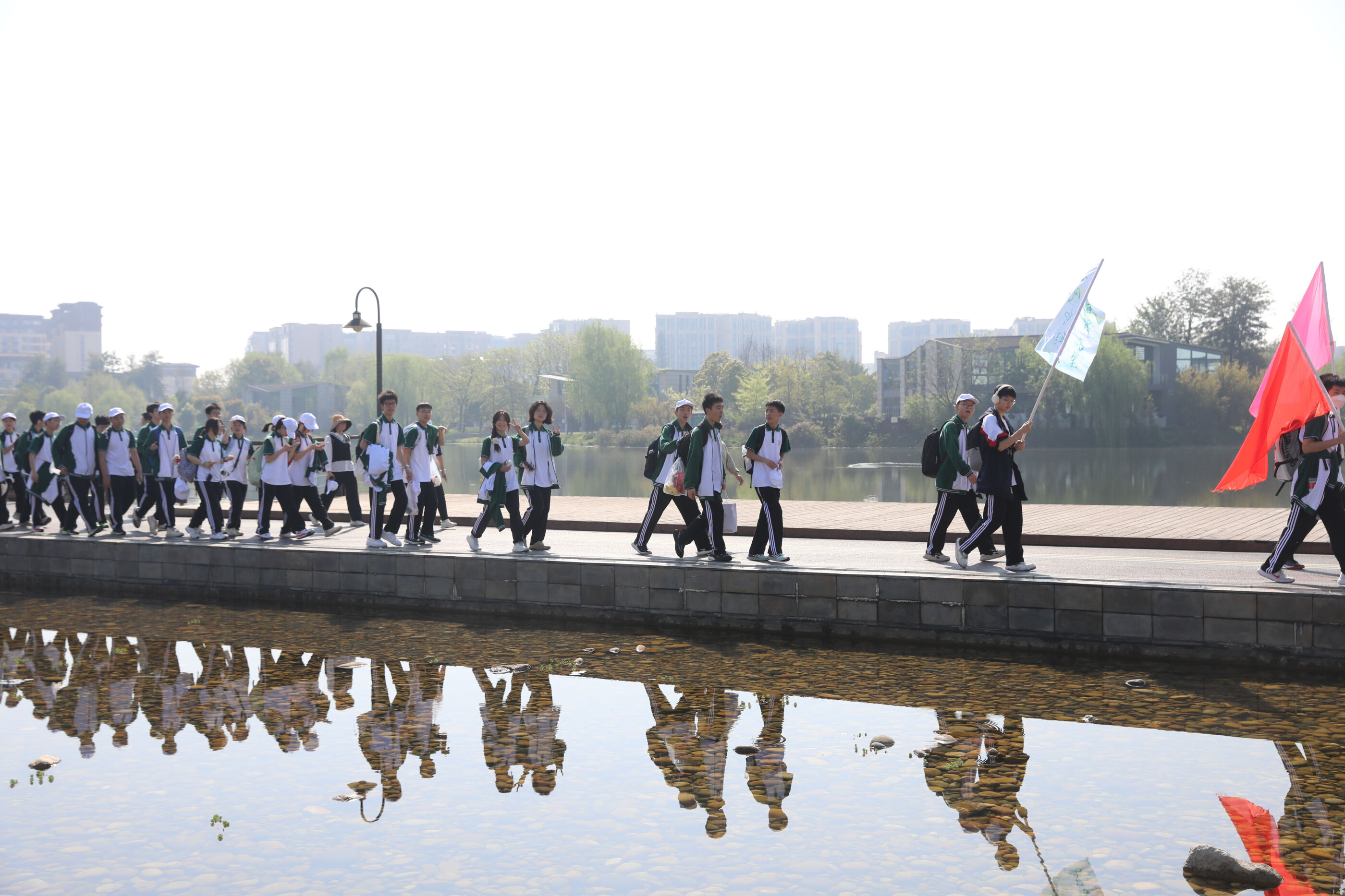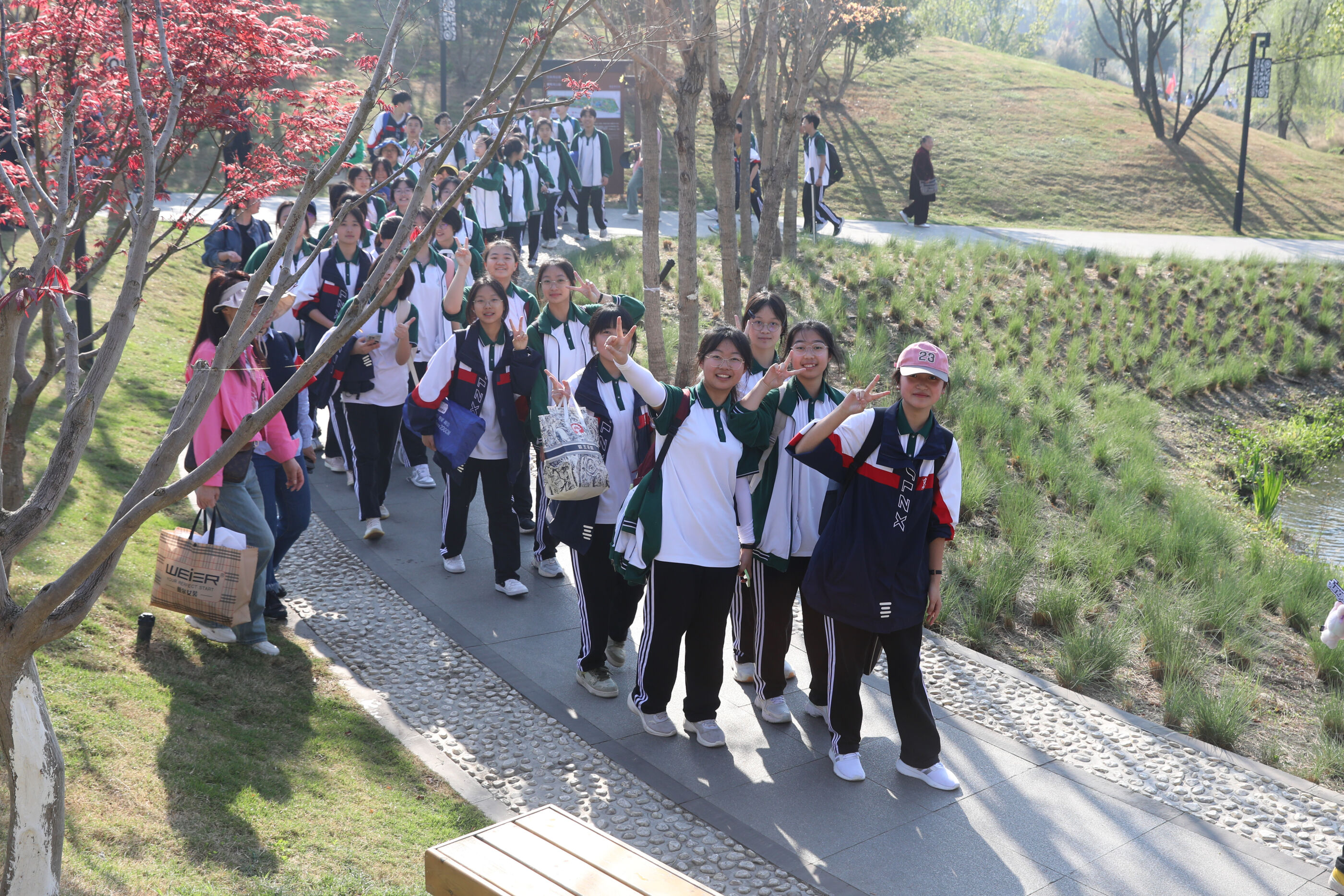 在黃超書記帶領(lǐng)下,兩個(gè)年級(jí)的老師和學(xué)生一起出發(fā)