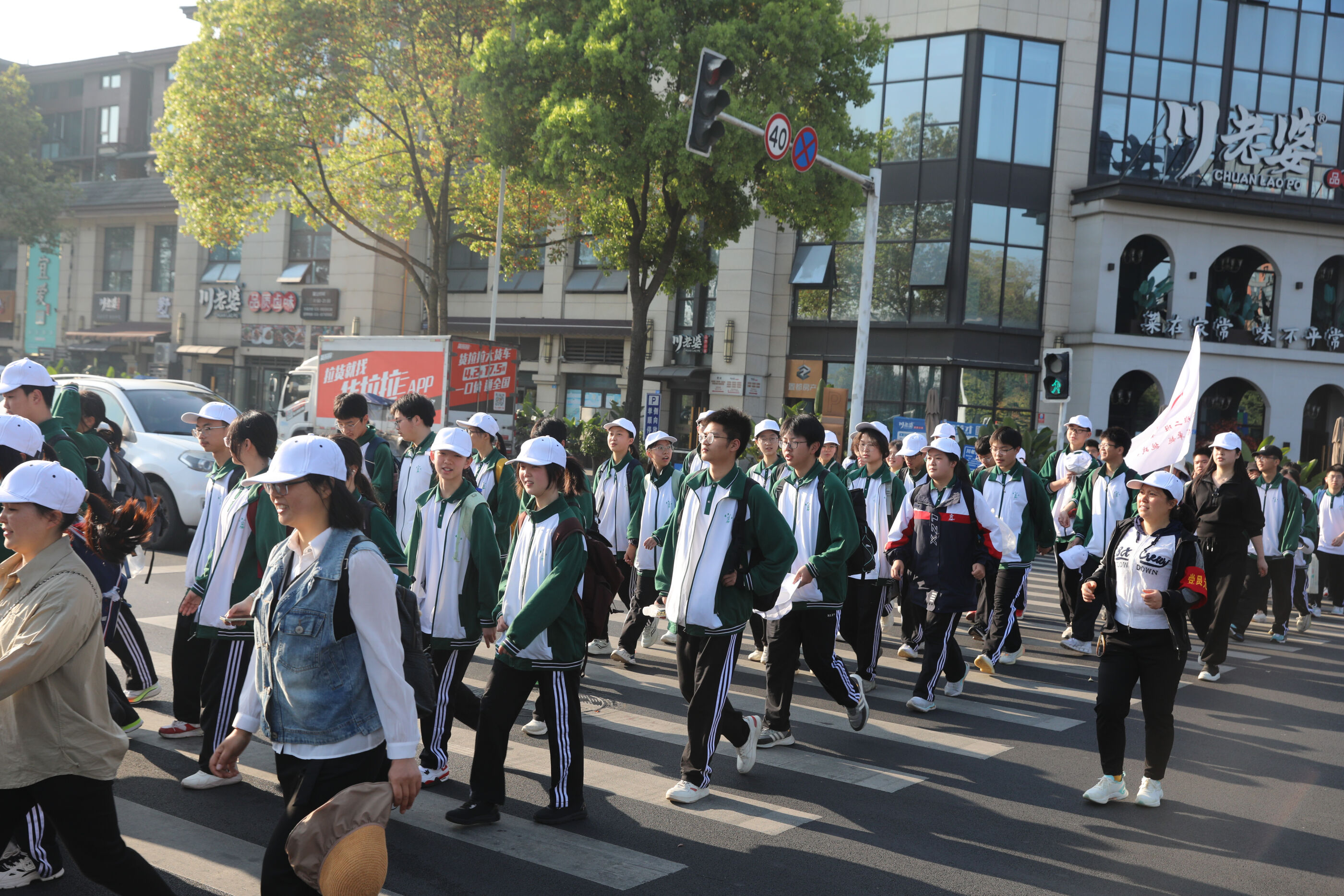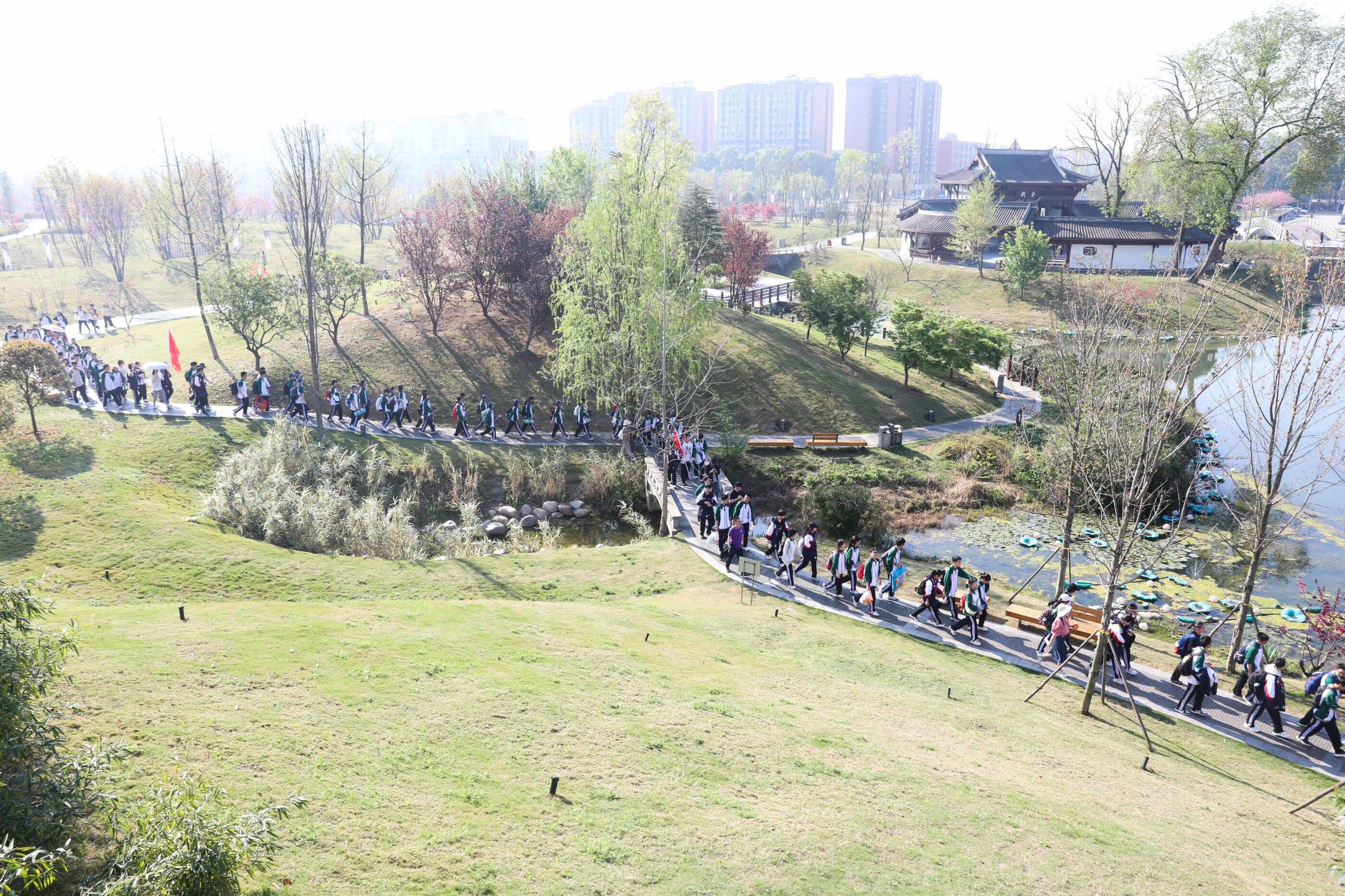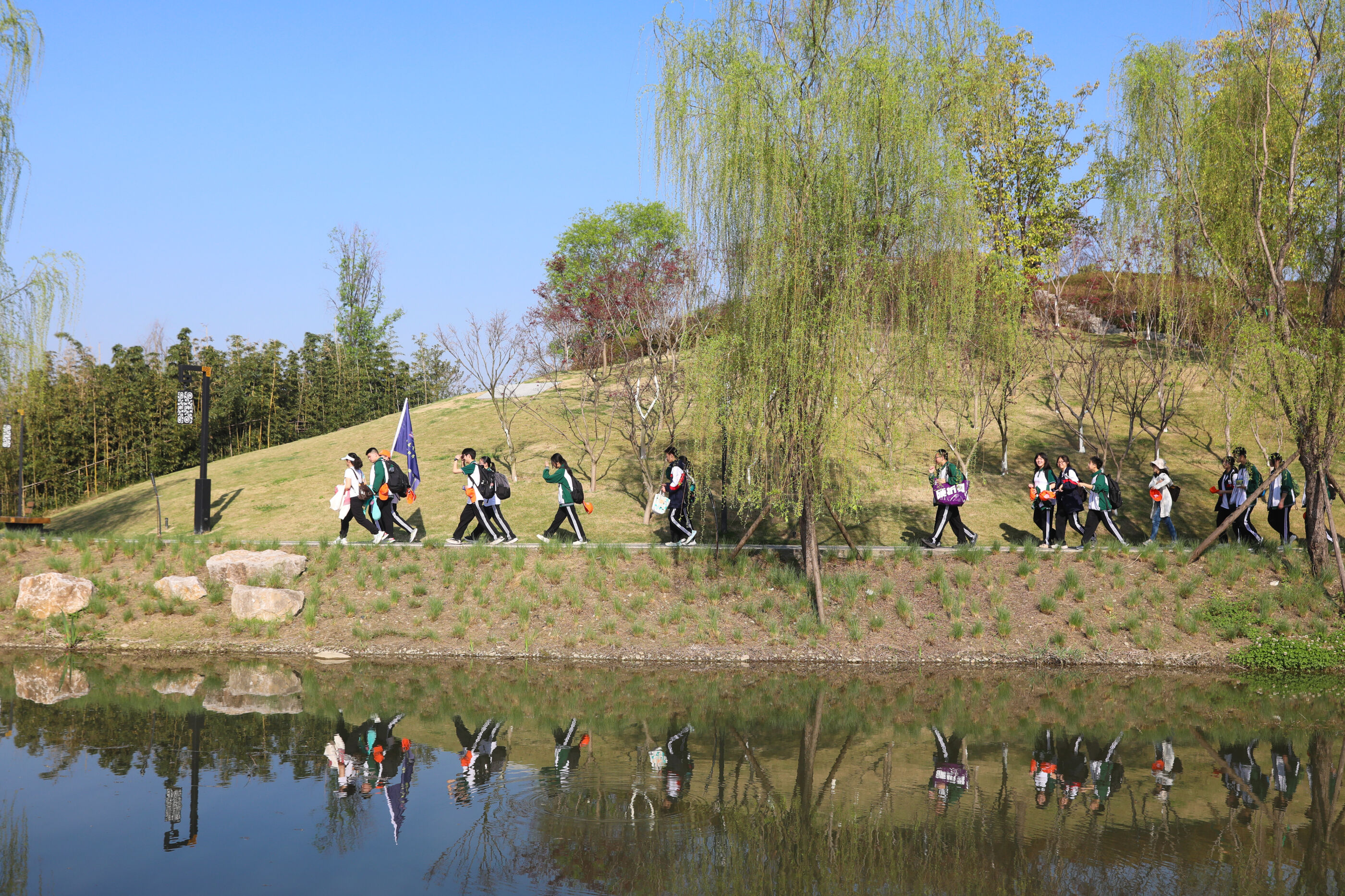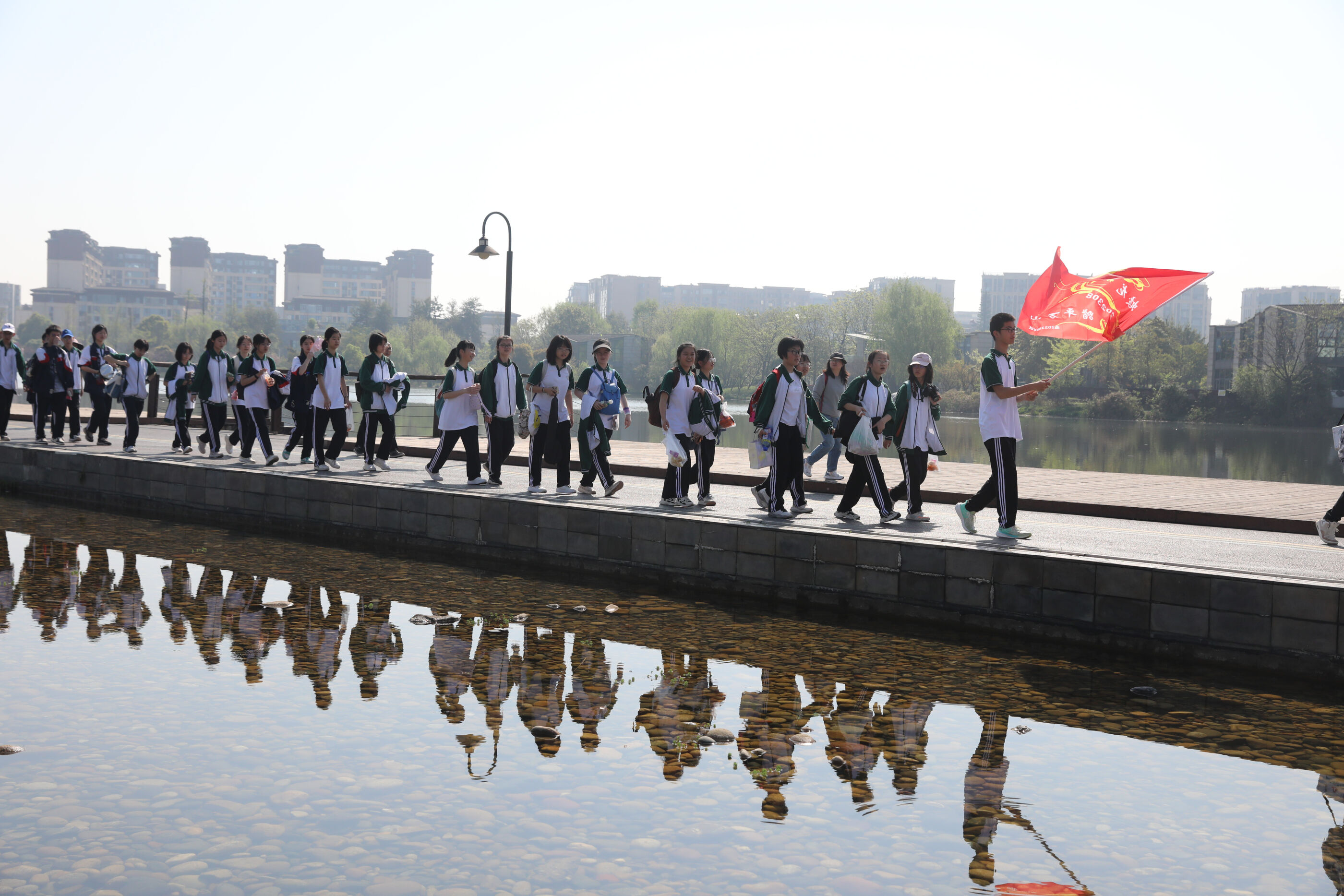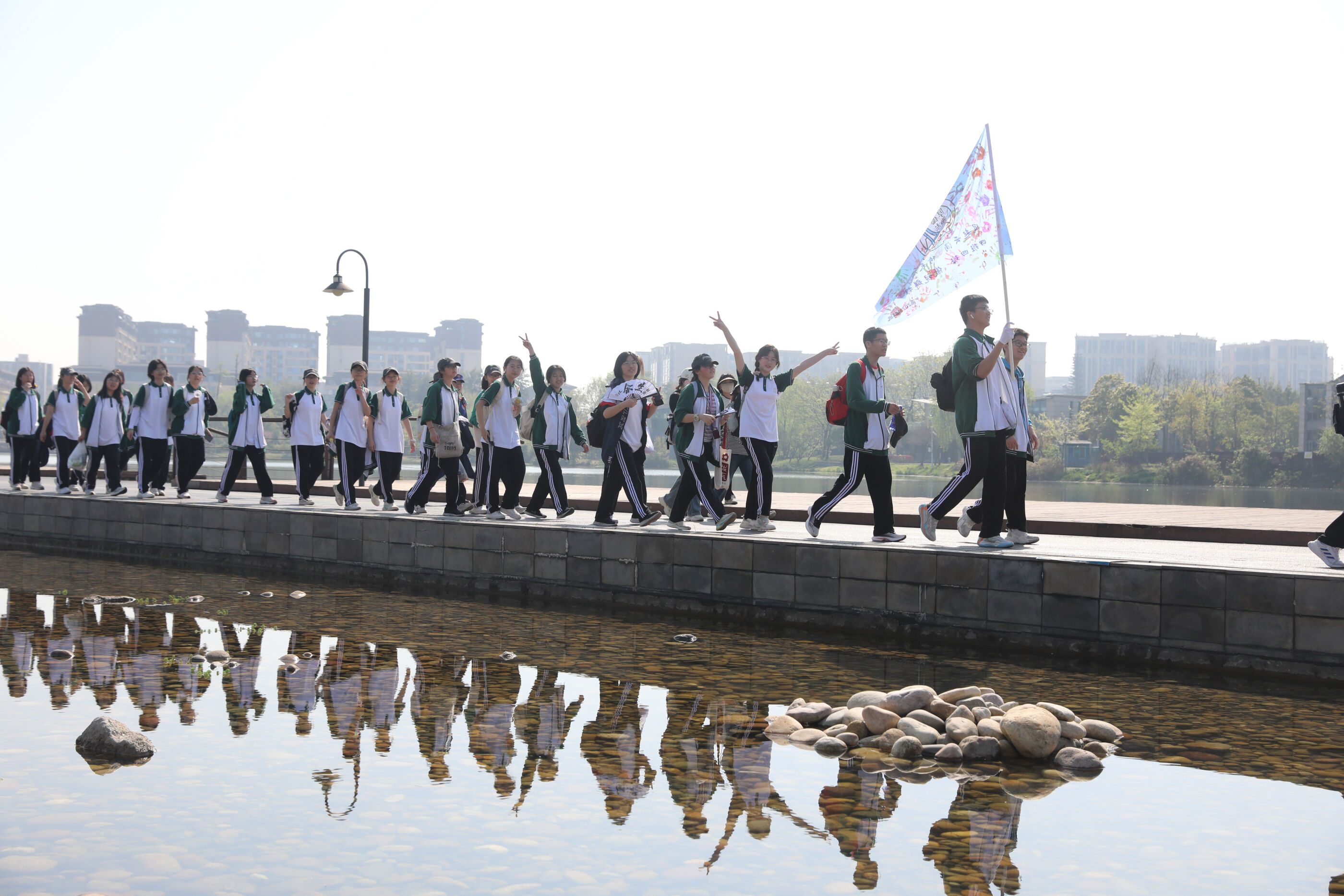 在黃超書記帶領(lǐng)下,兩個(gè)年級(jí)的老師和學(xué)生一起出發(fā)