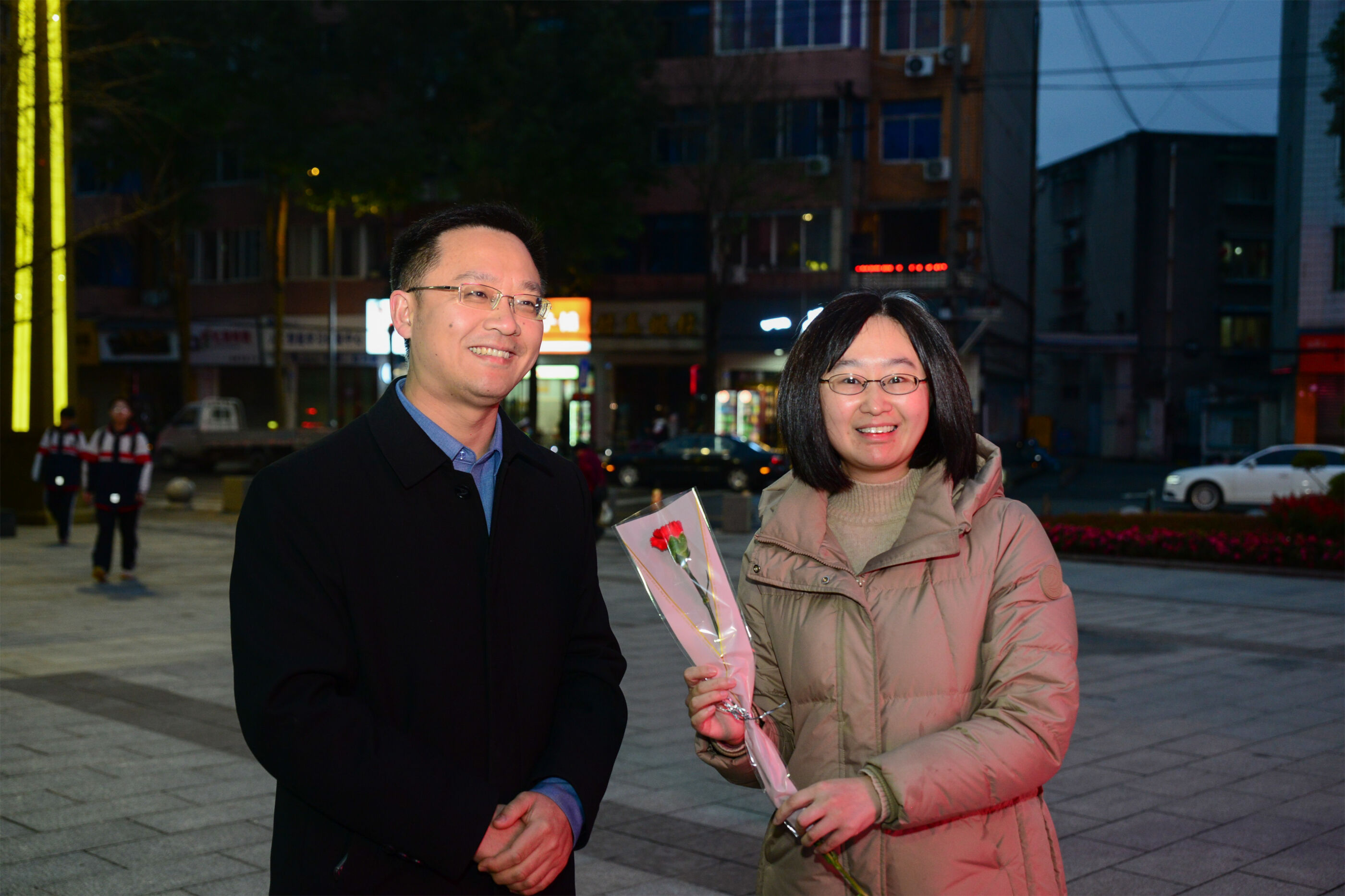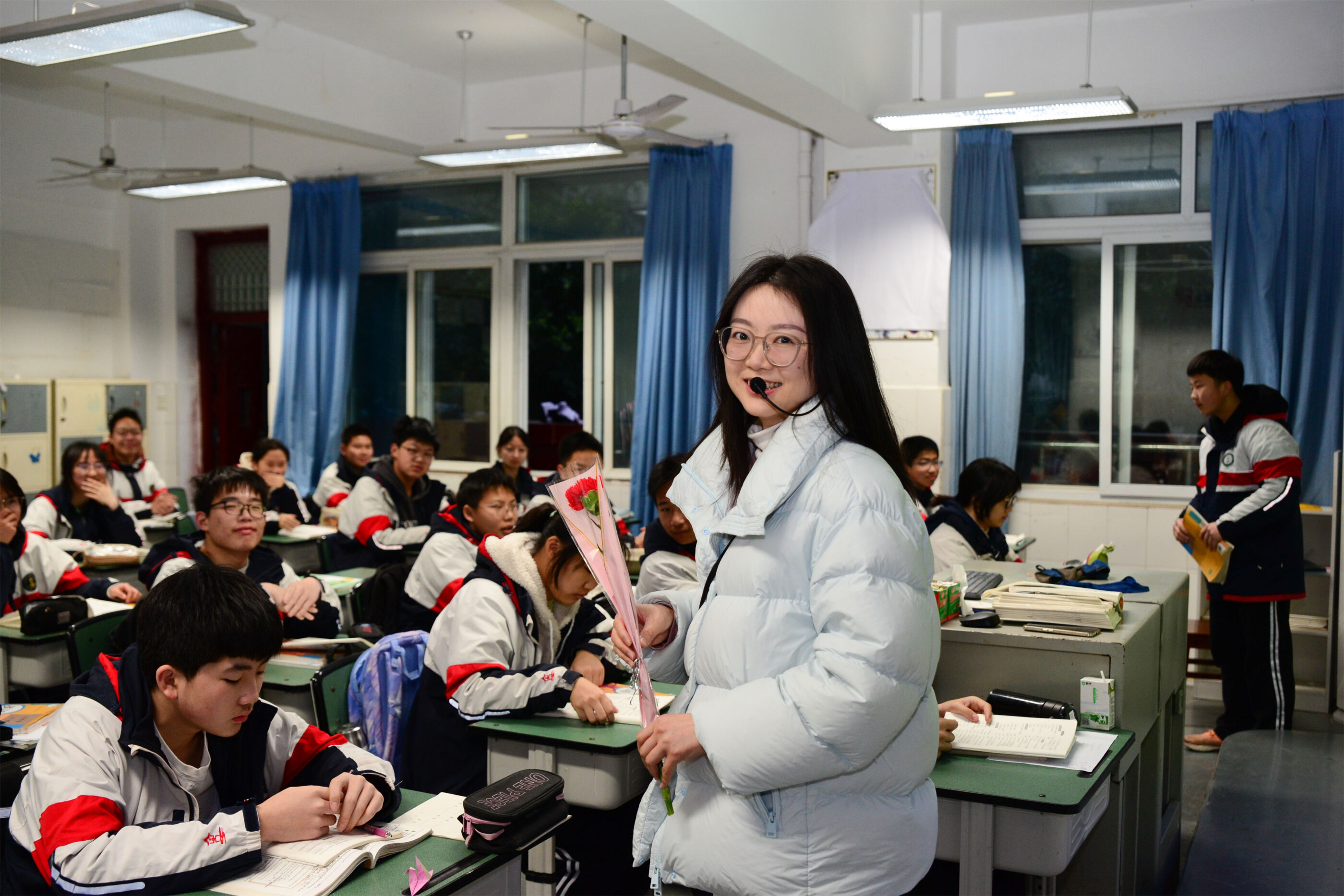 雙流中學副校長杜江濤為女教師送花
