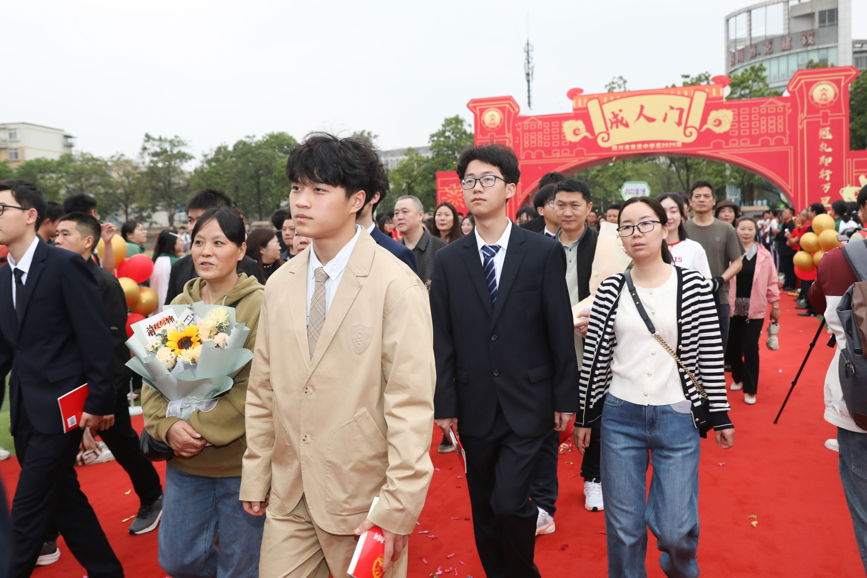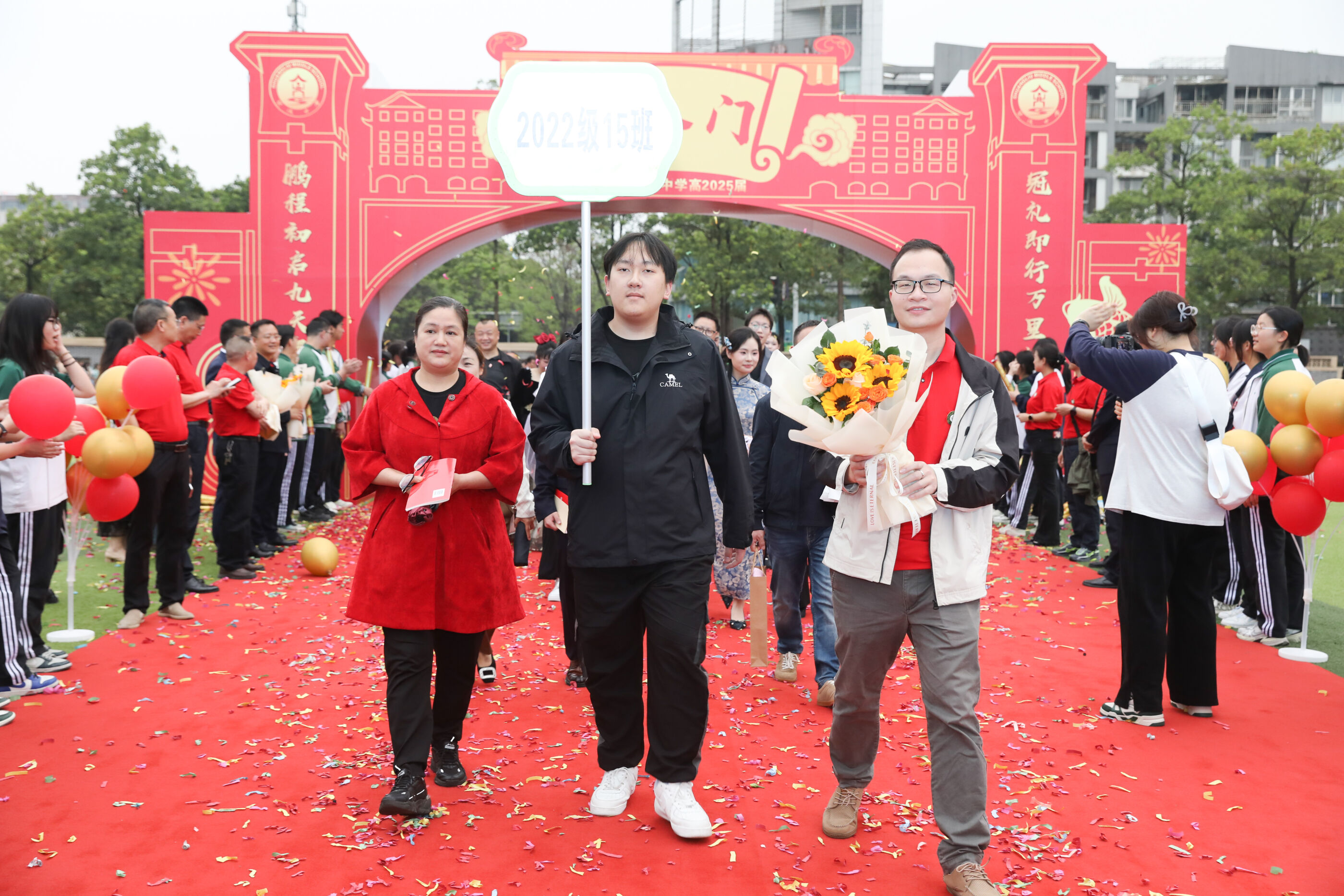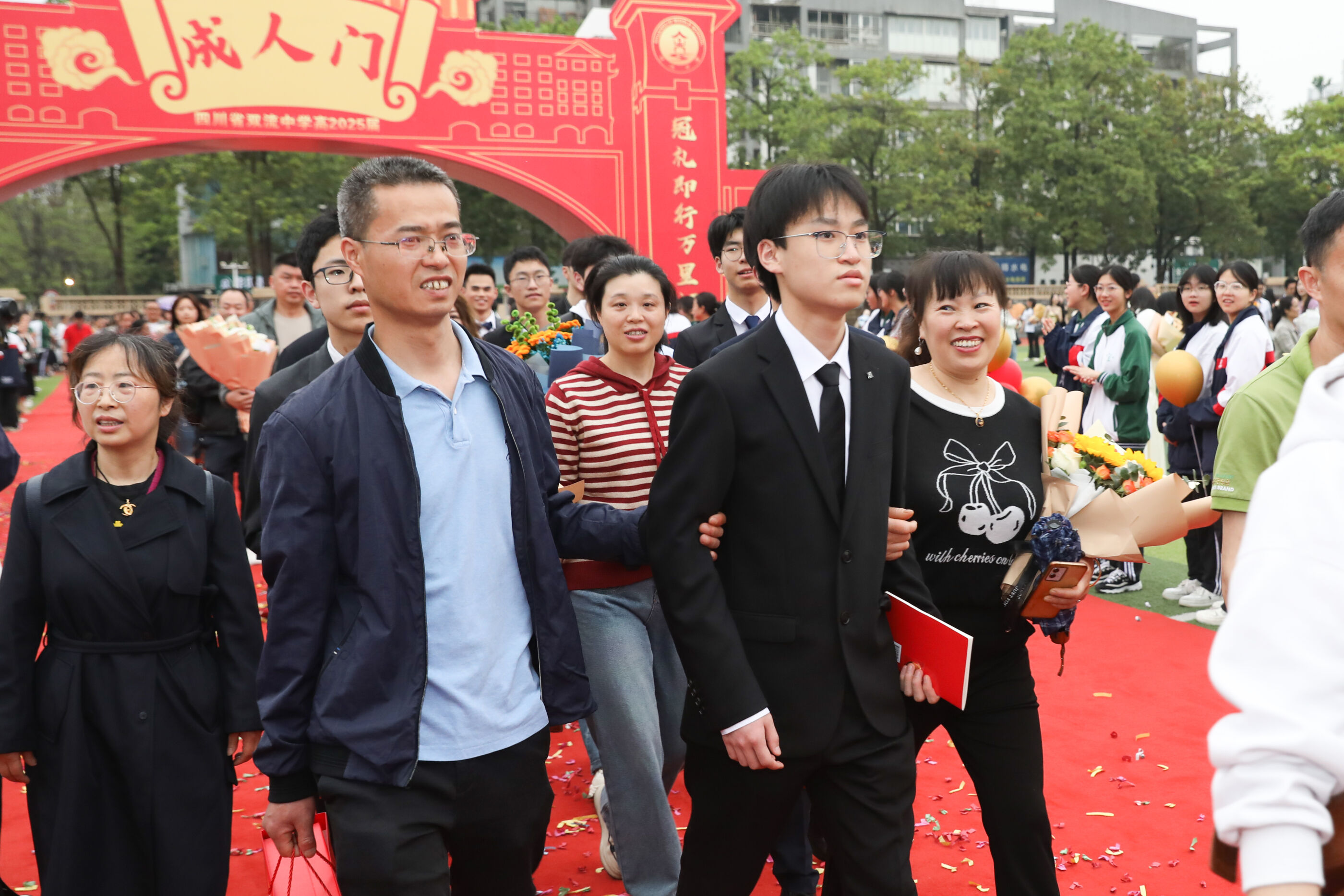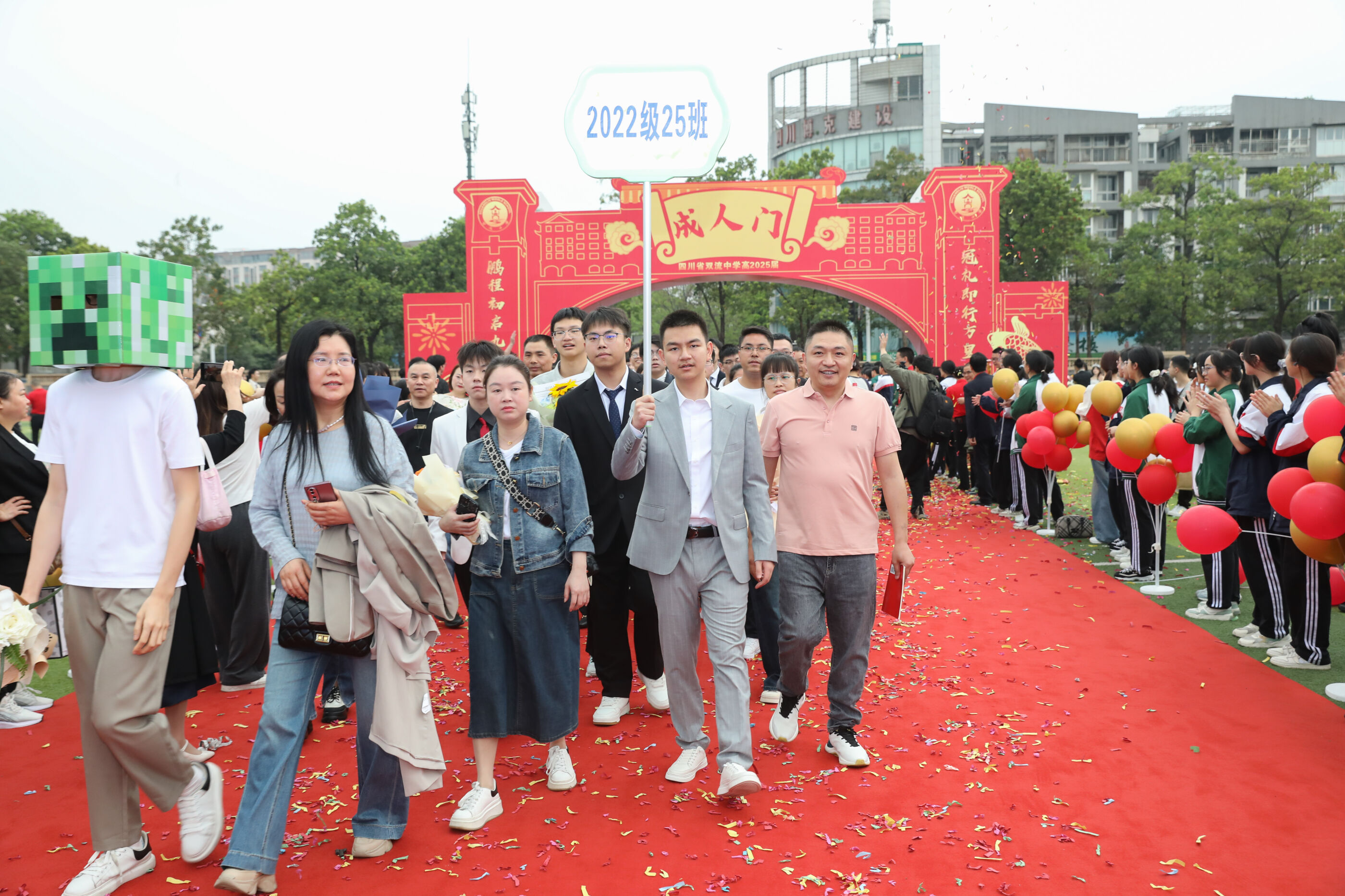 高三25班的學(xué)生在家長(zhǎng)陪同下通過成人門