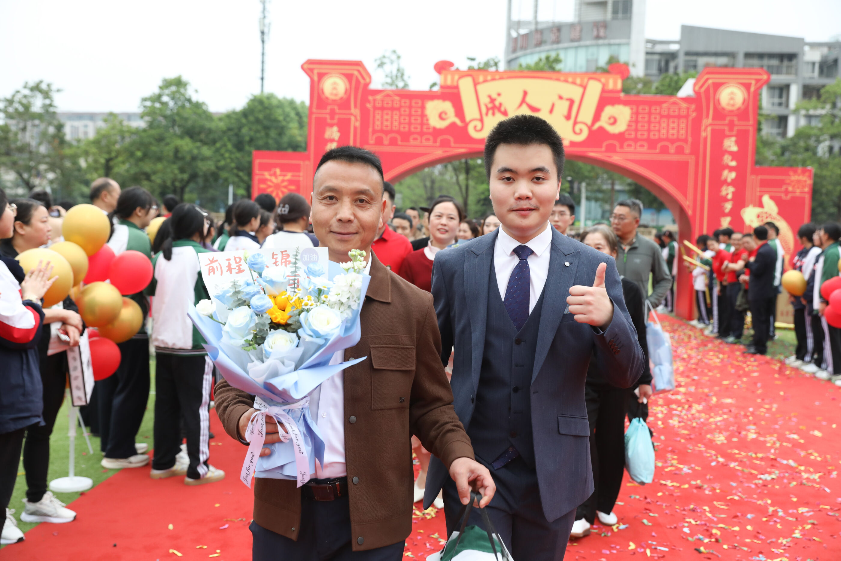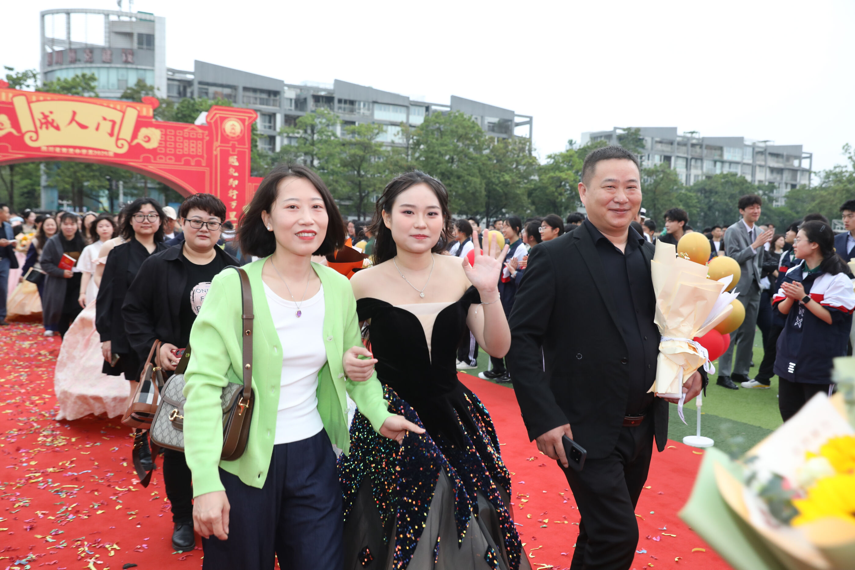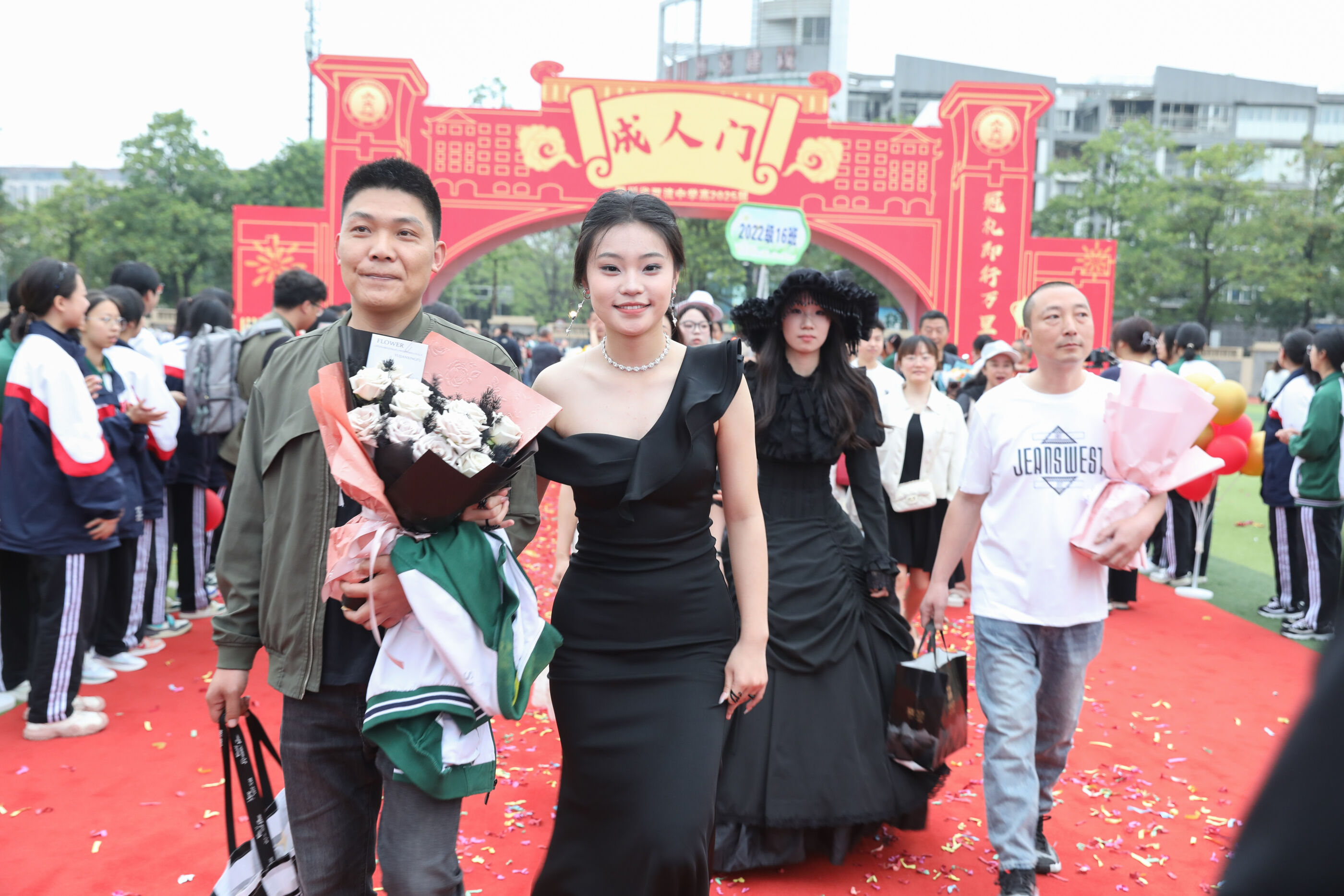 高三1班的學(xué)生在家長(zhǎng)陪同下通過成人門
