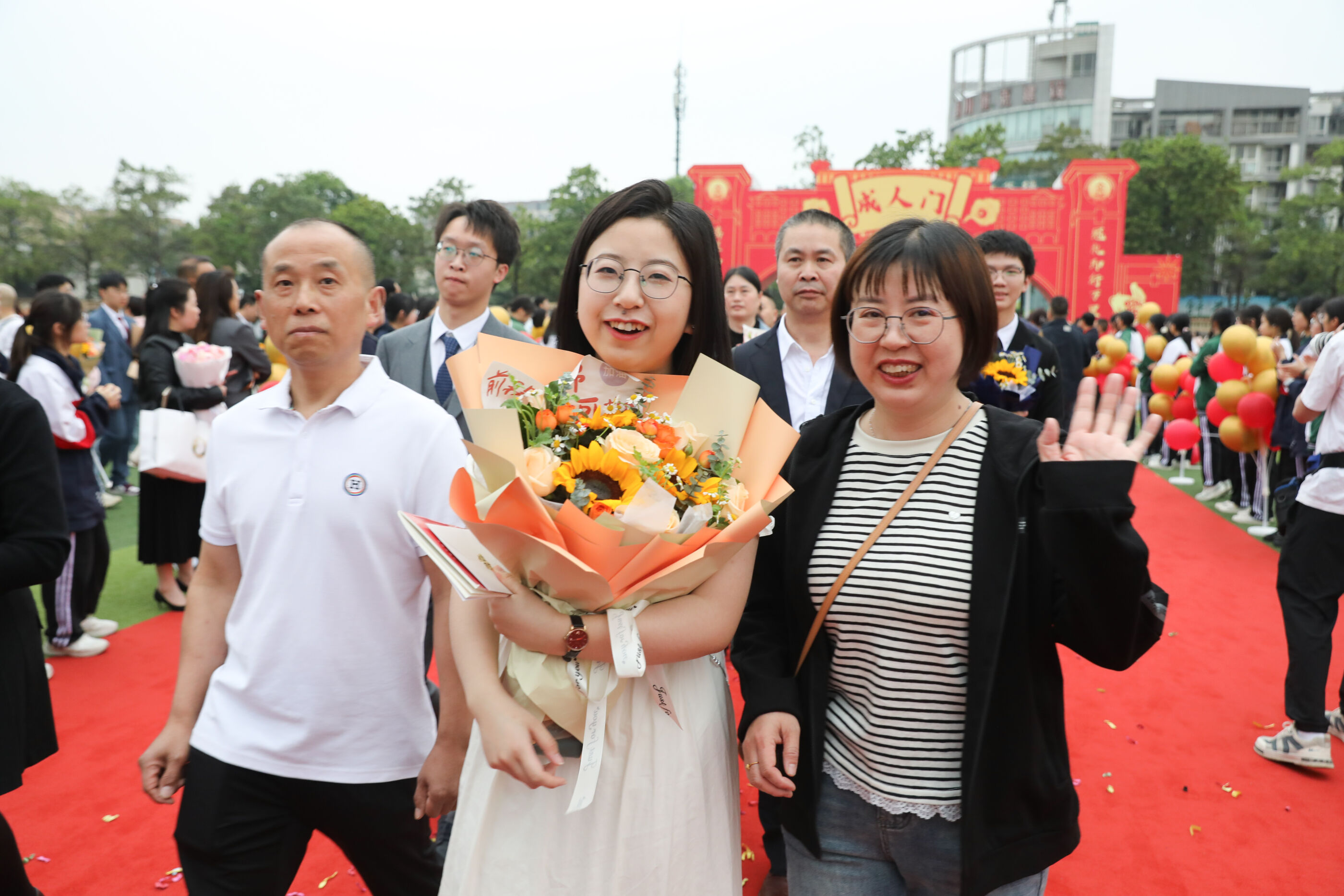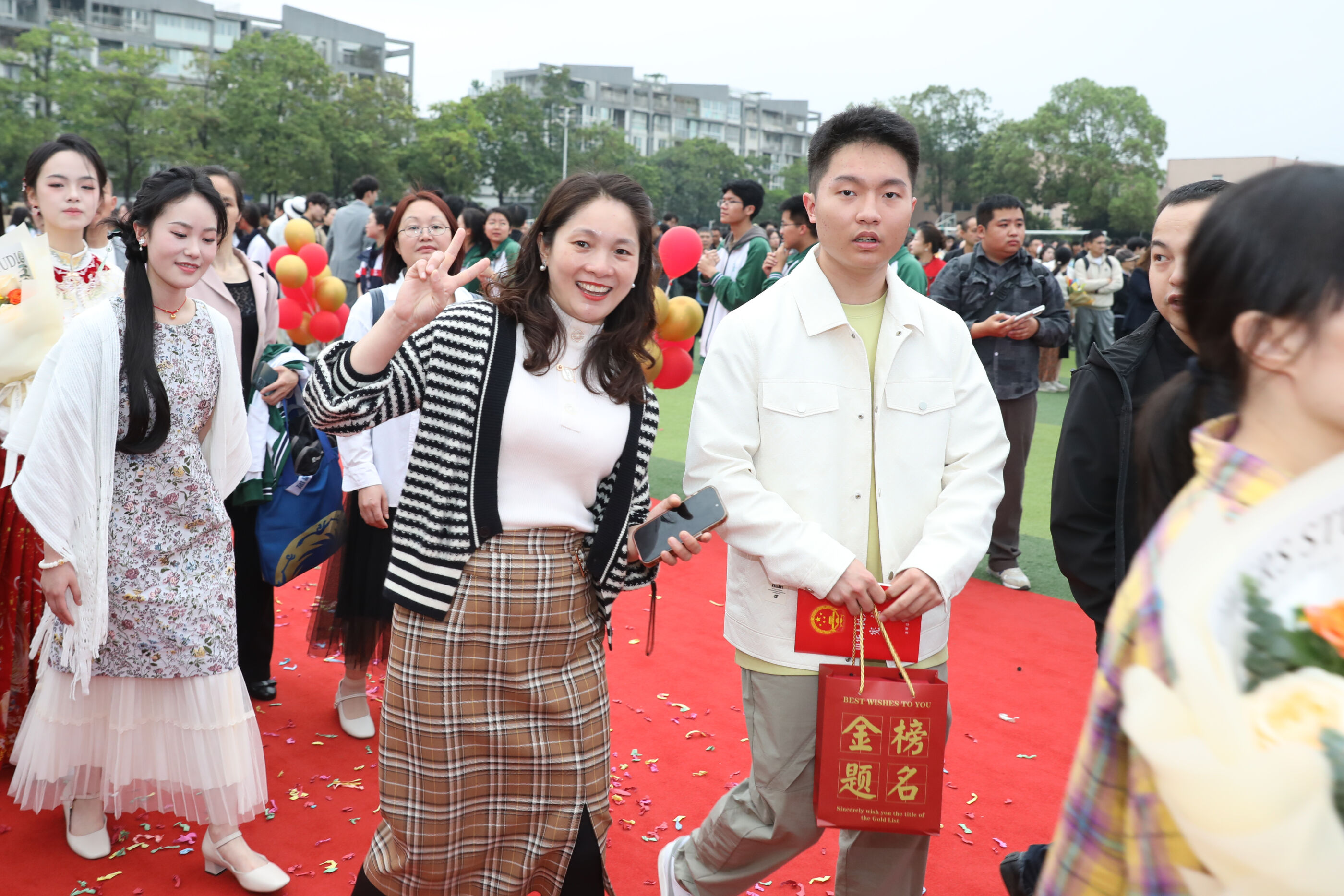 黨委書記黃超、副校長(zhǎng)杜江濤、副校長(zhǎng)張巧菊等行政領(lǐng)導(dǎo)和老師歡迎高三學(xué)生通過成人門