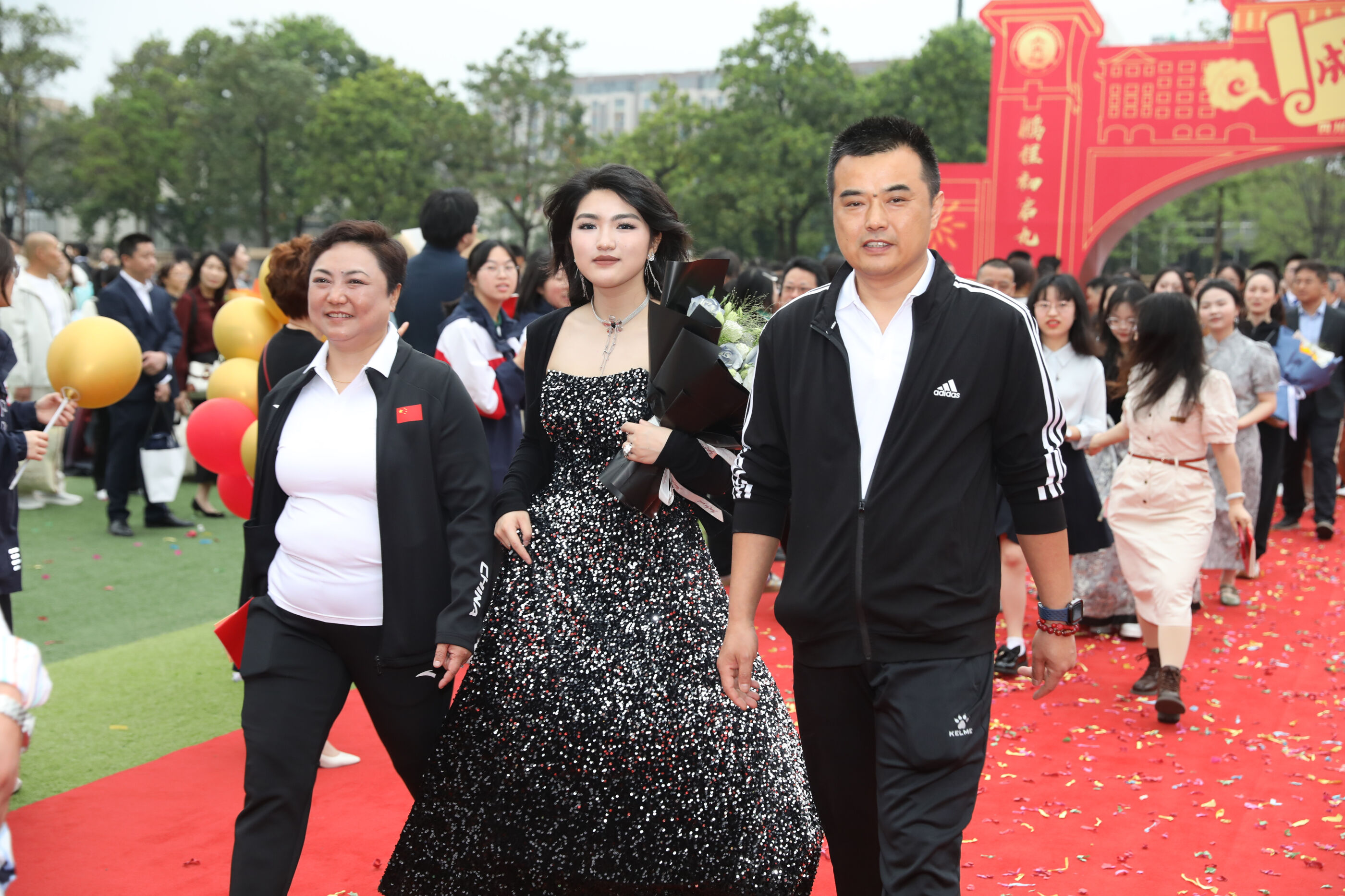 高三24班的學(xué)生在家長(zhǎng)陪同下通過成人門