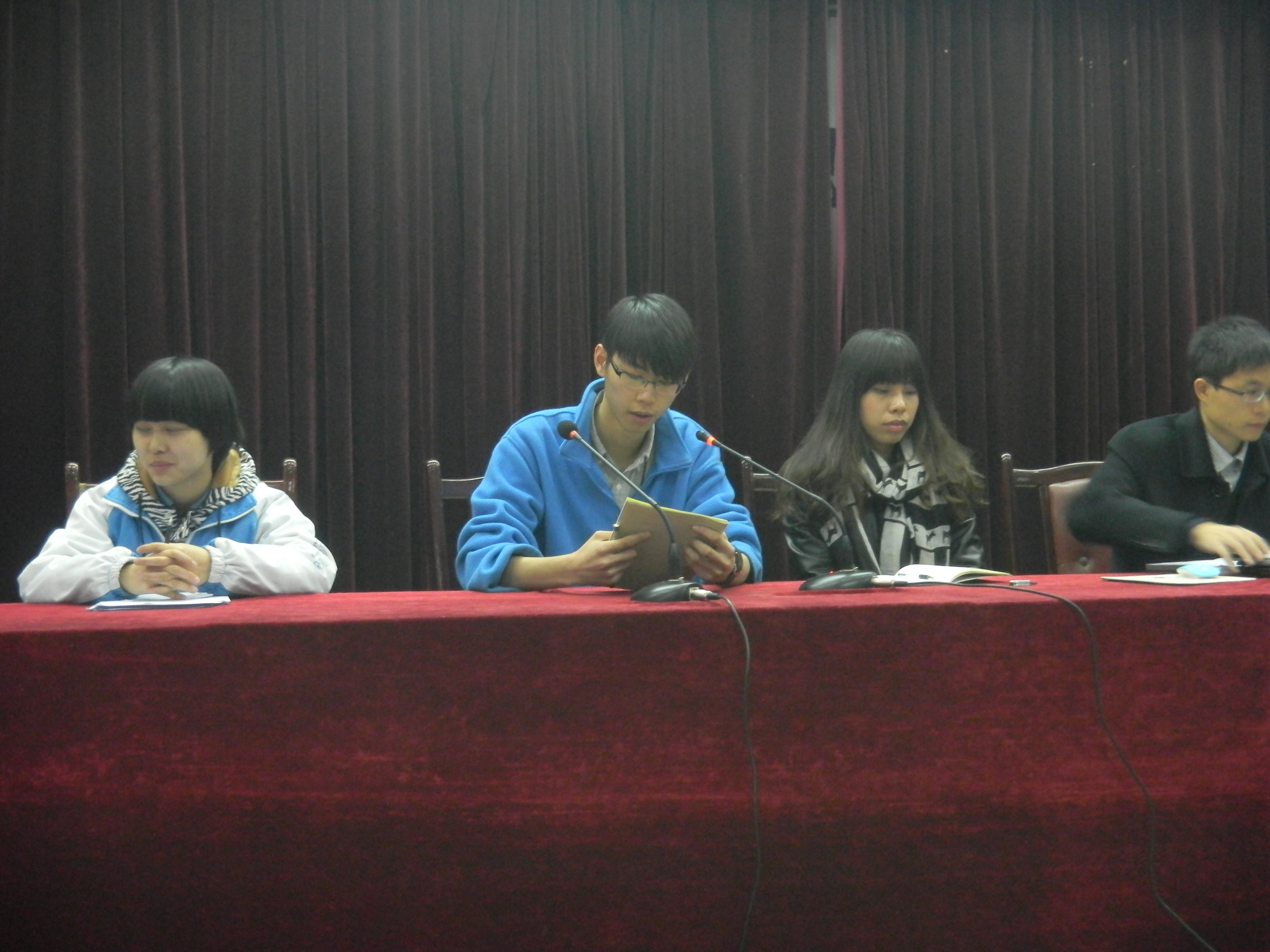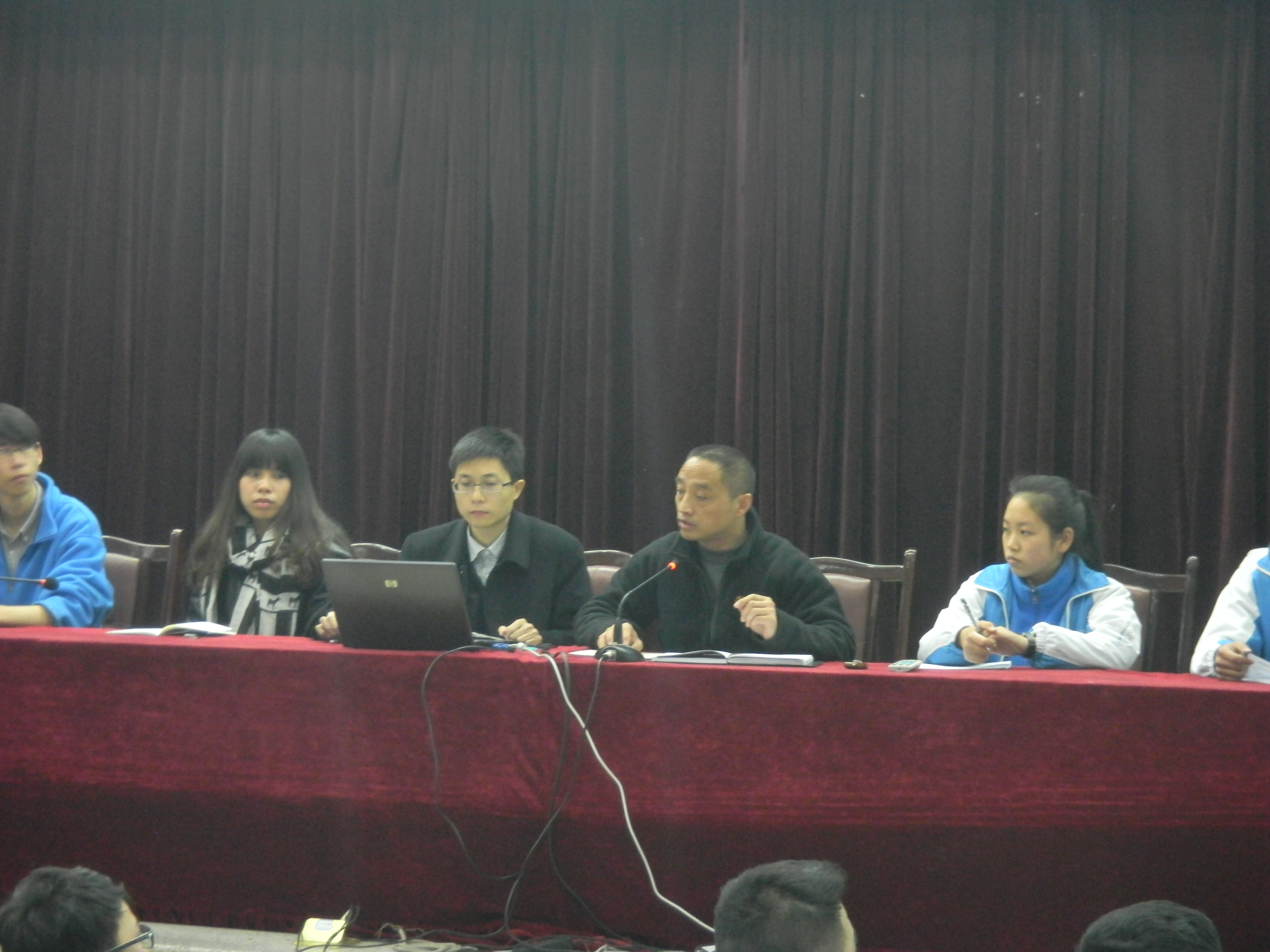首先,魏老師對本學期的工作進行部署。他指出本學期的工作應(yīng)該以“責任”和“行動”為綱領(lǐng),要求各部門細化管理、落實責任,用嚴謹務(wù)實的態(tài)度,把每一件小事落到實處。同時魏老師向大家介紹了本學期的重點工作、常規(guī)工作和具體工作。他指出本學期的重點工作有:各部門的換屆選舉、評優(yōu)選線、團員檔案整理等,而本學期的亮點工作是亟待大家集思廣益的雙流縣共青團交流聯(lián)誼會。