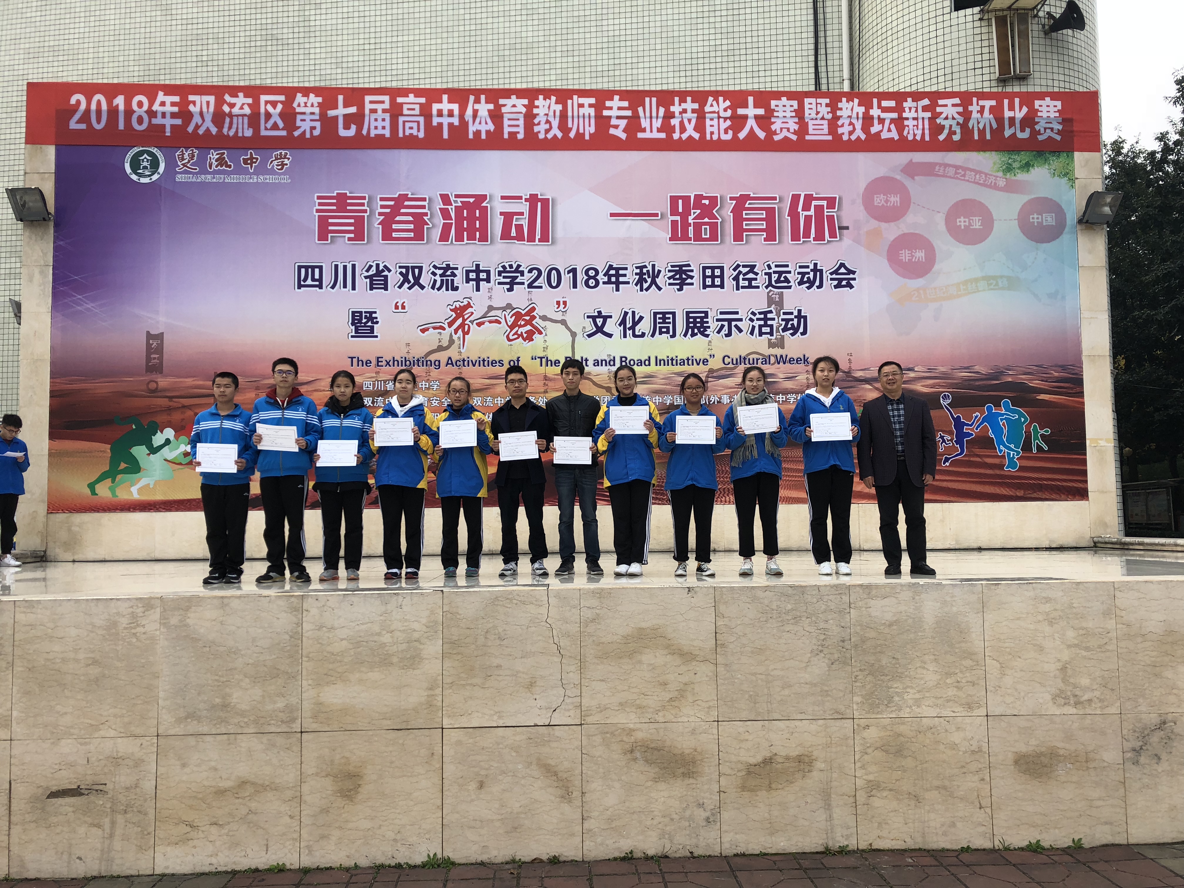徐天福副校長(zhǎng)為獲得四川省雙流中學(xué)“一帶一路”文化周系列活動(dòng)之高一高一英語(yǔ)書(shū)法比賽中榮獲特等獎(jiǎng)的同學(xué)頒發(fā)了證書(shū),他們是: