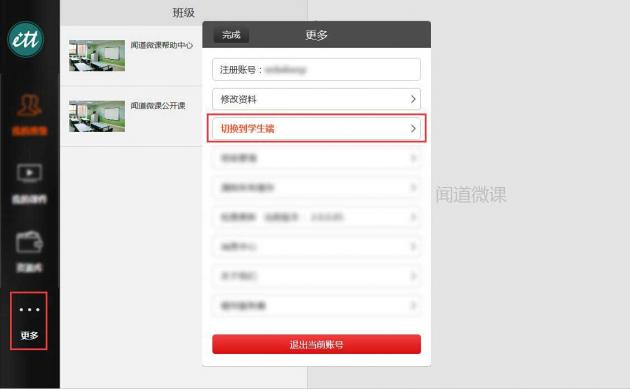 如果您已選擇教師入口,可以在主界面點(diǎn)擊“更多”,選擇“切換到學(xué)生端”。