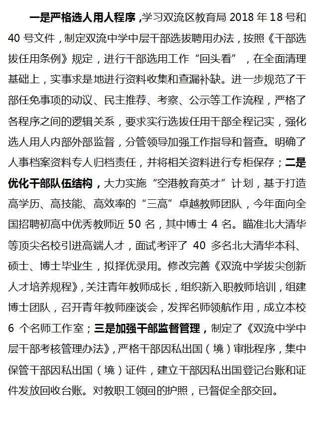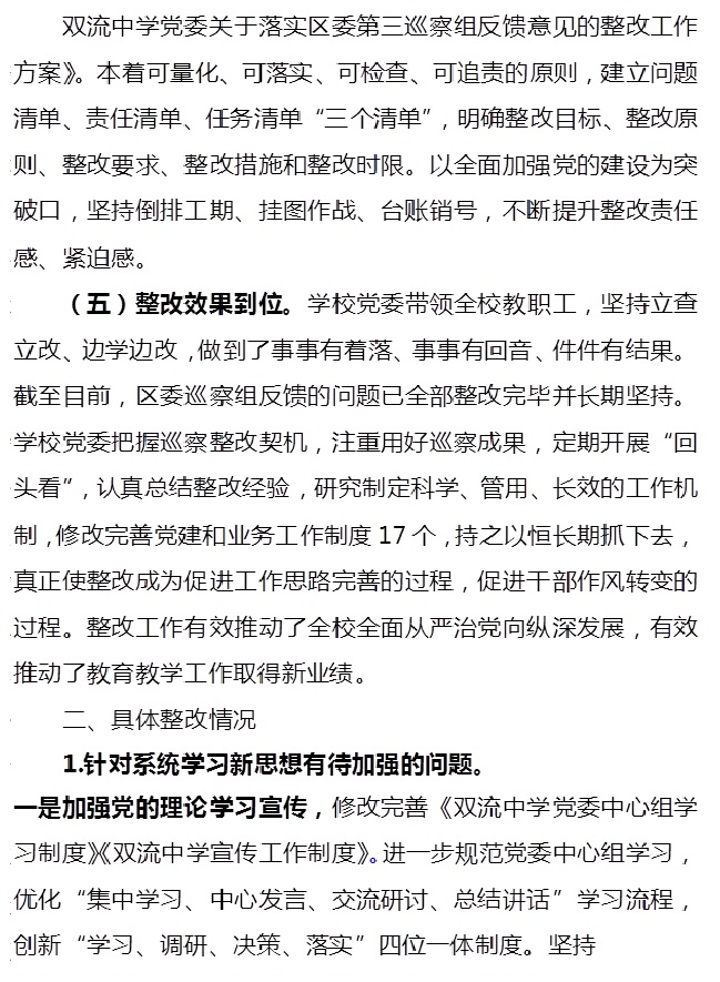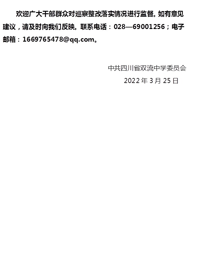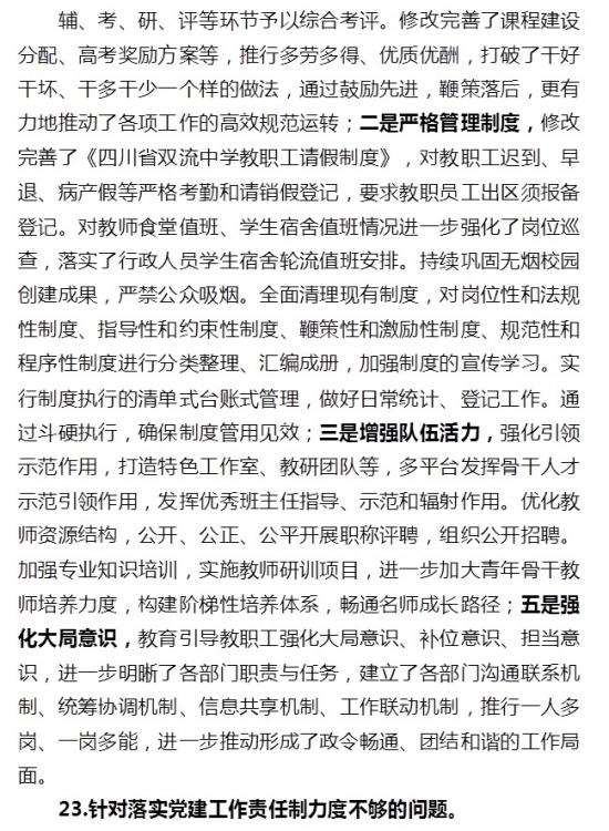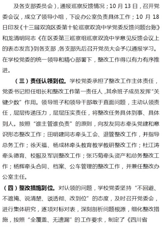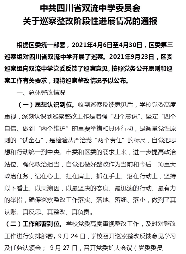 中共四川省雙流中學(xué)委員會(huì)關(guān)于巡察整改階段性進(jìn)展情況的通報(bào)