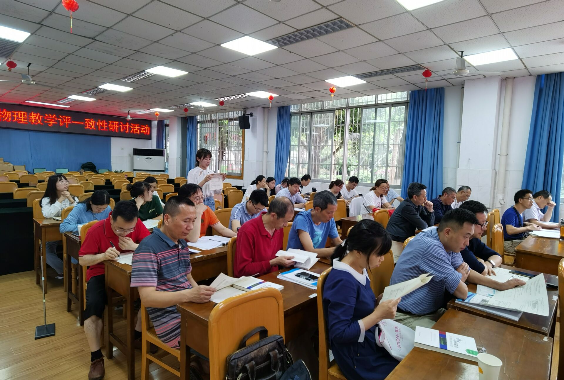 本次活動由雙流區(qū)教育科學研究院物理研培員滕剛老師主持,雙流區(qū)各高中學校全體物理老師參加。會議聚焦“教學評一致性”這一主題,由課堂展示、同行研討和專家講座三部分組成。