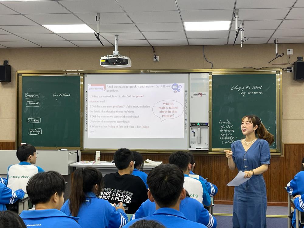 張琪敏老師以此無(wú)國(guó)界志愿者經(jīng)歷為藍(lán)本,以語(yǔ)篇邏輯思維導(dǎo)圖為依托,引導(dǎo)學(xué)生由問(wèn)題-解決模式的語(yǔ)篇結(jié)構(gòu)對(duì)細(xì)節(jié)信息進(jìn)行歸納總結(jié)。通過(guò)本課所學(xué),學(xué)生一方面了解事件內(nèi)容,理清篇章結(jié)構(gòu),另一方面探討文章深層的主題意義,領(lǐng)會(huì)平等、友愛、奉獻(xiàn)等人道主義精神。