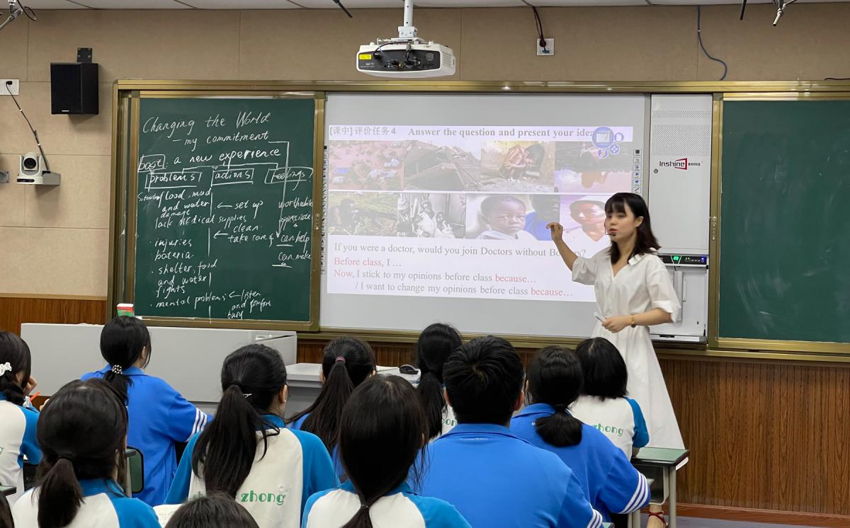 羅芳梅老師基于文本、深入文本、超越文本的思路設(shè)計(jì)了本堂課的教學(xué)目標(biāo):1)完善課前繪制的信息結(jié)構(gòu)圖,從而了解欠發(fā)展地區(qū)人們的遭遇及無(wú)國(guó)界醫(yī)生們的貢獻(xiàn);2)對(duì)比并闡釋自己讀文章前后的觀點(diǎn):若自己是醫(yī)生,是否愿意加入無(wú)國(guó)界醫(yī)生組織?從而初步形成幫助世界弱勢(shì)群體的意識(shí)并樹立自己有能力幫助他人的信心;3)通過(guò)制作“An Action Plan”, 踐行幫助他人,勇?lián)鐣?huì)責(zé)任?;谟⒄Z(yǔ)學(xué)習(xí)活動(dòng)觀,羅老師設(shè)計(jì)了貼近真實(shí)情景、有層次、有實(shí)效的活動(dòng),這一學(xué)習(xí)過(guò)程體現(xiàn)了以學(xué)生為中心、“教-學(xué)-評(píng)”一致性的理念。