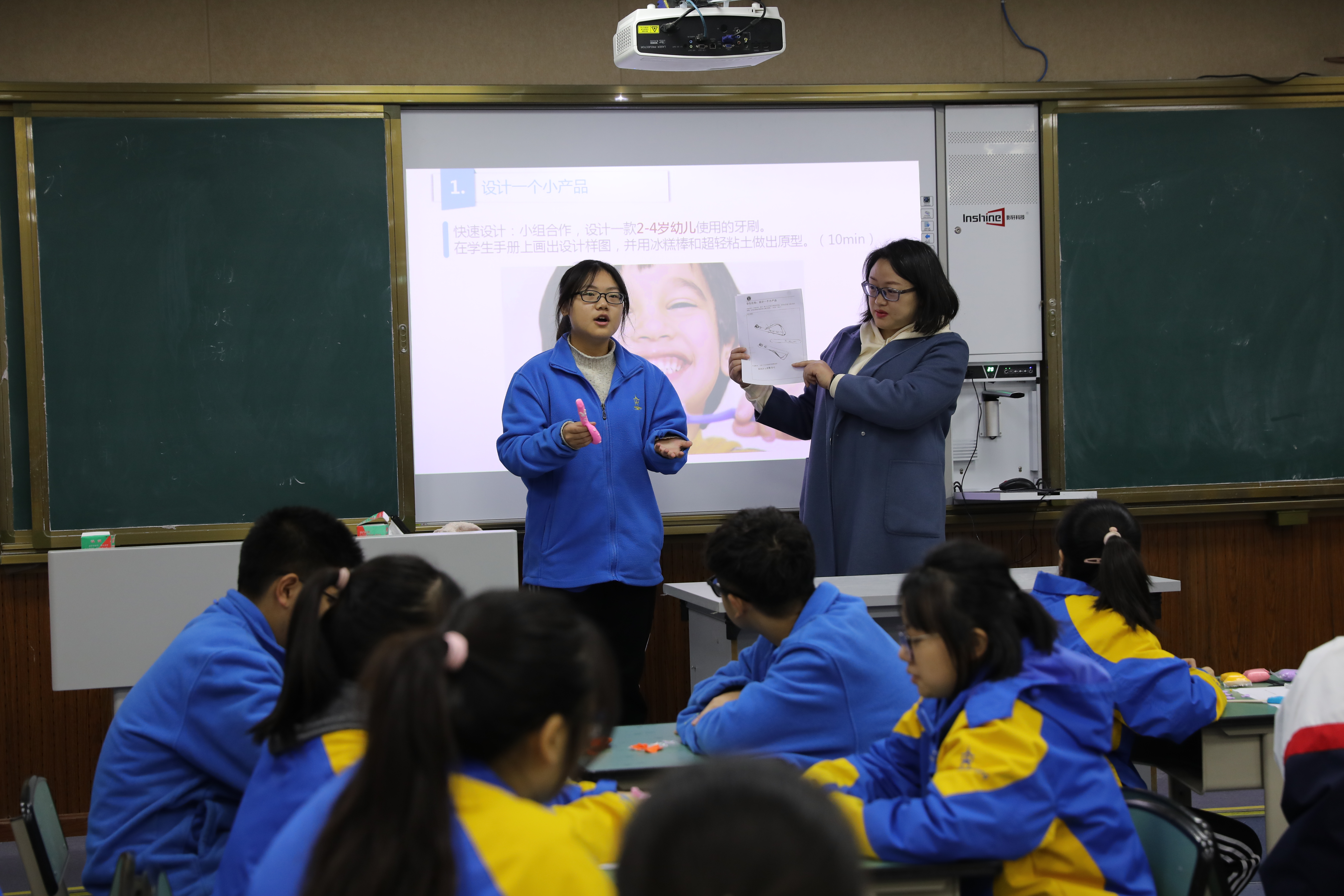 陳覓老師帶來的展示課為《設(shè)計(jì)思維初體驗(yàn)》。陳覓老師結(jié)合通用技術(shù)課程標(biāo)準(zhǔn)開發(fā)了校本課程《小創(chuàng)客,大設(shè)計(jì)》,本課程是其中的一個(gè)課例。陳老師通過一段視頻帶同學(xué)們一起體驗(yàn)了IDEO公司設(shè)計(jì)購物車產(chǎn)品的全過程,同學(xué)們通過視頻也總結(jié)了產(chǎn)品設(shè)計(jì)的過程,并領(lǐng)悟了公司每次都能做出好產(chǎn)品的訣竅——?jiǎng)?chuàng)新設(shè)計(jì)流程。接下來陳老師組織同學(xué)們小組合作,按照創(chuàng)新設(shè)計(jì)流程來為2——4歲幼兒設(shè)計(jì)一款牙刷。同學(xué)們在設(shè)計(jì)與展示交流過程中,對設(shè)計(jì)思維有了更加深刻的理解與感悟。在課堂的尾聲,同學(xué)們在動(dòng)手實(shí)踐中以及老師的引導(dǎo)下總結(jié)出設(shè)計(jì)思維的概念——以用戶需求為核心的創(chuàng)新設(shè)計(jì)流程。