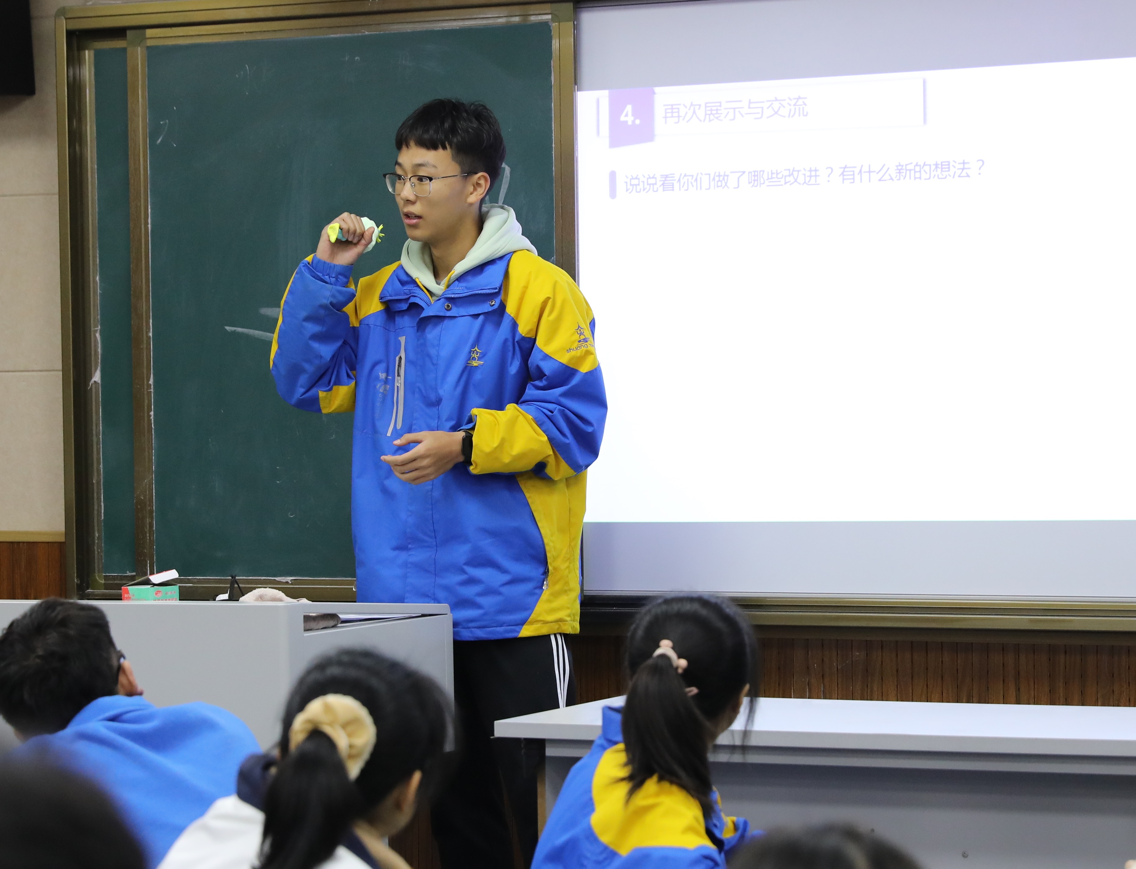 沈雪芹老師以《初識設(shè)計(jì)》為題目開展課程。沈老師和同學(xué)們都觀察到身邊很多人坐姿不端正的問題,長期如此可能導(dǎo)致身體問題,需要及時(shí)干預(yù)和糾正。在沈老師的組織下,同學(xué)們以小組為單位討論并給出一個(gè)坐姿不良解決方案并書寫在黑板進(jìn)行展示。同學(xué)們思維活躍,提出了多個(gè)令人眼前一亮的設(shè)計(jì):有的小組注意到學(xué)生正處于生長發(fā)育期,產(chǎn)品的高度需要能隨著身高調(diào)節(jié);有的小組非常注重頭部位置,設(shè)計(jì)出能固定頭部的裝置;有的小組思考全面,設(shè)計(jì)出坐姿矯正整套學(xué)習(xí)工具,包括正確握筆才能出墨的矯正筆、端正坐姿才能點(diǎn)亮的臺燈以及保持合適距離才能使用的振動(dòng)桌墊。通過本節(jié)課的體驗(yàn),學(xué)生們能更加客觀的看待產(chǎn)品的設(shè)計(jì)。