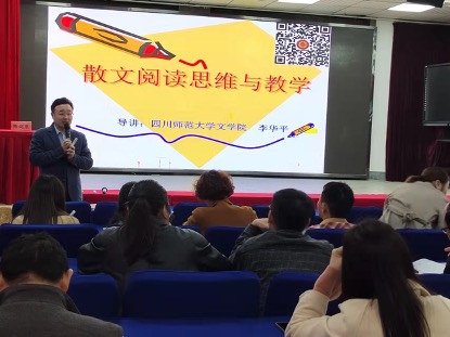 李華平教授開展講座最后一個環(huán)節(jié)是李華平教授作講座,李華平是四川師范大學文學院碩士生導師、基礎(chǔ)教育課程改革科研創(chuàng)新團隊負責人、正道語文創(chuàng)始人、中國高教學會語文專委會教師教育研究中心秘書長、全國科學研究會常務(wù)理事、教育部國培計劃專家部成員兼任教育部國培方案評審專家、國家級教學成果教學評審專家。