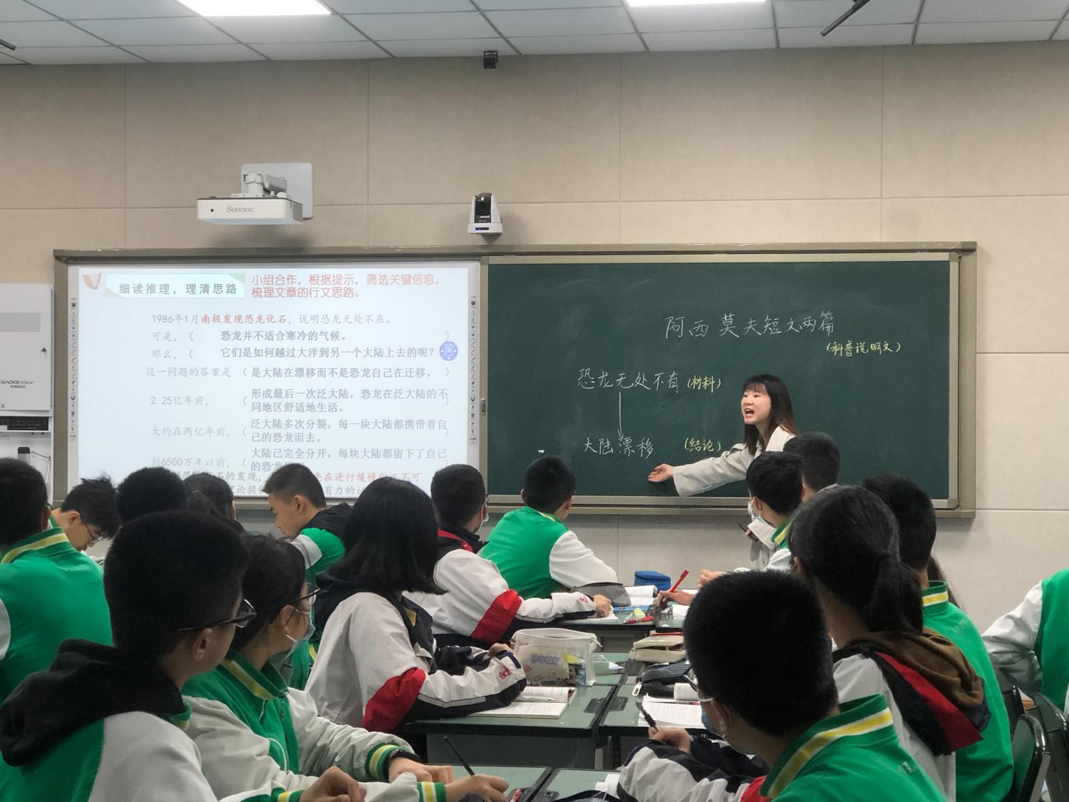羅淑丹老師執(zhí)教《阿西莫夫短文兩篇》。羅老師以第一篇《恐龍無(wú)處不有》為范本,讓學(xué)生從標(biāo)題出發(fā)猜測(cè)說(shuō)明對(duì)象,巧妙引導(dǎo)學(xué)生有區(qū)別地抓取事物說(shuō)明文與事理說(shuō)明文的說(shuō)明對(duì)象,把握本課介紹的事理。隨后羅老師引導(dǎo)學(xué)生篩選關(guān)鍵信息,梳理文段內(nèi)在的邏輯關(guān)系,理清邏輯推理思路,培養(yǎng)學(xué)生的邏輯思維。最后,羅老師引導(dǎo)學(xué)生循法而動(dòng),自學(xué)第二篇短文,把握《被壓扁的沙子》的說(shuō)明對(duì)象和推理邏輯。