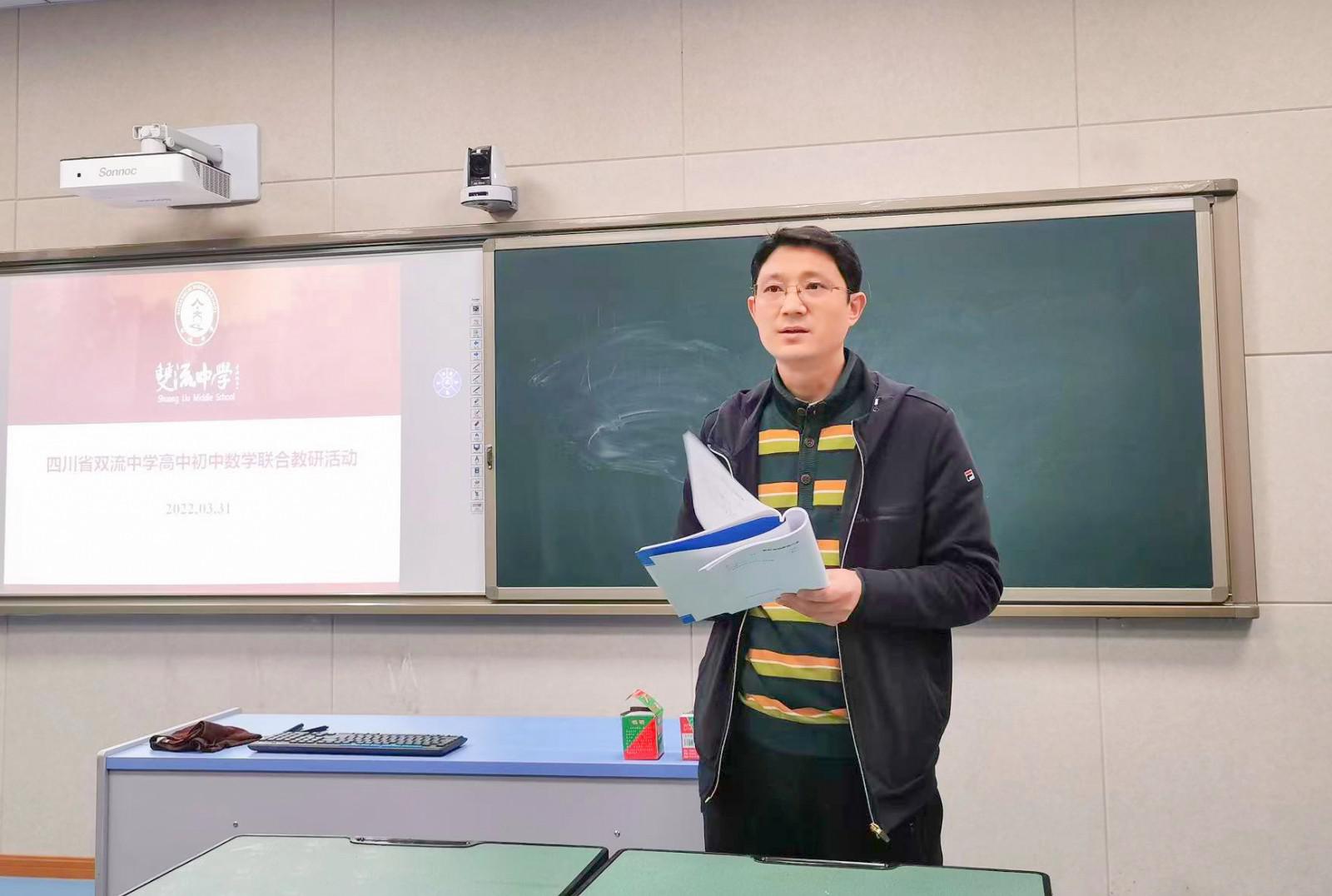 為促進初高中數(shù)學(xué)教學(xué)的深度融合,加強初高中課堂的銜接,提升雙流中學(xué)的辦學(xué)質(zhì)量,促進學(xué)生的可持續(xù)發(fā)展,雙流中學(xué)初中數(shù)學(xué)組與高中數(shù)學(xué)組于2022年3月31日下午在景賢樓306開展了初高中數(shù)學(xué)聯(lián)合教研活動。本次活動就初高中數(shù)學(xué)教學(xué)標(biāo)高、教學(xué)方法、學(xué)生特點等各個層面展開探討,致力于打造雙流中學(xué)的數(shù)學(xué)高效課堂。