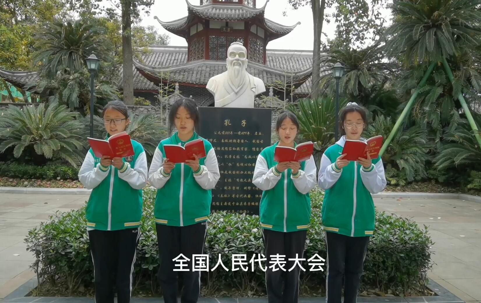 從課堂講憲法到課外踐行憲法精神,從個人學習到小組合作,從時政新聞展播——我看“兩會”到小組接力誦讀憲法等。
