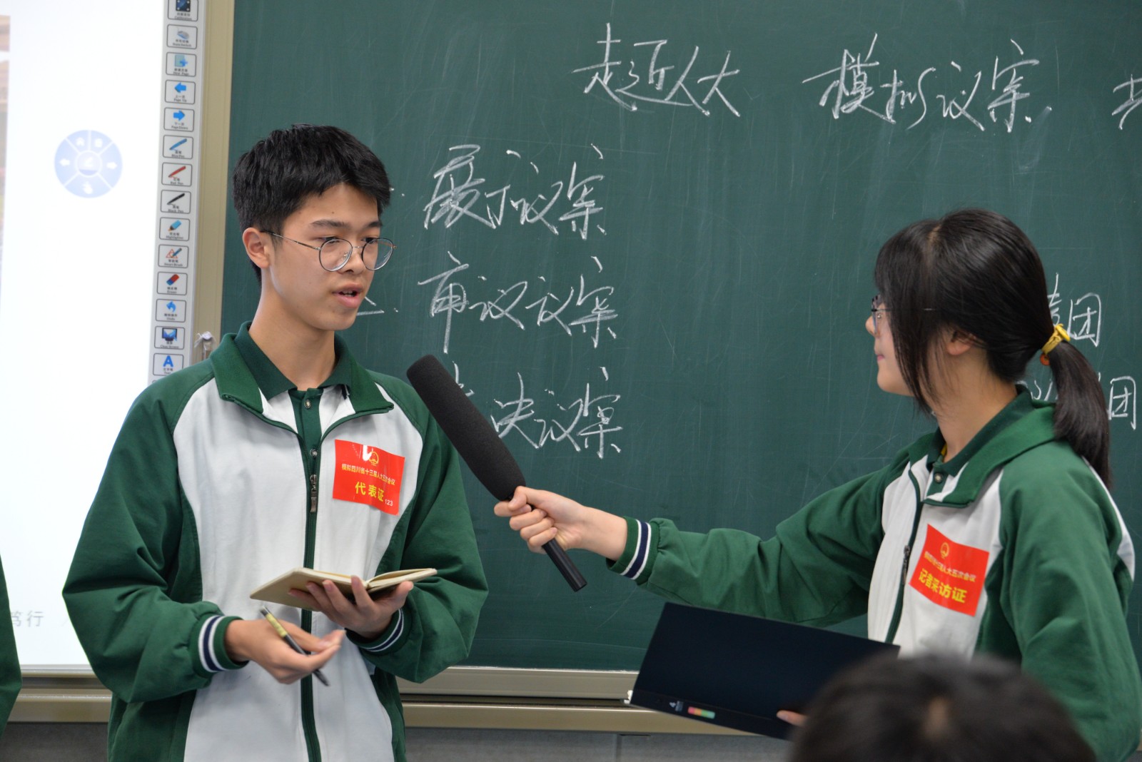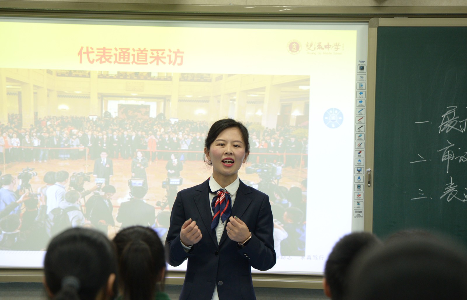 初中部鄧倩老師帶來(lái)展示課《走近中國(guó)載人航天團(tuán)隊(duì) 共建美好集體》。整堂課師生以中國(guó)載人航天團(tuán)隊(duì)的故事為主線索,帶領(lǐng)學(xué)生了解載人航天團(tuán)隊(duì)背后的故事,感知偉大的事業(yè)的背后離不開(kāi)一支偉大的團(tuán)隊(duì),由此憧憬美好集體的建設(shè)。課堂以中國(guó)載人航天團(tuán)隊(duì)為榜樣,對(duì)比考察自身所在集體的優(yōu)勢(shì)和不足,通過(guò)尋找解決問(wèn)題的方案來(lái)增強(qiáng)小組和班級(jí)的凝聚力和合作能力,在行動(dòng)中構(gòu)建優(yōu)秀班集體。高中部宋穎老師帶來(lái)活動(dòng)展示課《走近人大 模擬議案 共商國(guó)是》。圍繞“弘揚(yáng)航天精神、建設(shè)航天強(qiáng)國(guó)”為主題,引導(dǎo)學(xué)生撰寫(xiě)人大代表議案,開(kāi)展模擬人大活動(dòng)。通過(guò)學(xué)生代表團(tuán)成員展示議案、全體代表討論審議議案、表決代表團(tuán)議案等環(huán)節(jié),讓學(xué)生體驗(yàn)人民如何行使國(guó)家權(quán)力、真切感受人民代表大會(huì)制度對(duì)公民生活和國(guó)家治理的價(jià)值、感悟依法有序參與政治生活和提高政治素養(yǎng)的必要性。