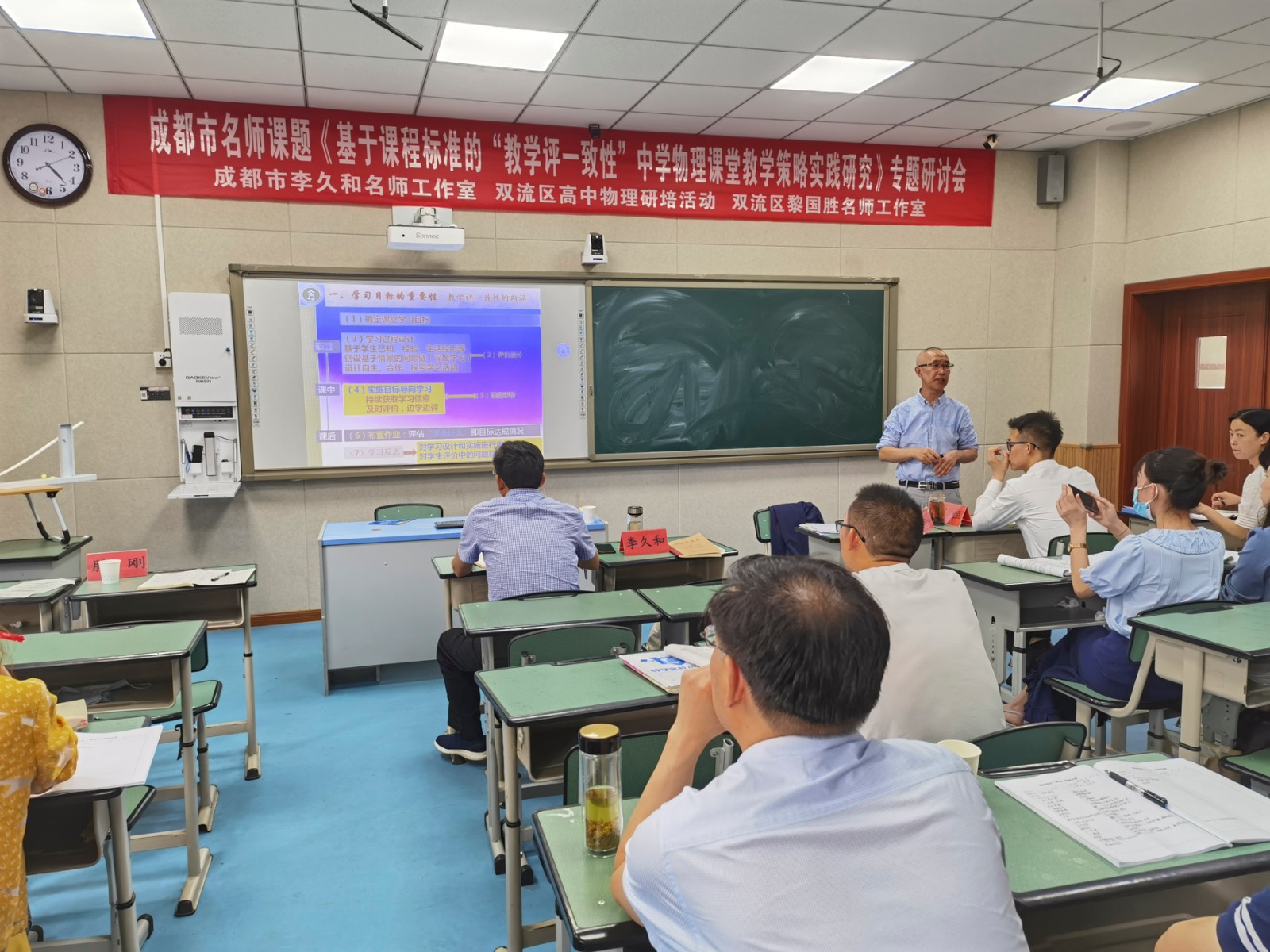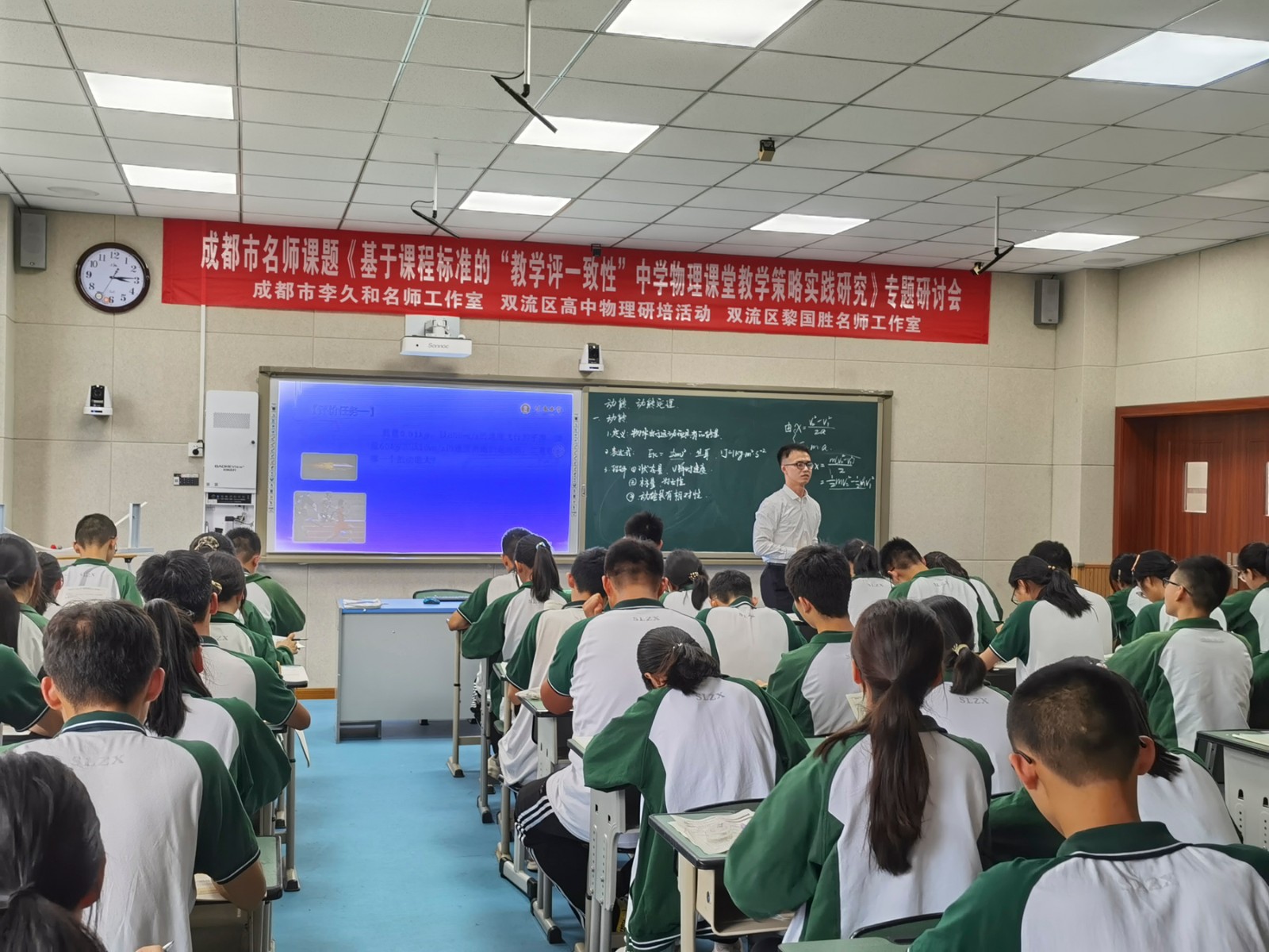 為促進雙流高中物理教學高質(zhì)量發(fā)展,為物理教師的專業(yè)成長提速賦能,成都市李久和名師工作室、雙流區(qū)教科院高中物理教研室、雙流區(qū)名教師黎國勝工作室聯(lián)合開展了研討活動?;顒佑?022年5日12下午在四川省雙流中學成功舉辦?;顒右猿啥际忻麕熣n題《基于課程標準的“教學評一致性”中學物理課堂教學策略實踐研究》為主題,來自李久和名師工作室、黎國勝名師工作室的學員以及雙流區(qū)高一高二的物理教師參加了活動。