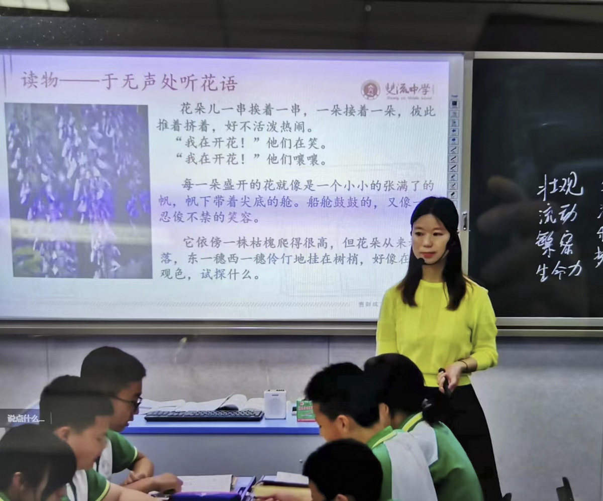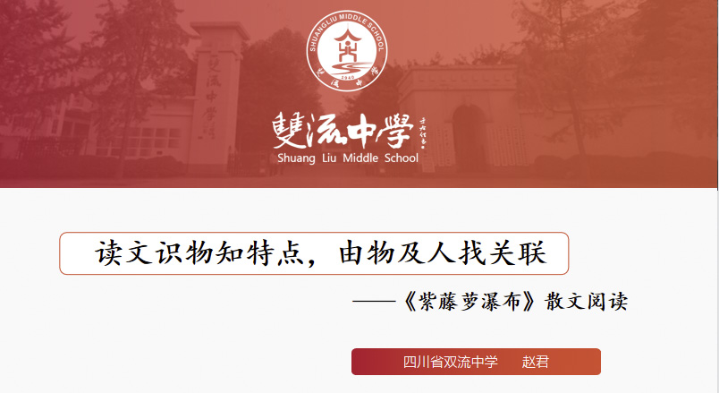 于此同時,初一語文備課組組長趙君老師在成都市線上菜單培訓(xùn)會上上了一堂名為《紫藤蘿瀑布》的托物言志散文的閱讀思維培育課。