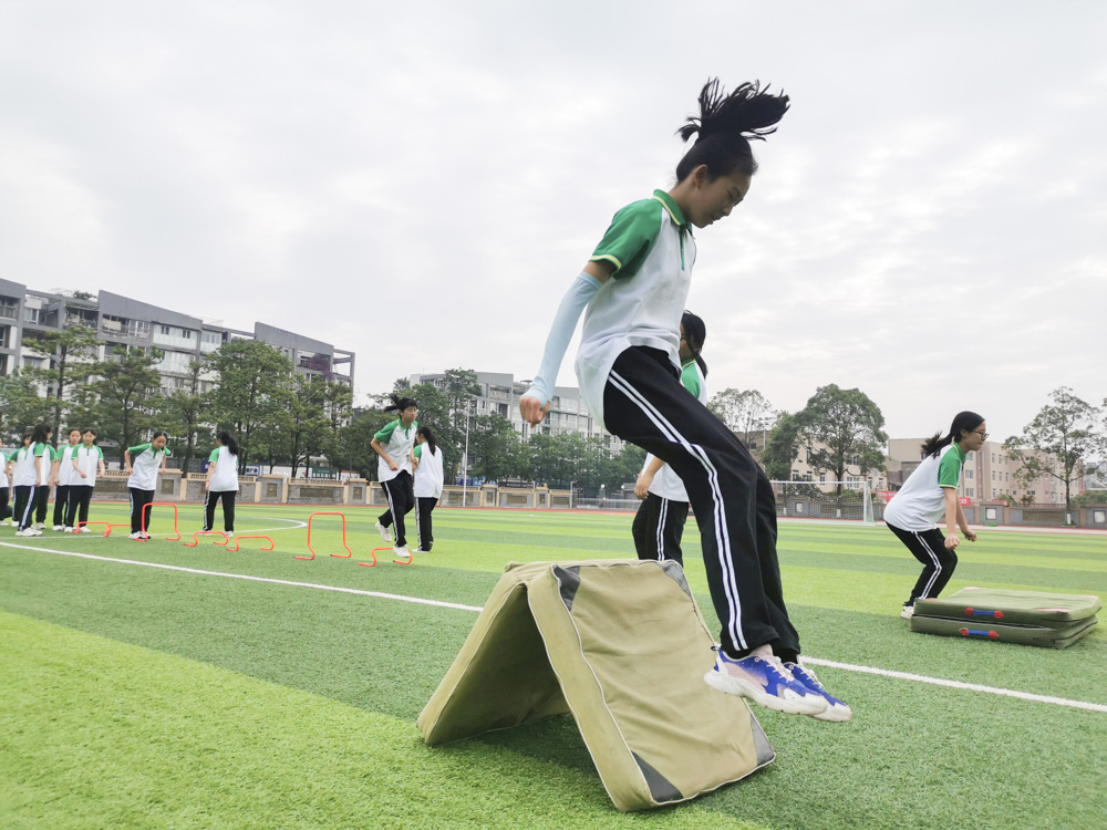 課堂上,盧丹老師綜合運(yùn)用練習(xí)、思考、探索、示范等教學(xué)方式方法,引導(dǎo)學(xué)生逐步完成訓(xùn)練過程,在發(fā)展學(xué)生跳躍能力的同時(shí),不斷培養(yǎng)學(xué)生分析問題、解決問題的能力。