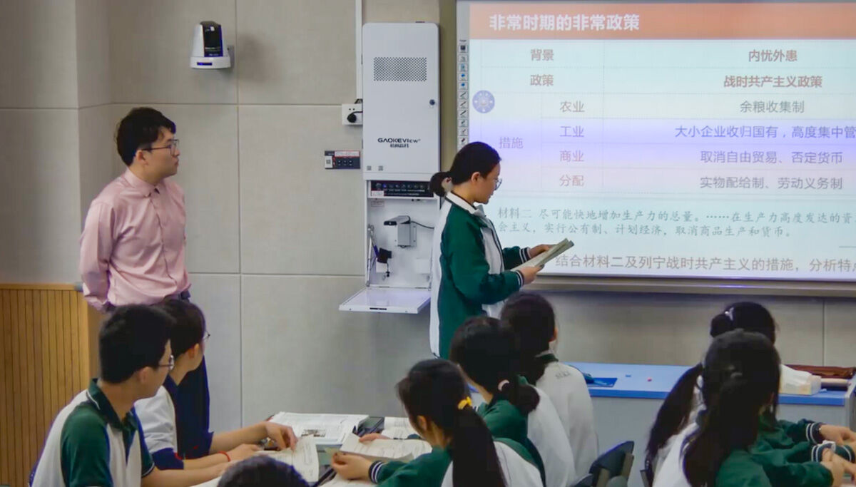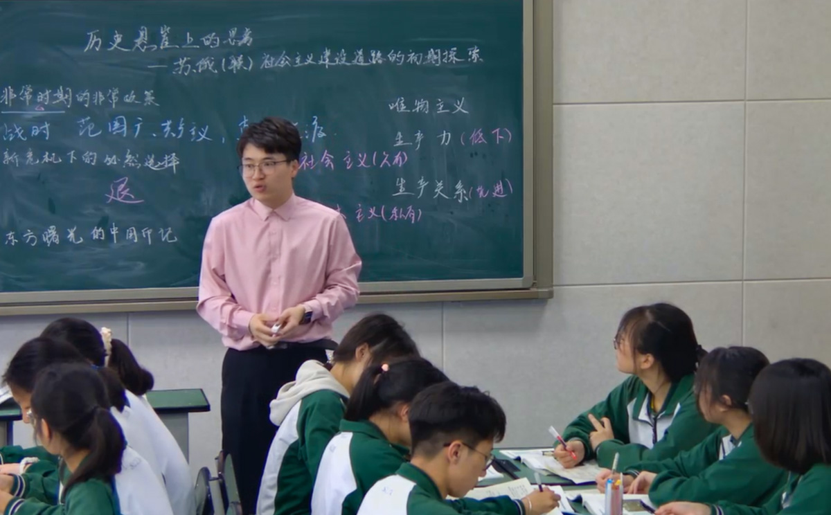 之后由林俊言老師帶來示范課《社會主義建設道路的初期探索》。林老師以社會主義運動500年大事年譜作為導入,落實本課內容在時空觀念中的定位,同時明確本科的學習目標。之后林老師引導學生通過小組合作探究的模式分析“戰(zhàn)時共產主義”和“新經濟政策”各自的特點和形成原因,并對其開展對比性探究,從辯證的角度分析這兩個經濟政策的影響。同時注重對學生的學法指導,落實了對學生核心素養(yǎng)的培育。同學們深刻感悟到社會主義建設一定要從國情出發(fā),與時俱進;要實事求是,遵循生產關系一定要適應生產力發(fā)展的客觀規(guī)律。