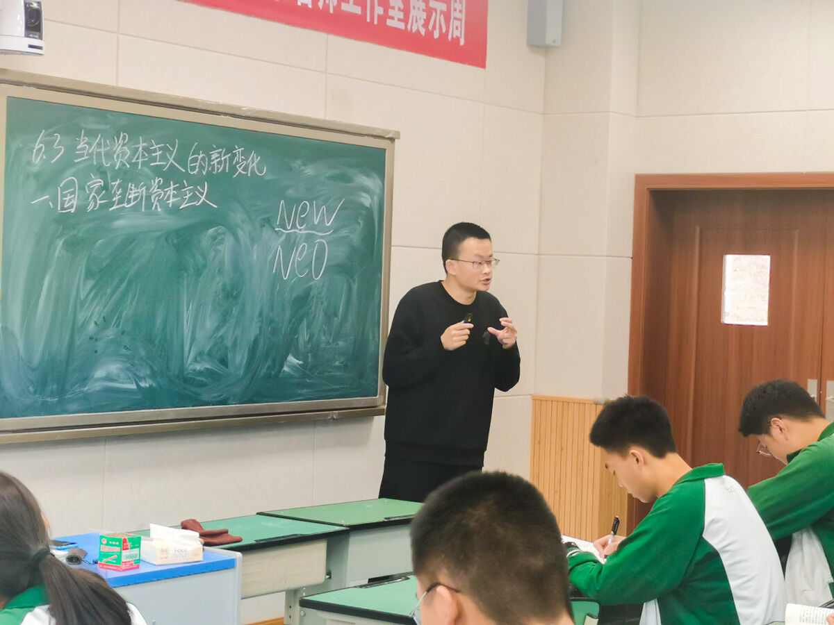 首先由雙流中學胡峻聞老師帶來示范課《當代資本主義的新變化》。胡老師根據高一年級學生的實際情況,通過對英語單詞“New”和“Neo”的區(qū)別探究,引導學生初步逐步分析“凱恩斯主義”和“新自由主義”的區(qū)別;之后帶領學生開展有針對性的材料分析,引導學生思考二戰(zhàn)后資本主義世界產生新變化的原因和各自的特點,以及其對后世的啟示,注重培養(yǎng)學生的材料解讀能力和歷史思維能力。