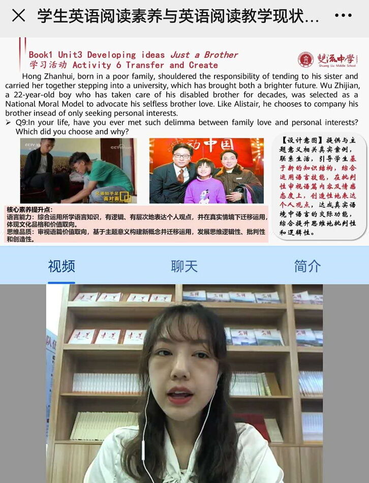 基于徐老師提出的應(yīng)對策略,雙流中學張琪敏老師和羅芳梅老師依次帶來了“基于主題意義融語言、思維、文化為一體的語篇閱讀教學”的課例分享。