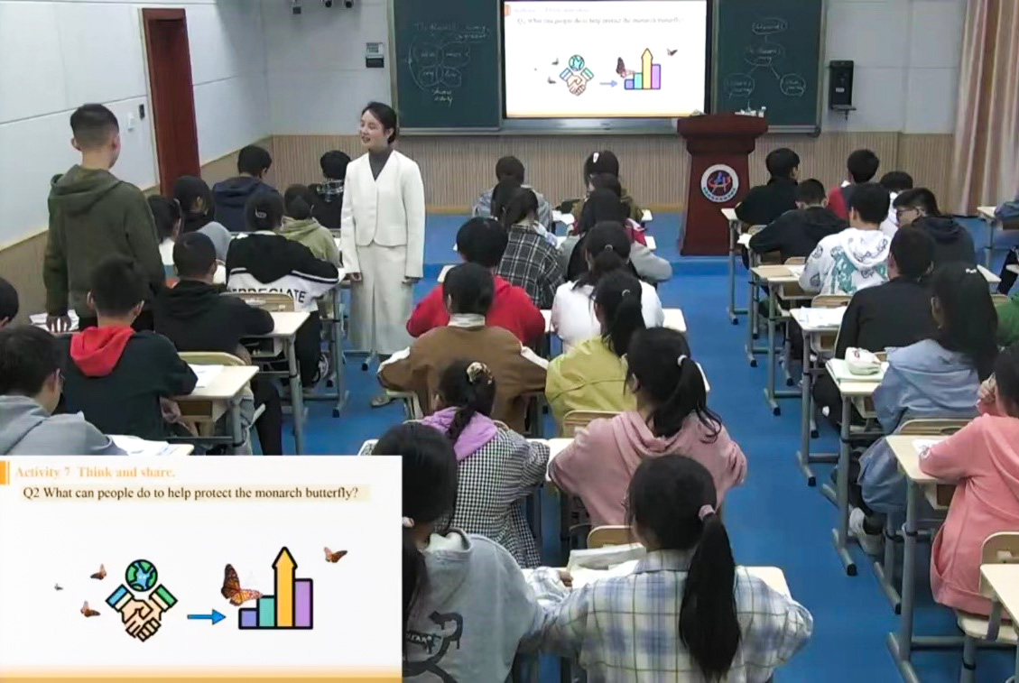 此次教研活動(dòng)第一項(xiàng)是雙中余虹玉老師獻(xiàn)課,課題是外研社版英語(yǔ)必修一Unit 5 Understanding Ideas – The Monarch’s Journey。該語(yǔ)篇類(lèi)型是科普類(lèi)說(shuō)明文,以科學(xué)家的觀察和研究作為依據(jù)對(duì)北美黑脈金斑蝶的遷徙背景、目的、方式進(jìn)行介紹,揭示人類(lèi)活動(dòng)對(duì)其生存產(chǎn)生的巨大影響,從而加深學(xué)生對(duì)黑脈金斑蝶的認(rèn)識(shí)的提升,幫助人類(lèi)采取有效的保護(hù)措施,實(shí)現(xiàn)人與動(dòng)物的和諧共存。